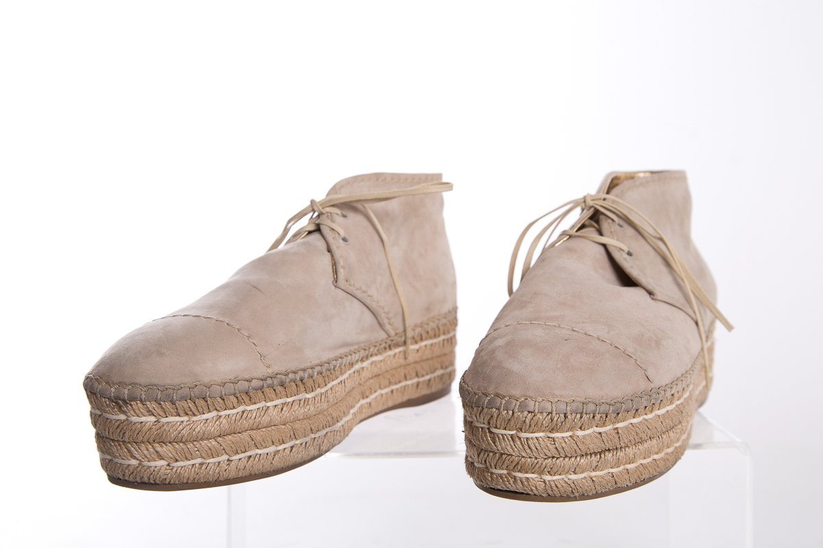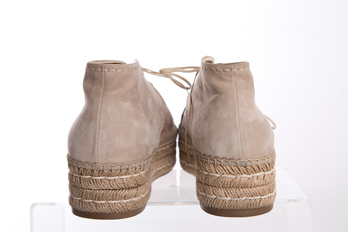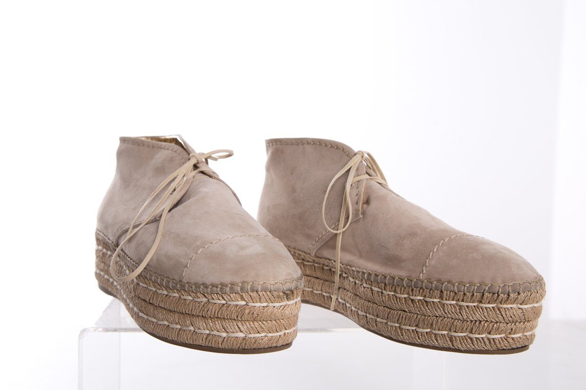 espadrille suede shoes. This item is in good condition with some signs of wear. Wear includes scuffing to soles and light stain to suede.