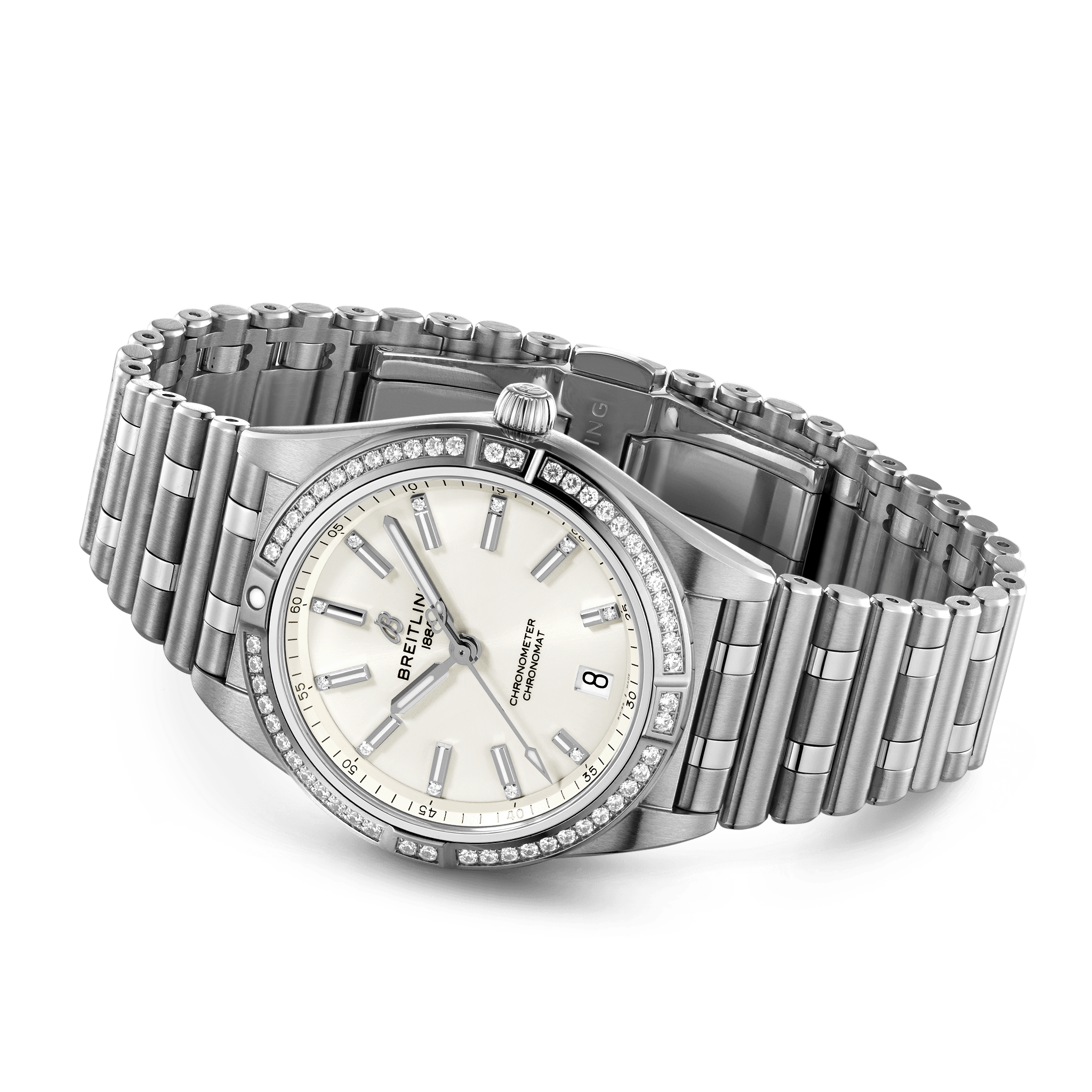 Stylish yet elegant, the modern-retro inspired Chronomat Automatic 36 is the versatile sporty and chic watch for any occasion. Women craving extra sparkle will also be able to opt for diamond-set bezels, indices, and colorful dials. Featuring Breitling’s iconic and comfortable “Rouleaux” bracelet with a butterfly clasp, the Chronomat Automatic 36 is powered by the Breitling Caliber 10, a COSC-certified chronometer.