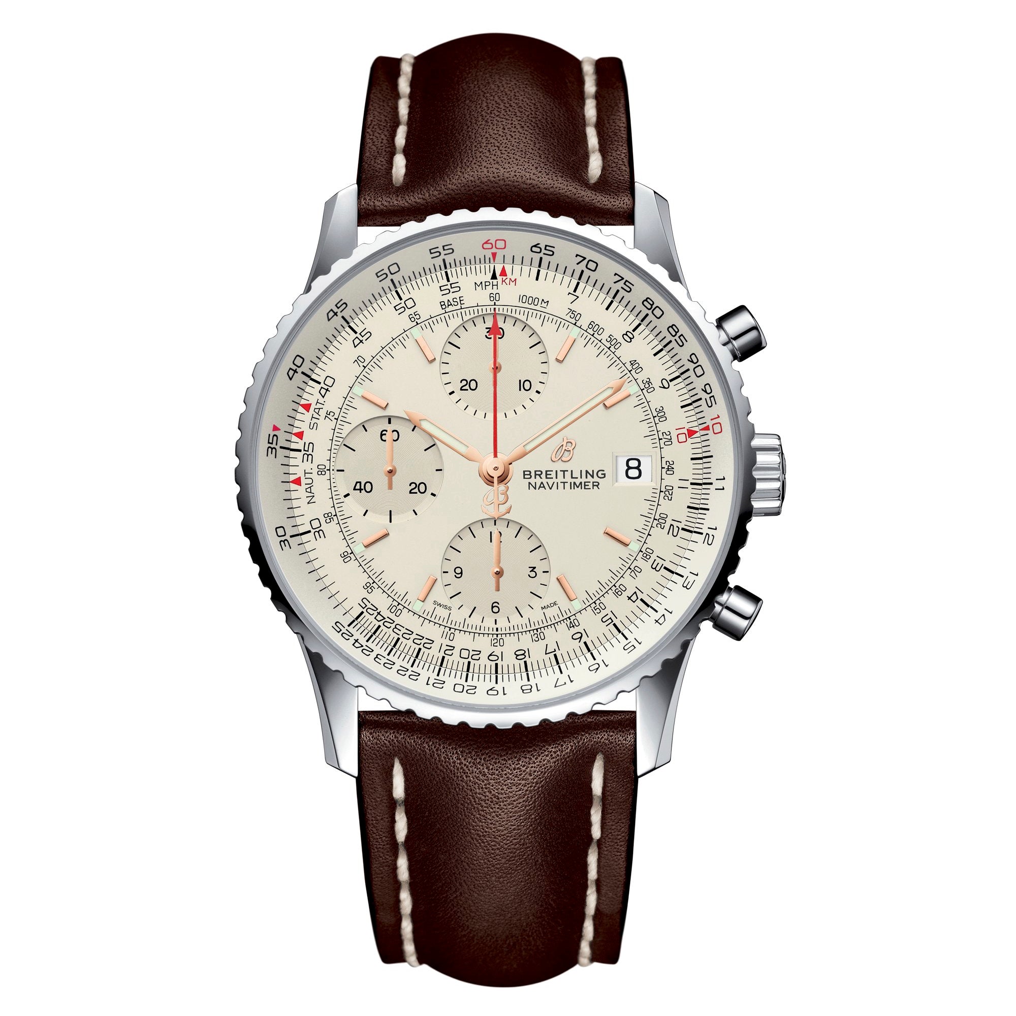 A tribute to the original Navitimer 1, this version is smaller in diameter featuring a black, blue or silver dial with tone-on-tone counters. The famous circular slide rule, powered by the bidirectional rotating bezel, can perform all airborne navigation operations. This legendary chronograph, also available in steel & gold, is equipped with a self-winding caliber and is chronometer-certified by the COSC, testament to its superior precision and reliability.