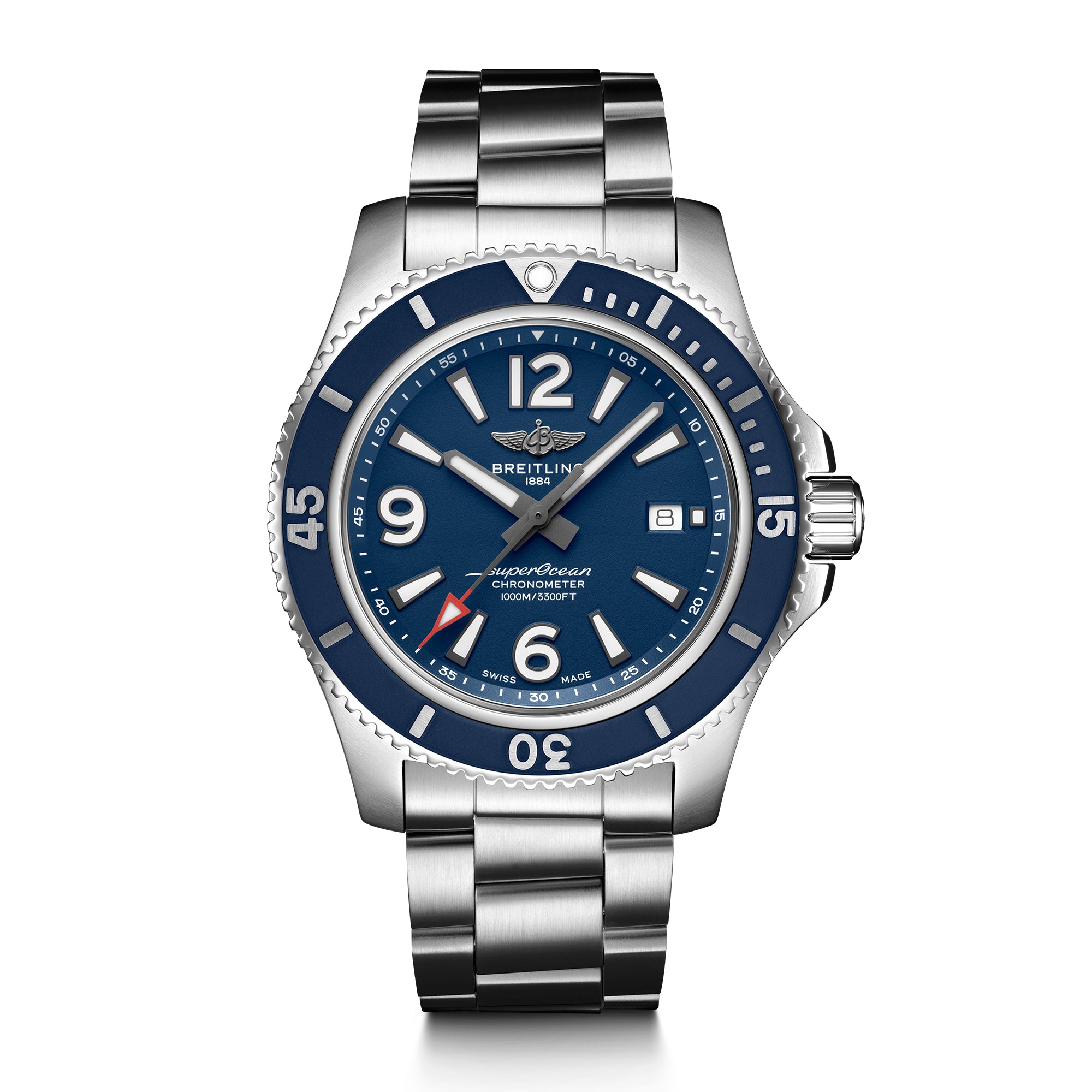 Sporty, fresh and colorful, the Superocean Automatic 44 is designed for men looking for a sports watch combining serious performance with contemporary style. It is up to any challenge: dive with it, surf with it or swim with it! The Superocean Automatic 44 features a sturdy 44mm stainless-steel case, colorful dials and a choice of a stainless-steel bracelet, or a color-matching rubber strap that fits either a stainless-steel pin buckle or folding clasp. Not only ready for the challenges of the deep seas (up to 100 bar / 1000 meters), the fresh and sporty Superocean Automatic 44 will also attract those whose adventures are a little closer to the shore.