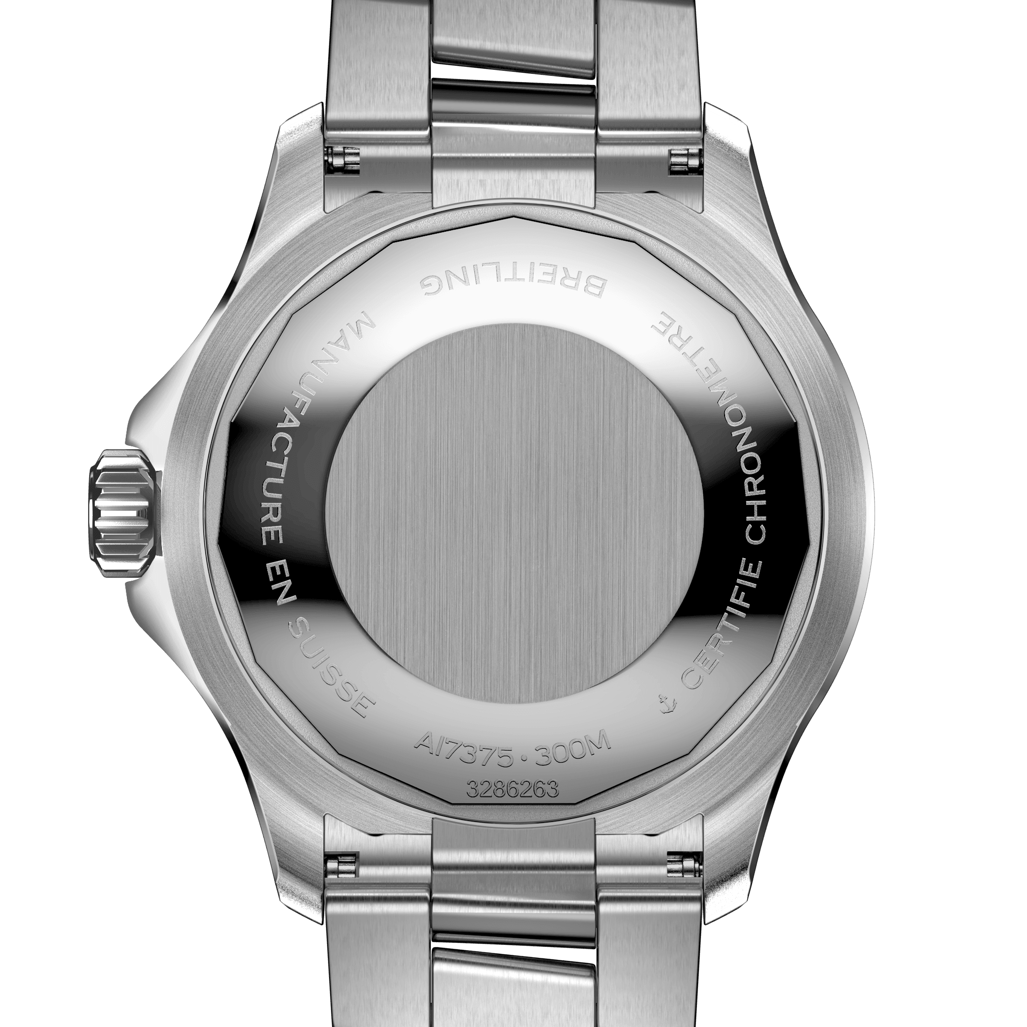 The new Superocean retraces the Slow Motion’s celebrated design codes, while adding modern features, like a ceramic-inlayed bezel and brightly colored dials. Broad hands and indexes in luminescent Super-LumiNova allow for easy readability underwater. The watch is water resistant to 300 m (1000 ft), as well as being shock-, sand- and saltwater-resistant. The bronze version uses a special alloy that has excellent resistance to corrosion, yet will still develop a subtle patina over time that makes the watch even more unique.