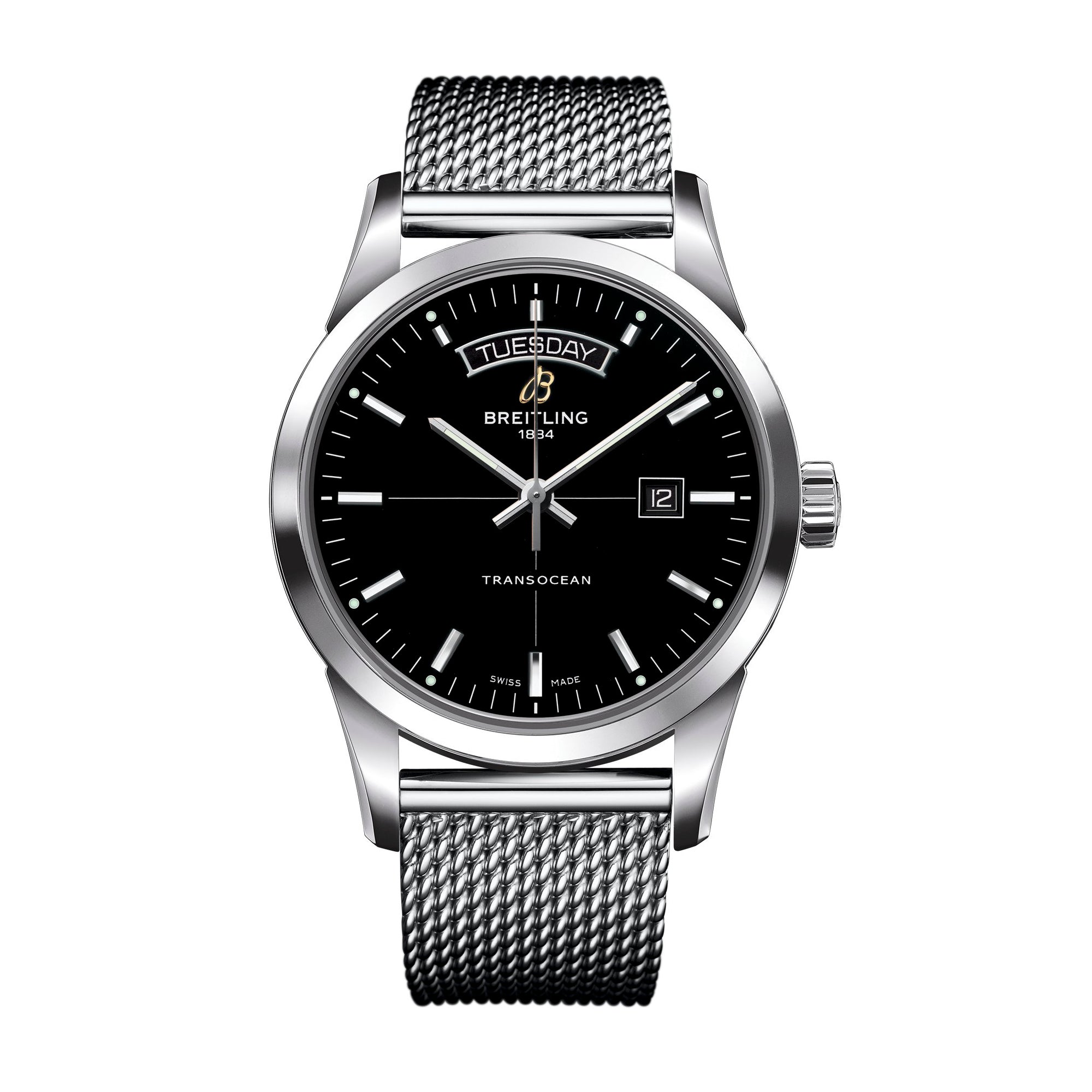 With its slim beveled bezel, slender lugs and pure case housing a chronometer-certified self-winding caliber, the Transocean Day & Date admirably reflects the spirit of both long-distance travel and urban sophistication aboard luxurious long-haul airliners. The dial (in black or silver) displays the date at 3 o’clock, and the day through an arc-shaped aperture at 12 o’clock. This model, epitomizing balance and understated elegance, is adorned with applied hour markers and a subtle cross-shaped dial arrangement reminiscent of the original Transocean – a grand classic launched in 1958.