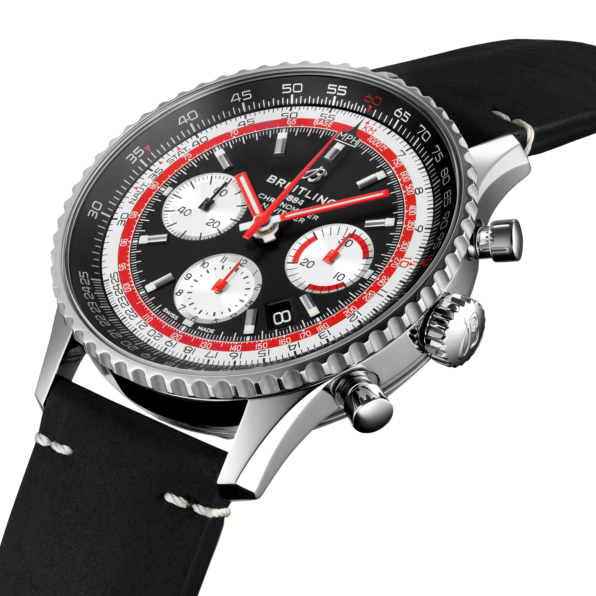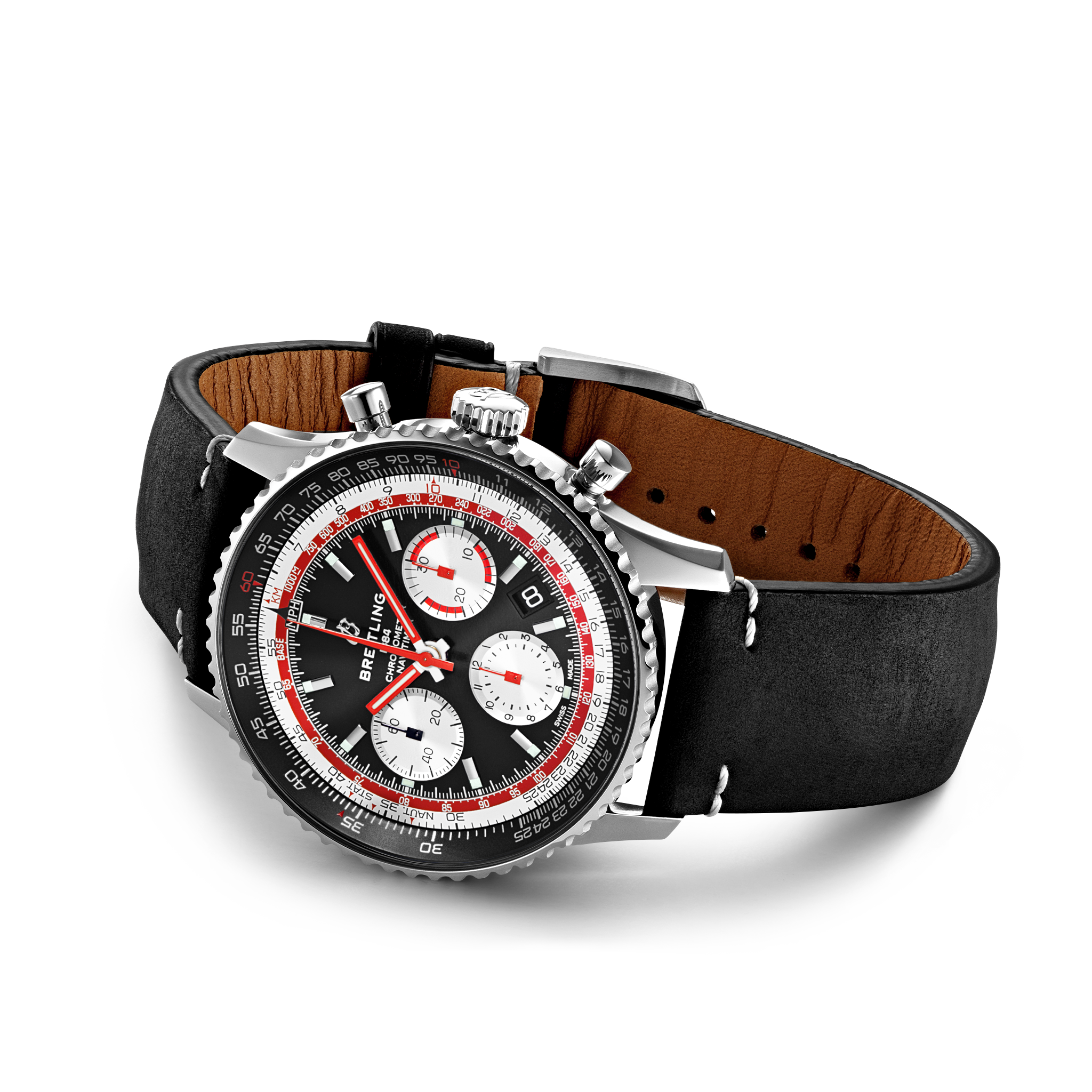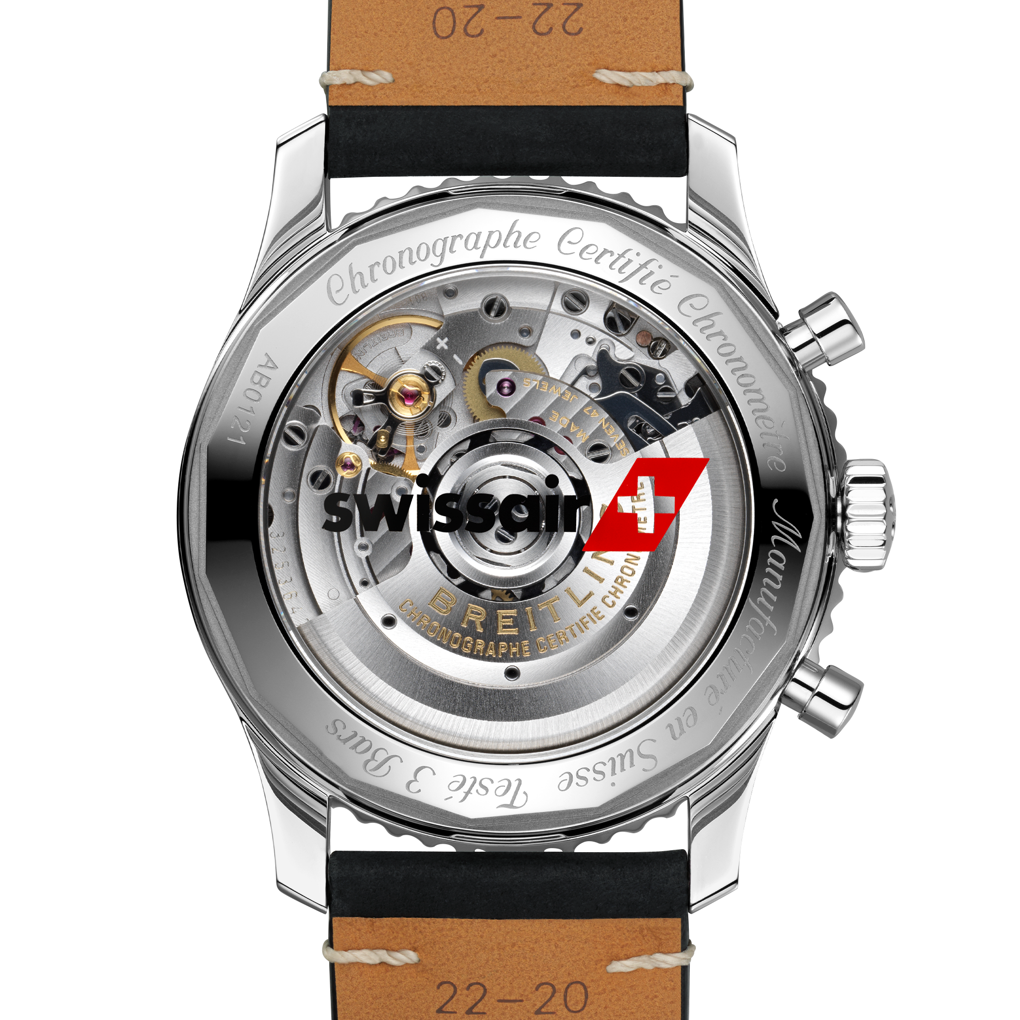 The Navitimer B01 Chronograph 43 Swissair Edition features a transparent sapphire caseback with a printed Swissair logo. The Airline capsule collection will be available from April 2019 at Breitling boutiques and official retailers. It has a 43-millimeter stainless-steel case and a striking black dial with silver subdials. It is presented on a vintage-inspired black leather strap with a folding clasp. Its in-house mechanical chronograph movement delivers both remarkable precision and a power reserve of approximately 70 hours. The chronograph proudly celebrates the former national airline of Breitling’s home country. This model is also available with a black leather bracelet with a pin buckle or a stainless-steel mesh bracelet.