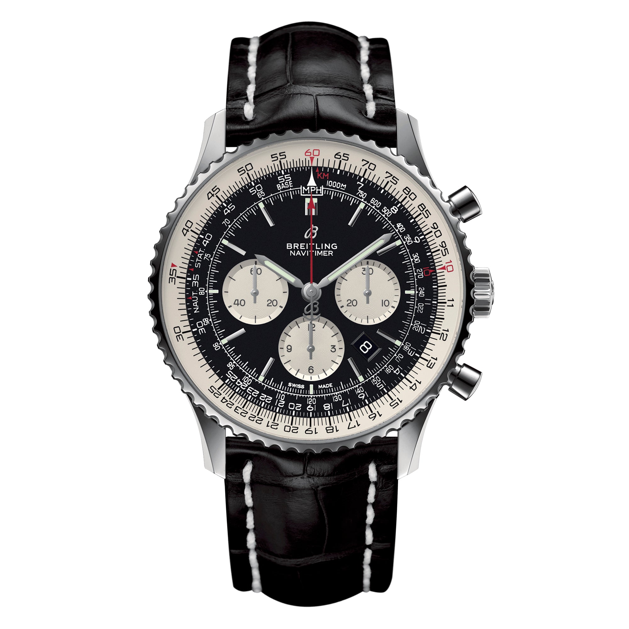 The classic Navitimer features a generous 46 mm diameter accentuating its presence on the wrist and enhancing the originality of its design, while optimizing the readability of the dial and the circular aviation slide rule. A transparent caseback reveals the chronometer-certified, high-performance self-winding chronograph caliber, Manufacture Breitling Caliber 01. In addition to the steel and steel & gold versions, this model is available in red gold. A larger-than-life take on the legend.