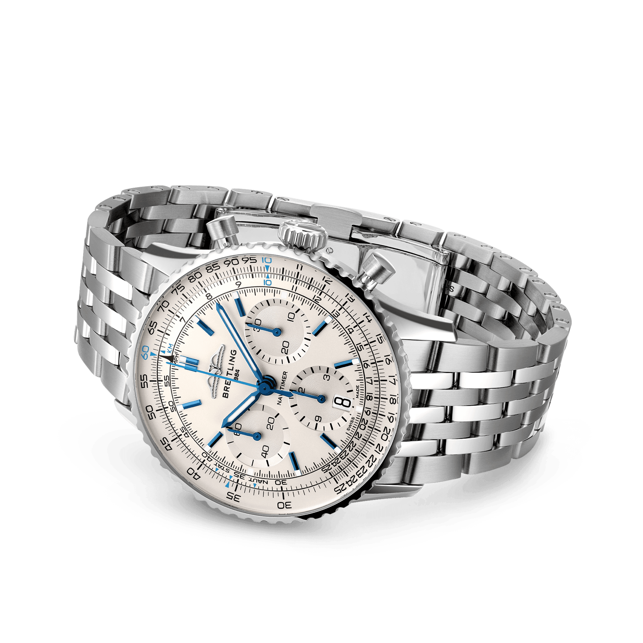 There have been many iterations of Breitling’s icon since its debut 70 years ago, but this new Navitimer captures its most classic features, while enhancing them with modern refinements. A flattened slide rule and a domed crystal create the illusion of a sleeker profile. Alternating polished and brushed metal elements give a lustrous, yet understated finish. Most notably, new colors in shades of blue, green and copper, define the updated dial options. And if there is one update sure to spark nostalgia, it’s the return of the AOPA wings to their original position at 12 o’clock. For 70 years, Breitling’s original pilot’s watch has been beloved by aviators and tastemakers in equal measure. Worn by astronauts in space and the biggest stars on earth, it is Breitling’s most iconic timepiece and one of the most recognizable watches of all time.
