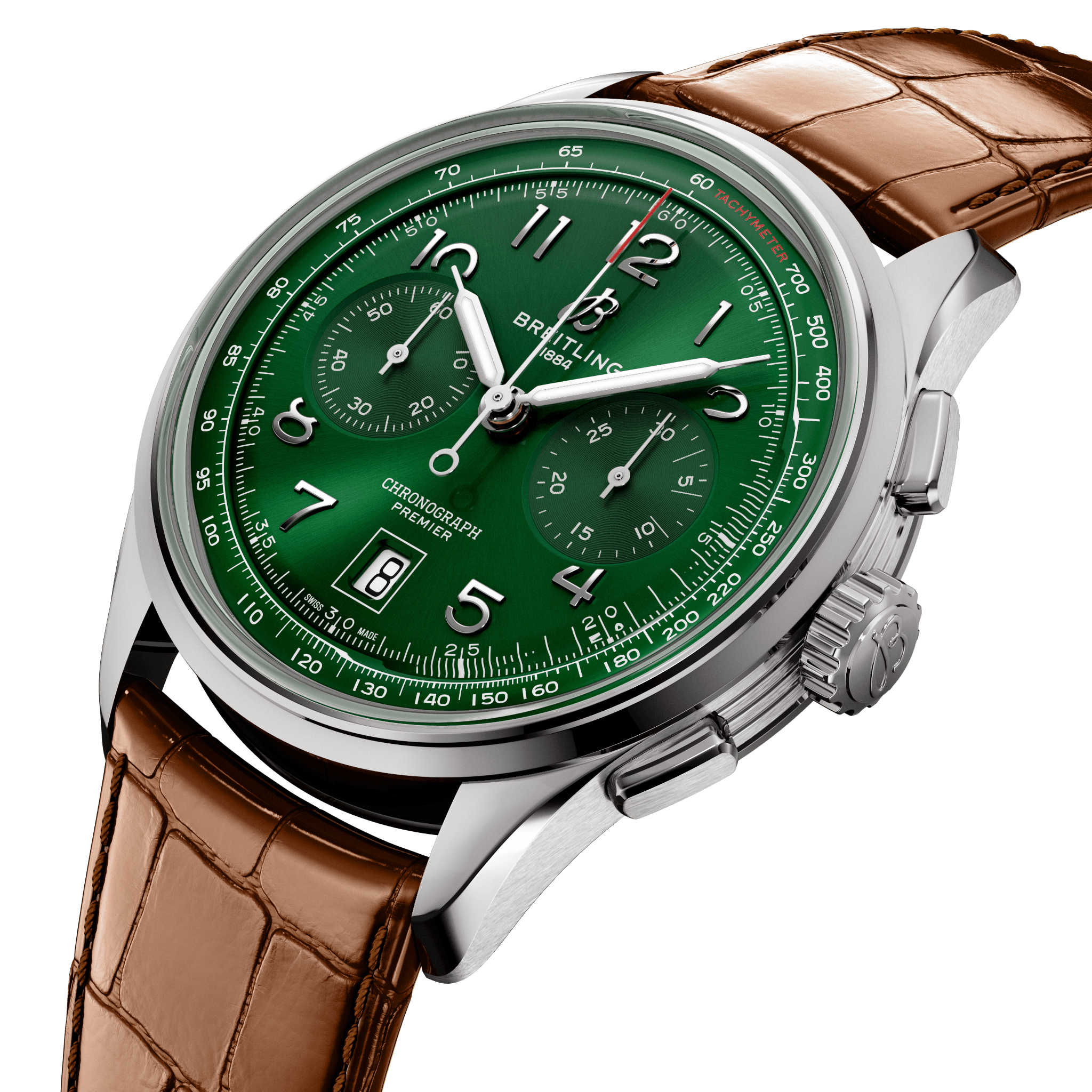 In the early 1940s, Willy Breitling was already dreaming of a time after the war, when utility would give way to unbridled optimism. He began designing a chronograph that would be functional but also undeniably elegant and infinitely wearable—in his words, “the unmistakable stamp of impeccable taste.” He called this new line the Premier. To create its modern Premier, Breitling preserved distinctive vintage-Premier details, including the smooth fixed bezel, twin-register dial, streamlined rectangular pushers and applied Arabic numerals. Today’s Premier also lives up to Willy Breitling’s uncompromising technical standards with its exceptional self-winding movement—the COSC-certified Breitling Manufacture Caliber 01—designed for maximum precision, reliability and functionality.