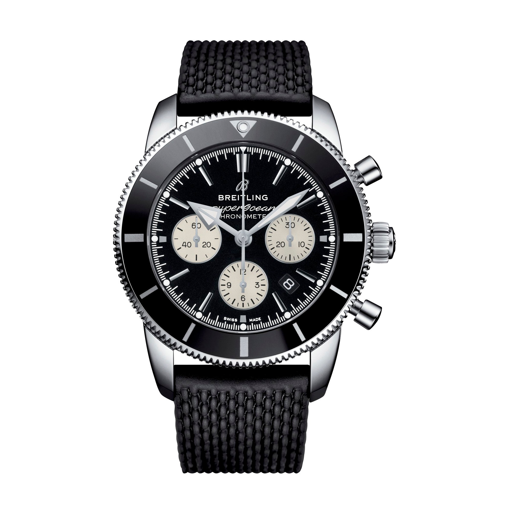 Robust and timeless, this Superocean Heritage model is powered by the in-house Breitling Manufacture Caliber 01. The 44 mm-diameter dial is available in black or blue with silver counters, or in silver with black bezel and counters – a stylish contrast on the wrist. With black rubber or steel mesh bracelet, the sturdy, reliable Superocean Heritage B01 Chronograph 44 is designed to endure the most challenging of voyages.