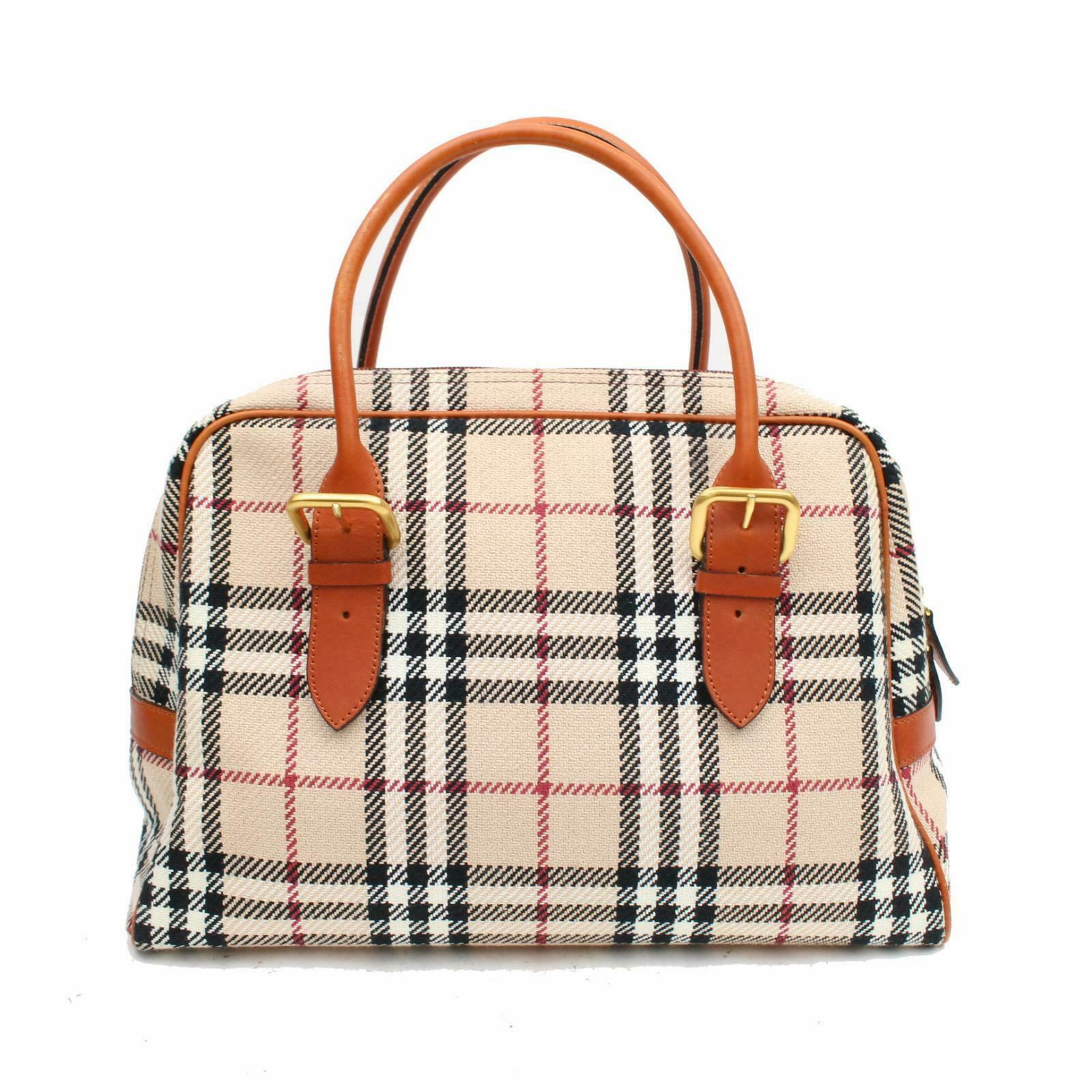 Authentic Burberry Hand Bag Beige Canvas (SHC1-14313)