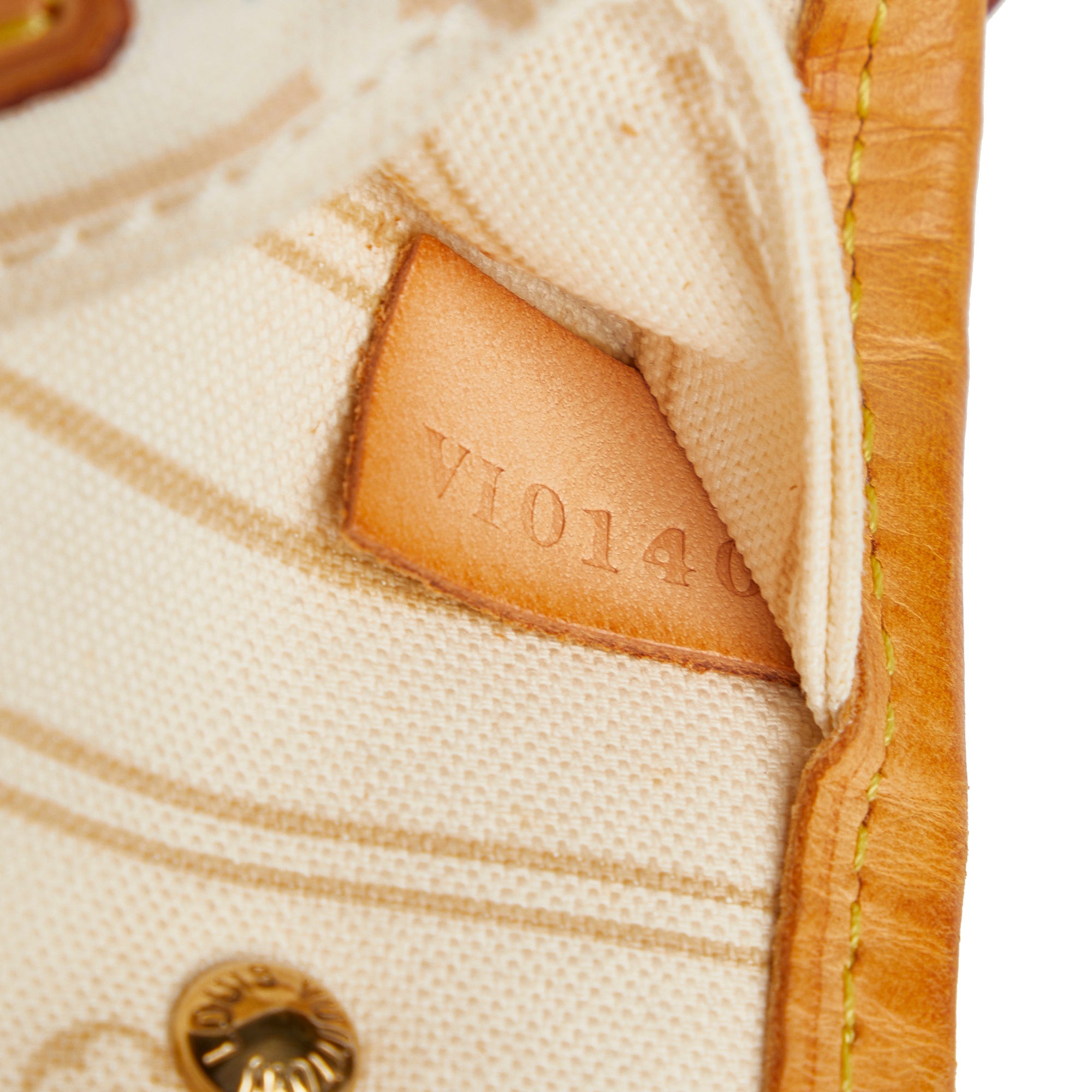 Product Details: White LV Damier Azur Neverfull PM Tote Bag. The Neverfull PM features a damier canvas body with vachetta leather trim, flat vachetta leather shoulder straps, an open top, and an interior zip pocket. 8.7″ L x 11.4″ W x 5.1″ D, 6.7″ drop. Serial number VI0140.