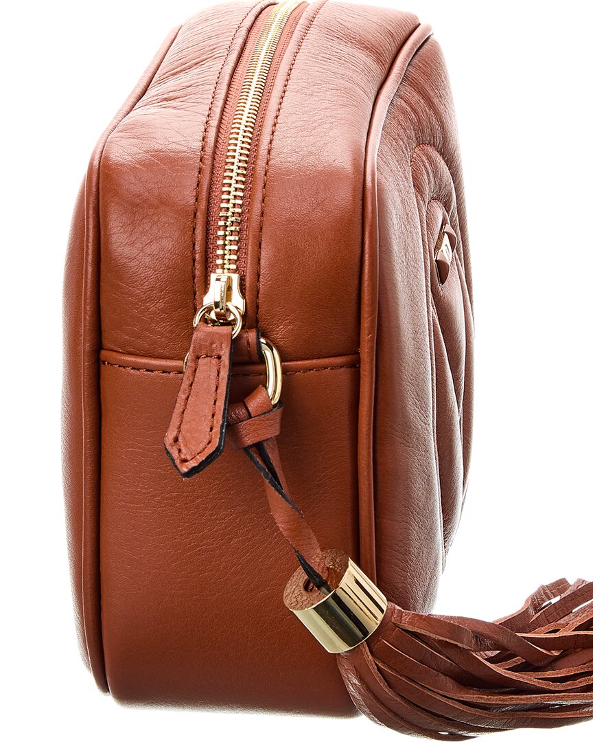 - Exterior Design Details: Gold-Tone Hardware, Embossed Logo Accent, Detachable Tassel Charm