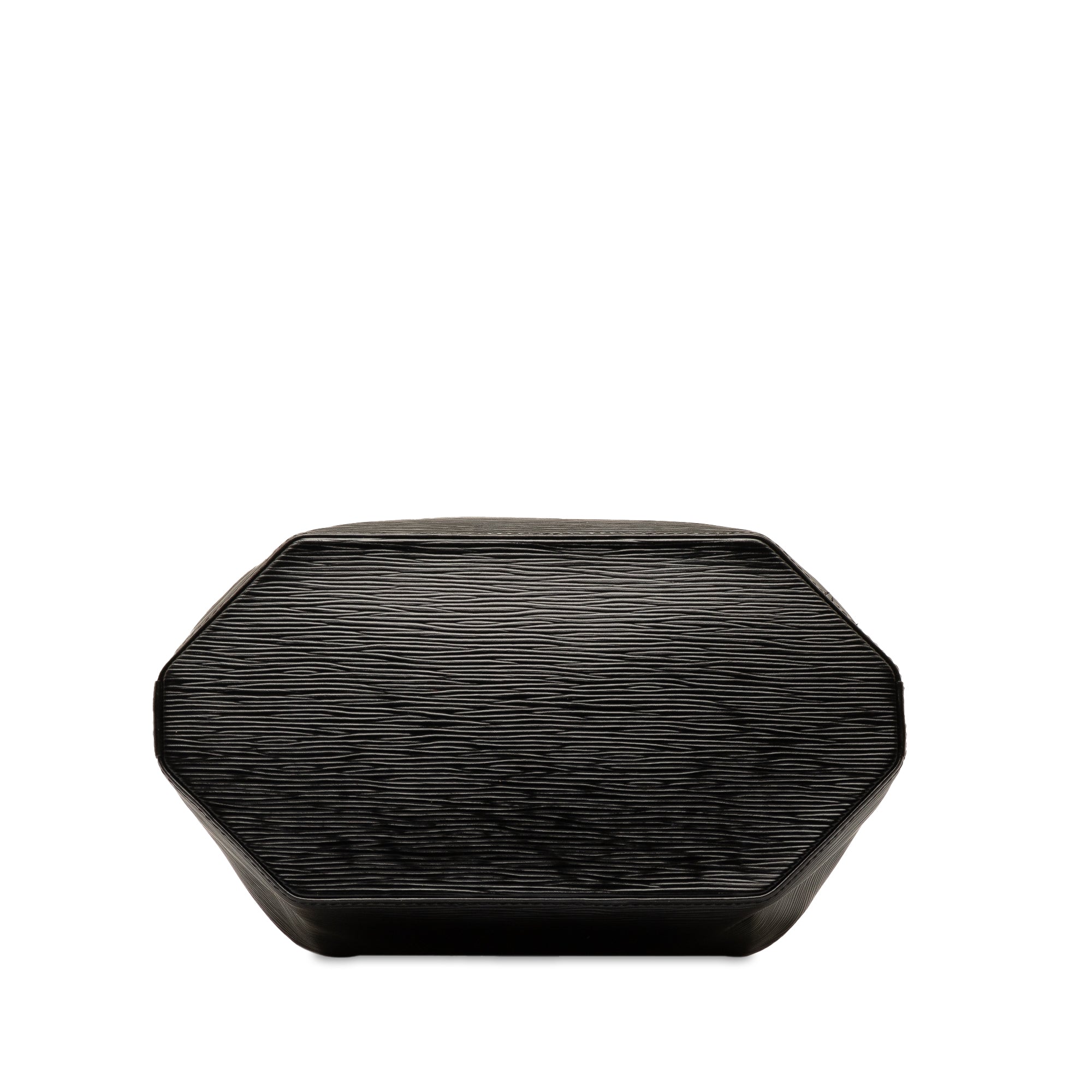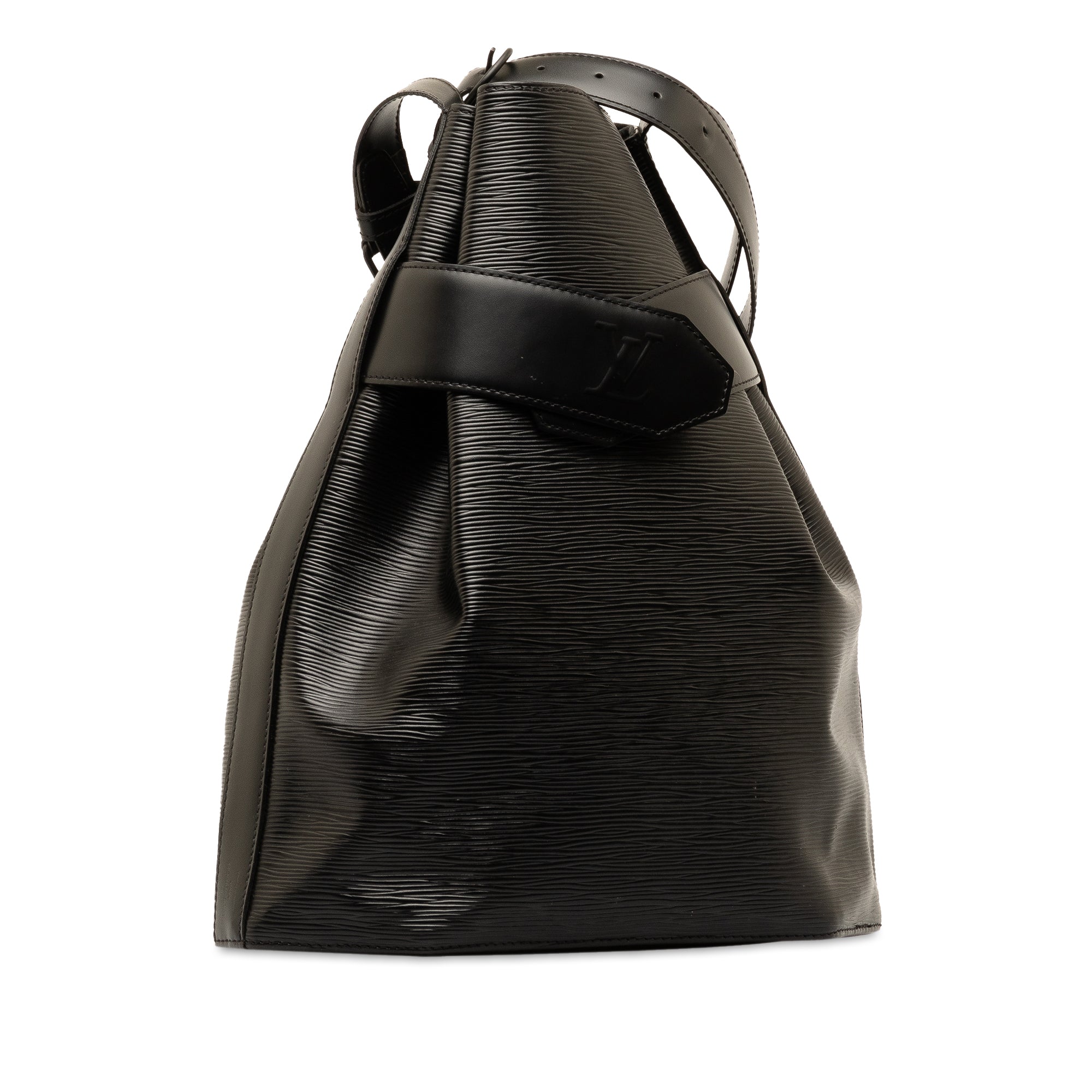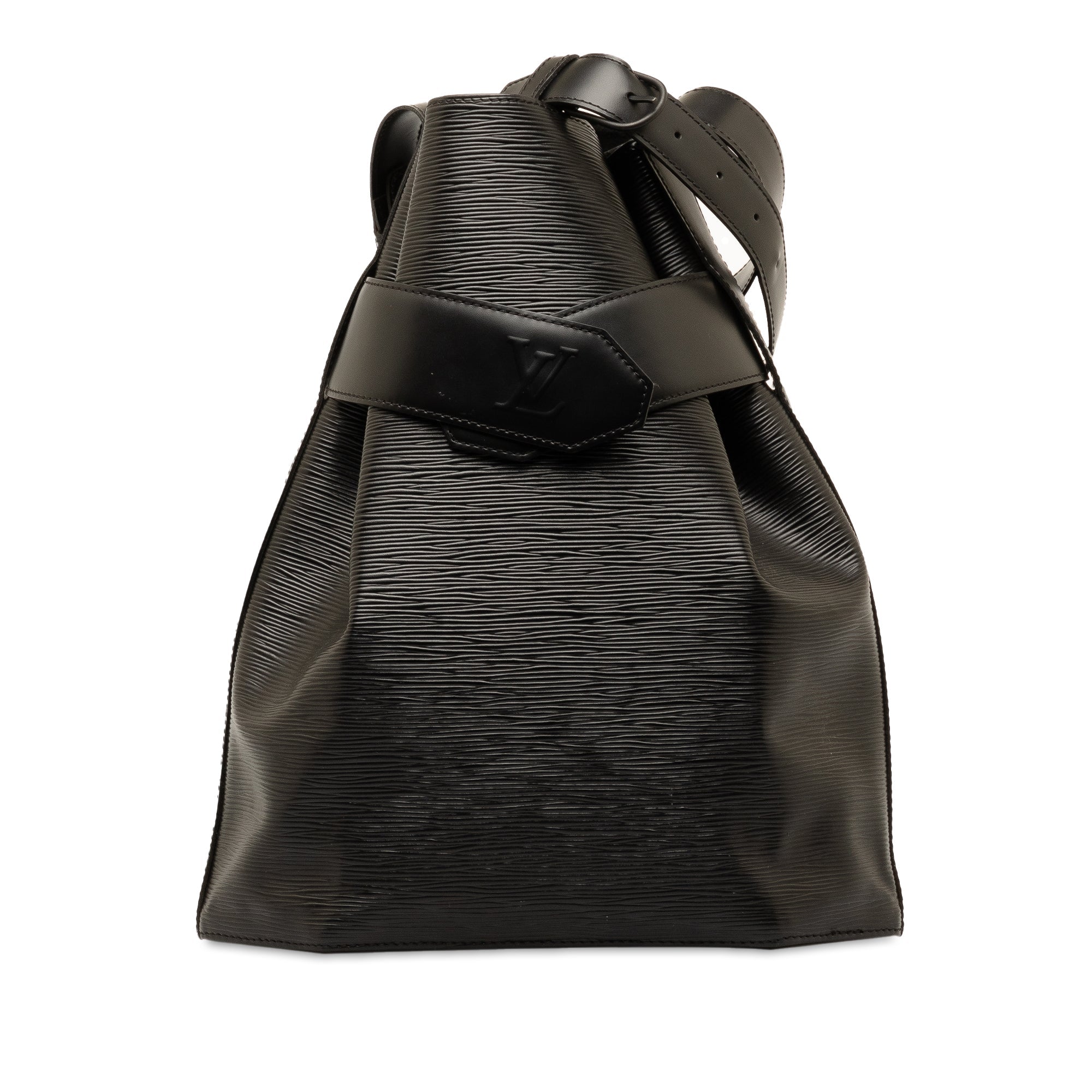 Product Details: Black LV Epi Sac D Epaule PM Bucket Bag. The Sac D Epaule PM features an epi leather body, an open top with a leather belt and magnetic snap closure, and an adjustable flat leather shoulder strap. 11.8″ L x 10.6″ W x 5.5″ D. Serial number VI0966.