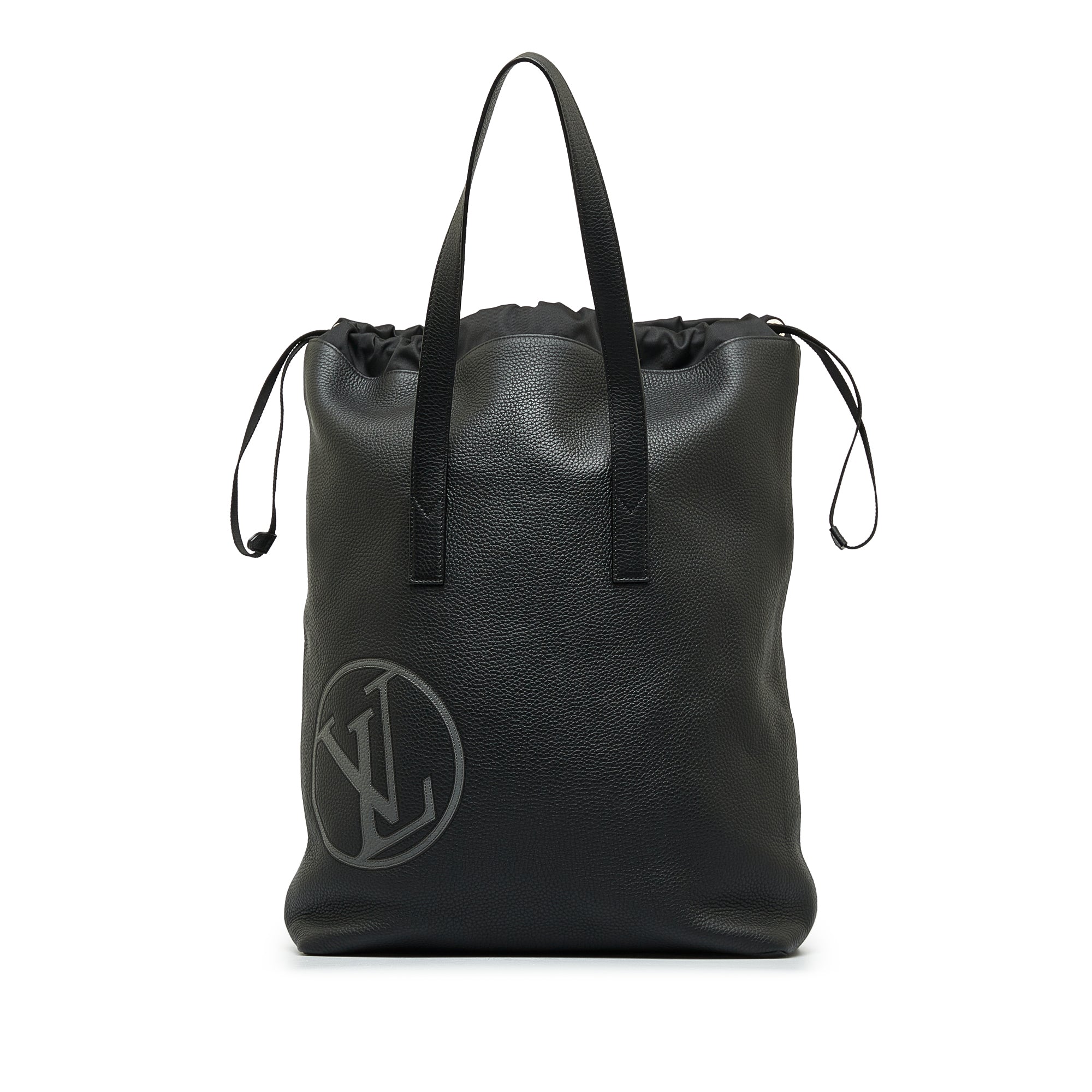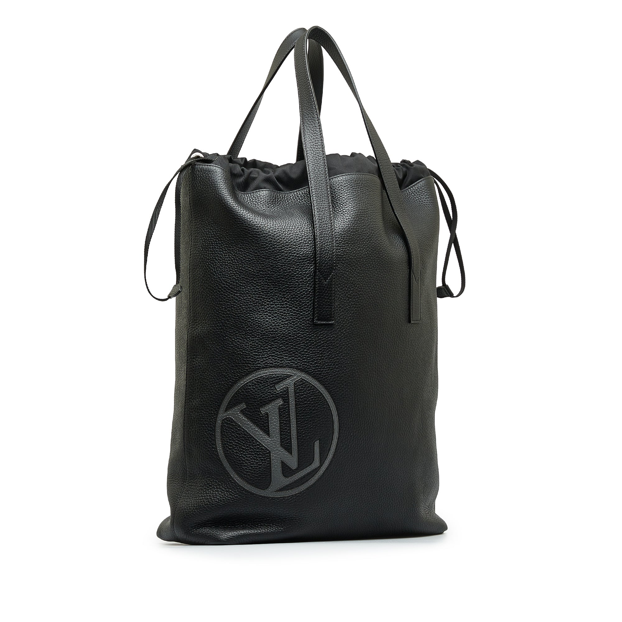 Product Details: Black LV Taurillon Light Cabas Tote Bag. The Light Cabas features a taurillon leather body, flat handles, and a top drawstring closure. 19.7″ L x 18.5″ W x 5.5″ D, 11.8″ drop. Serial number FO4147.