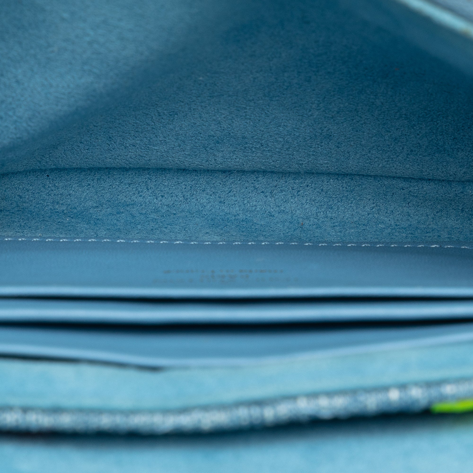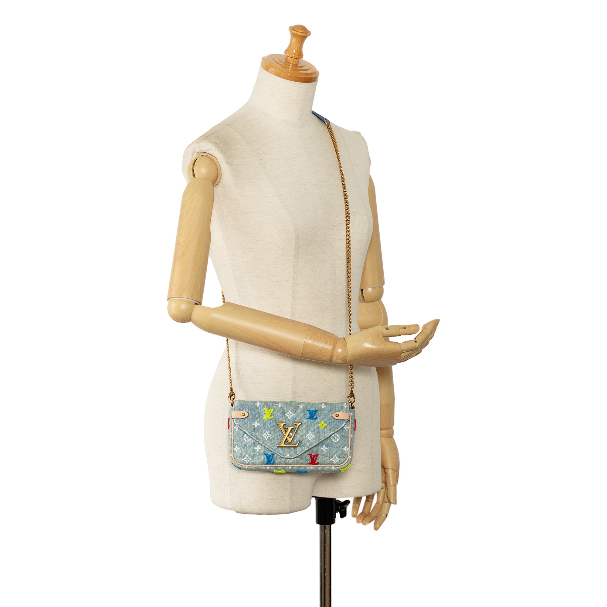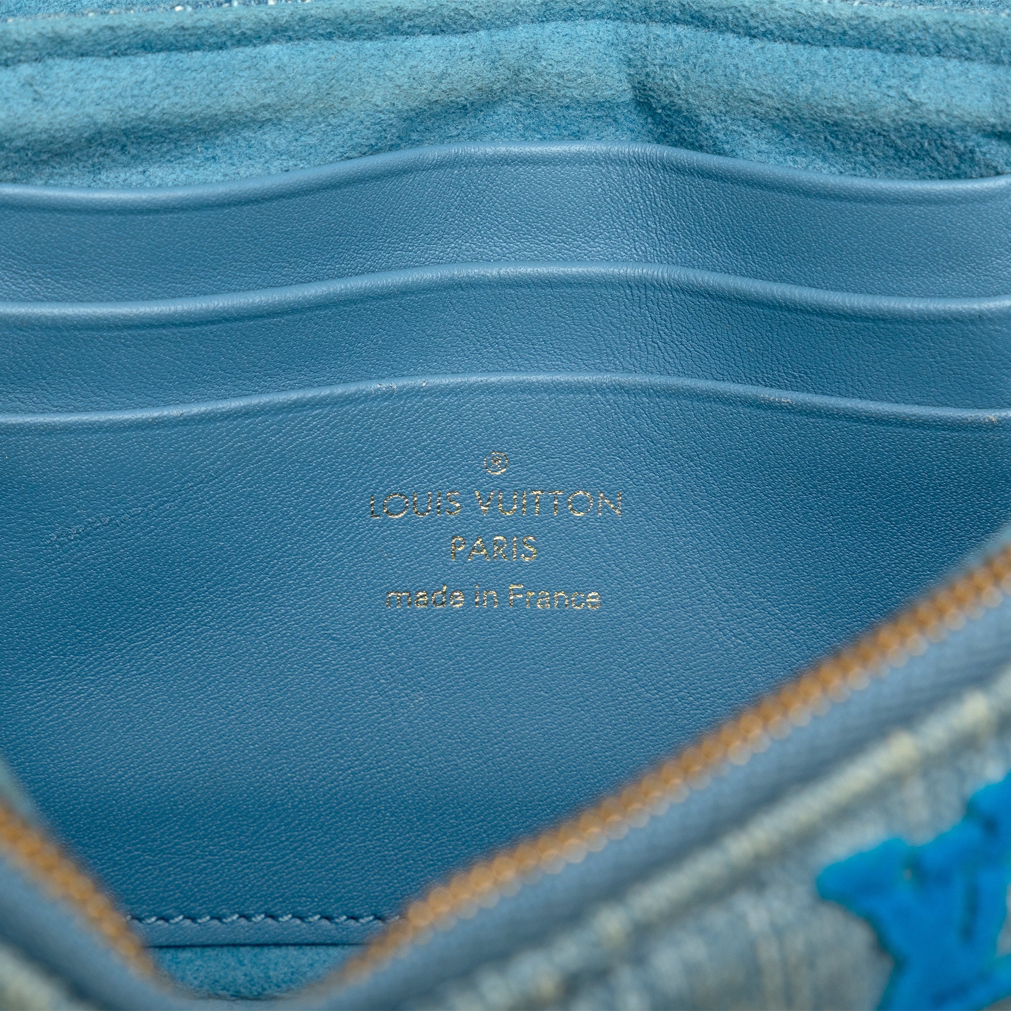 Please note this is a item that may display NEWconsistent with the listed above and shown in photos. Designer Revival s this is an Blue LV Embroidered Monogram Denim New Wave Chain Pochette Crossbody Bag .