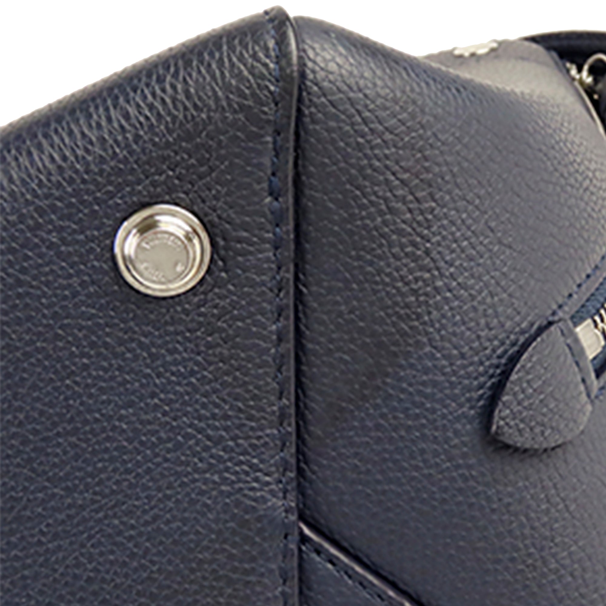 Product Details: Blue LV LV Freedom Satchel . The Freedom satchel features a calf leather body, rolled leather handles, a detachable flat strap, side zippers for expansion, a top zip closure, and interior slip and zip pockets. 9.6″ L x 14.2″ W x 6.3″ D, 8.7″ drop. Serial number TJ0168.