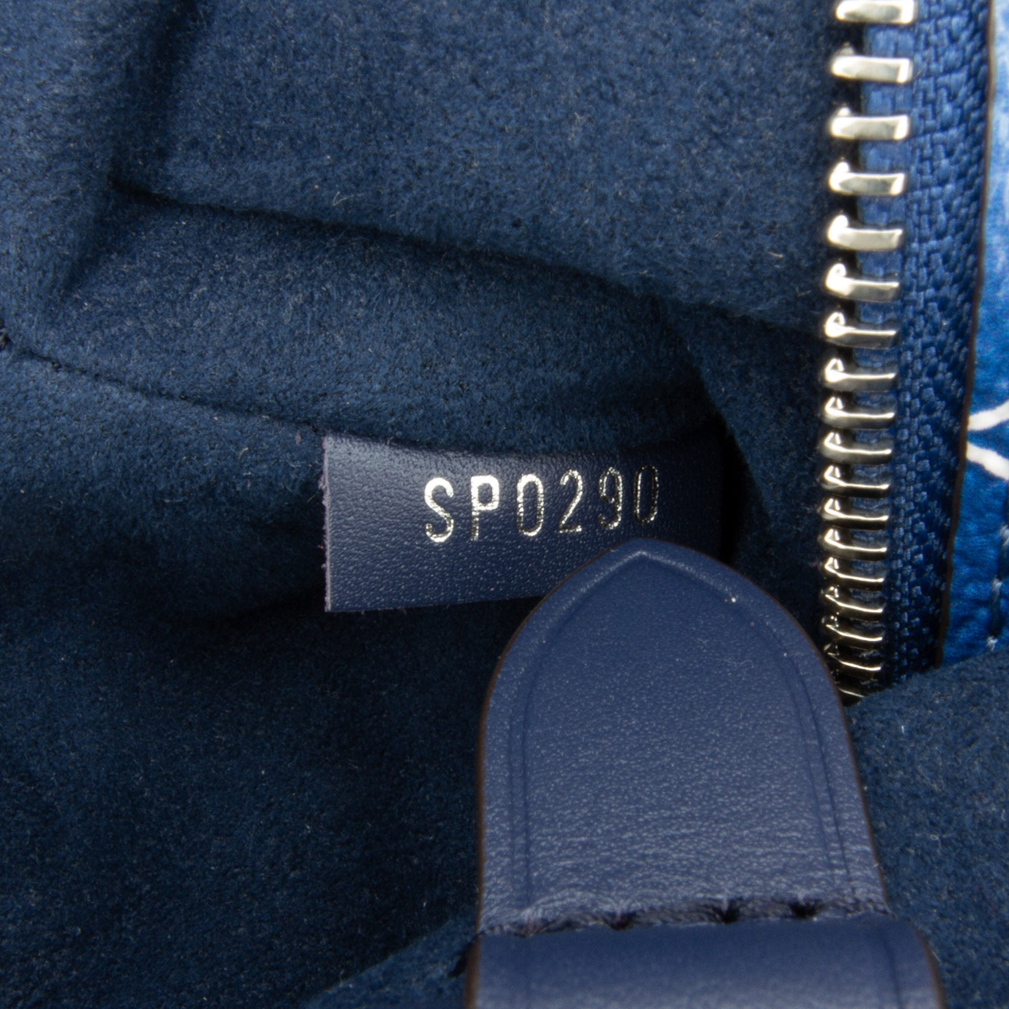 Product Details: Blue LV Monogram Escale NeoNoe MM Bucket Bag. The NeoNoe features a monogram canvas body, a detachable flat leather shoulder strap, a drawstring closure and an interior zip pocket. 10″ L x 10.2″ W x 6.7″ D. Serial number SP0290.