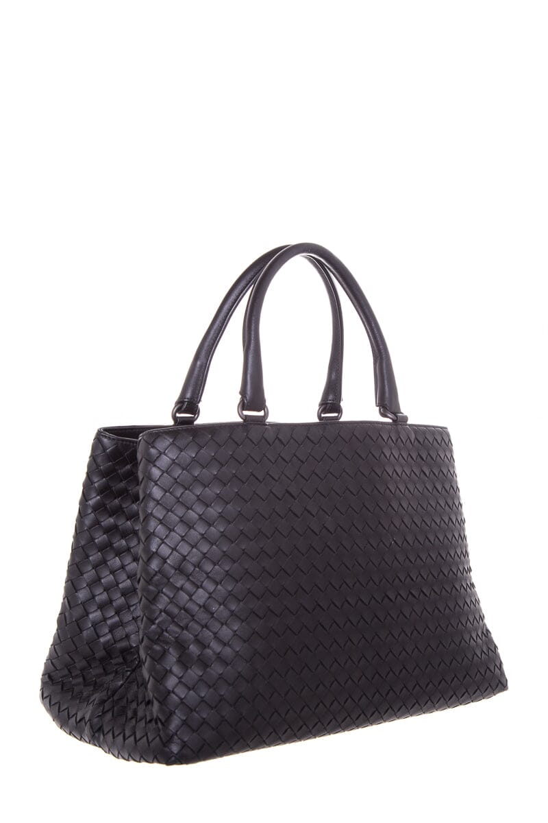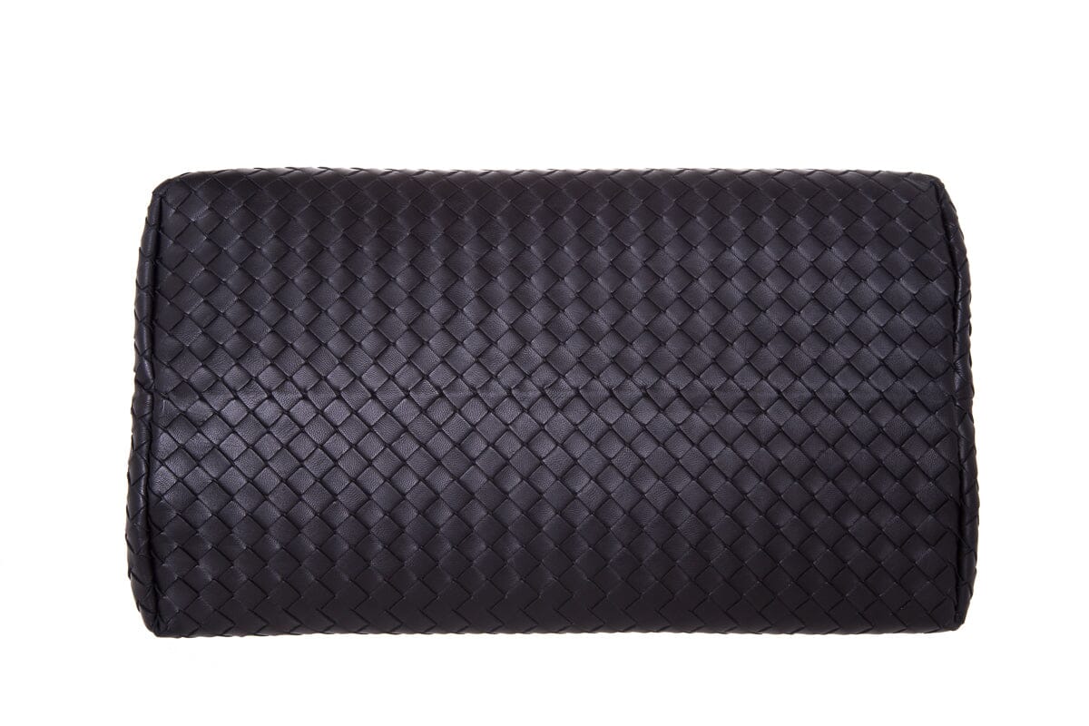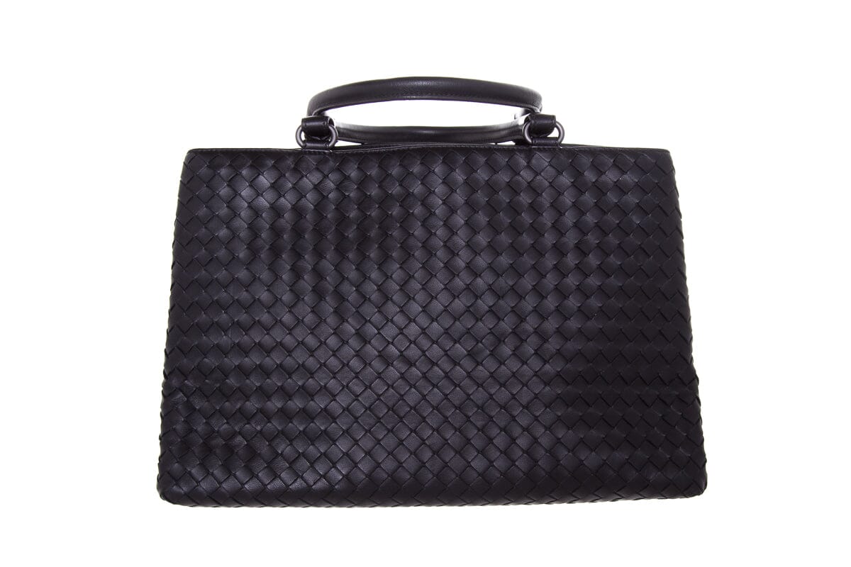 Bottega Veneta Black Intrecciato Leather Handbag. Features Dual Interior Pouches. This item is in very good condition.