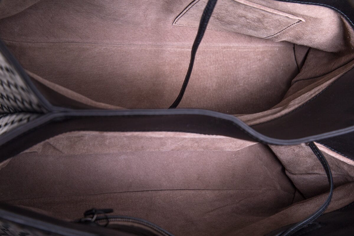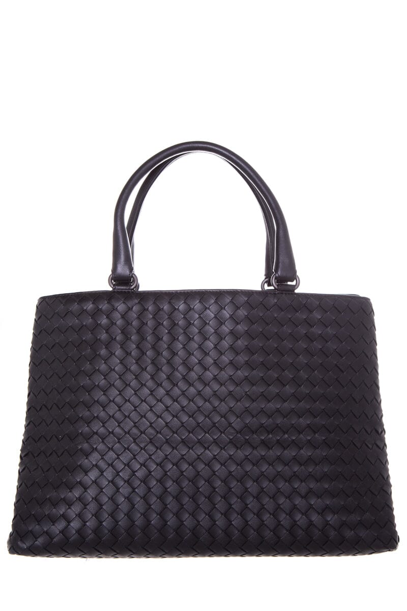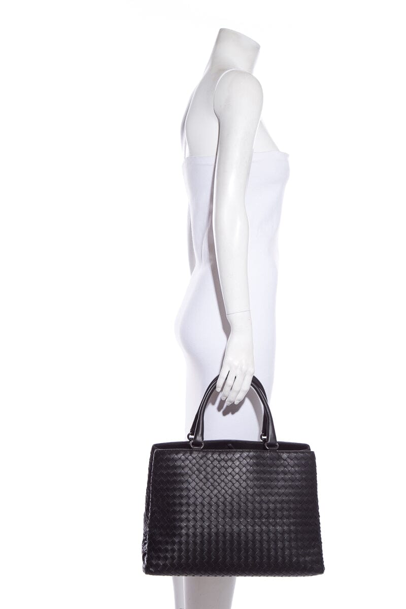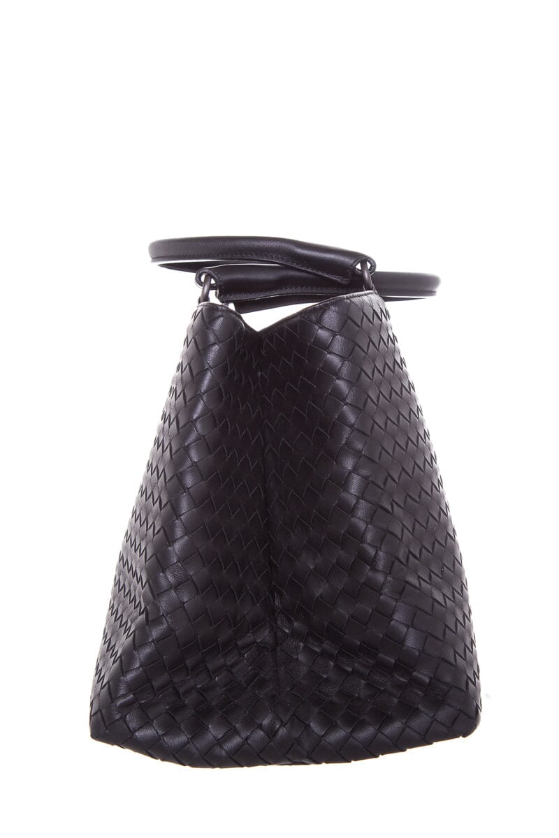 Bottega Veneta Black Intrecciato Leather Handbag. Features Dual Interior Pouches. This item is in very good condition.