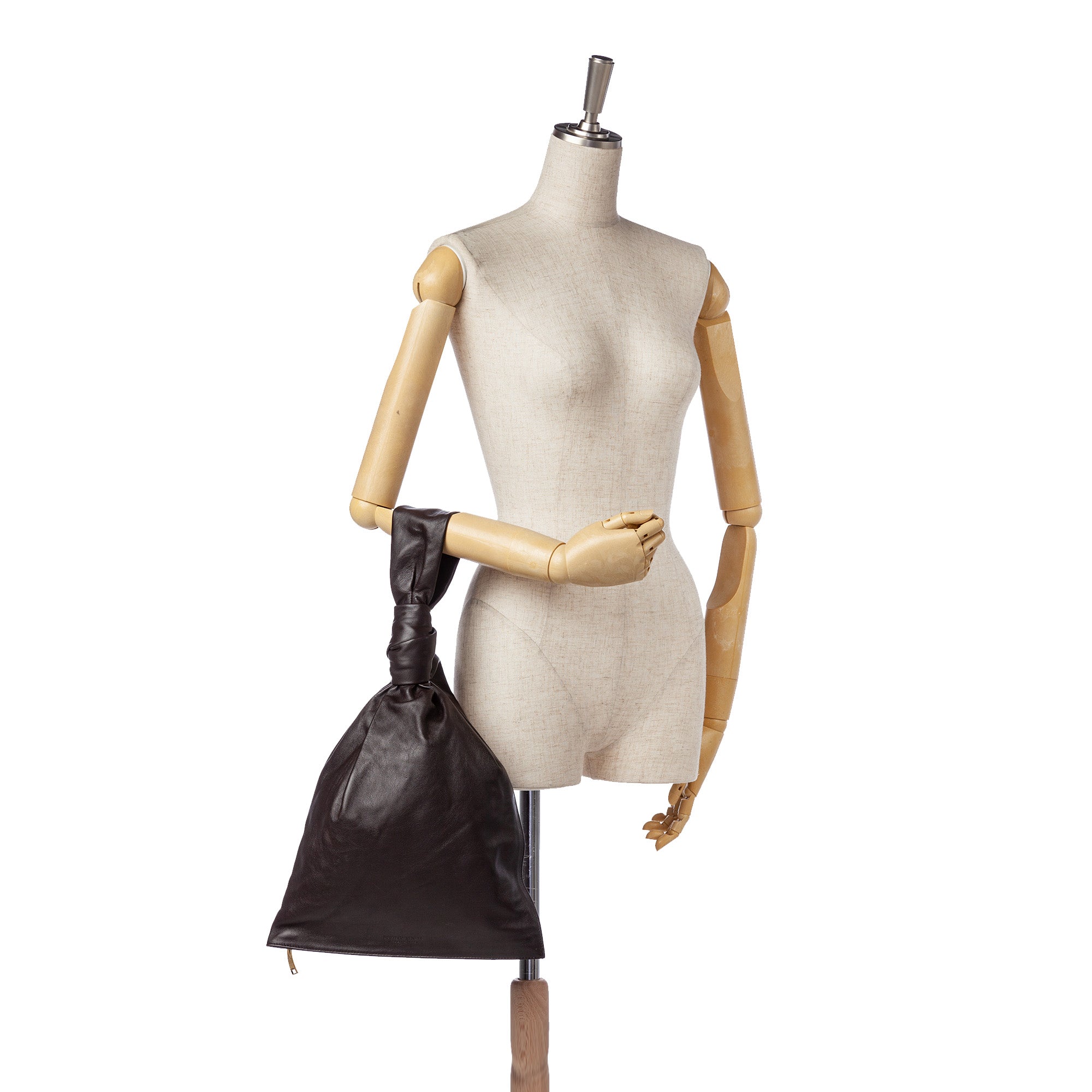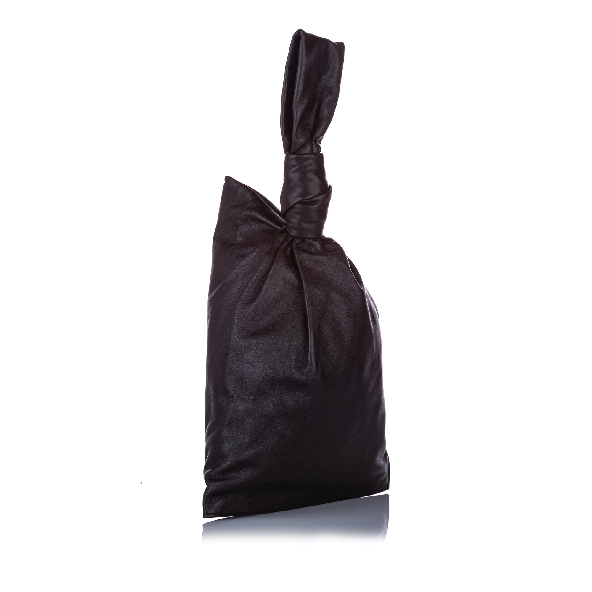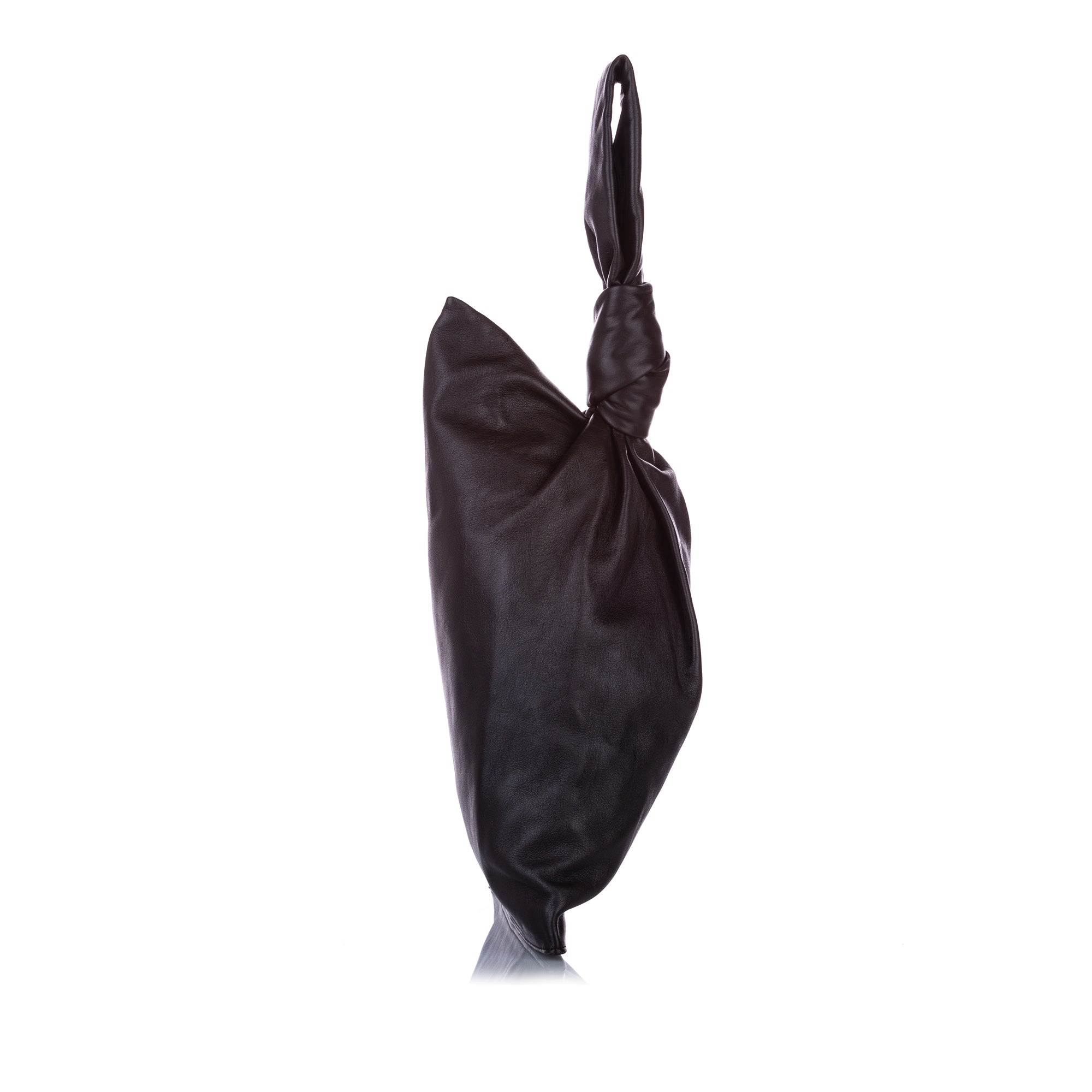 This extraordinary Bottega Veneta BV Twist was made of black leather. On the top, the leather has a knot that enables the Bag to guide over the loop in your hand. The interior of the Bag is opened up via a zipper on the underside. Here has the Bag A zipper compartment. the Bag is guided in the hand and possession with its special form a unique selling point.
