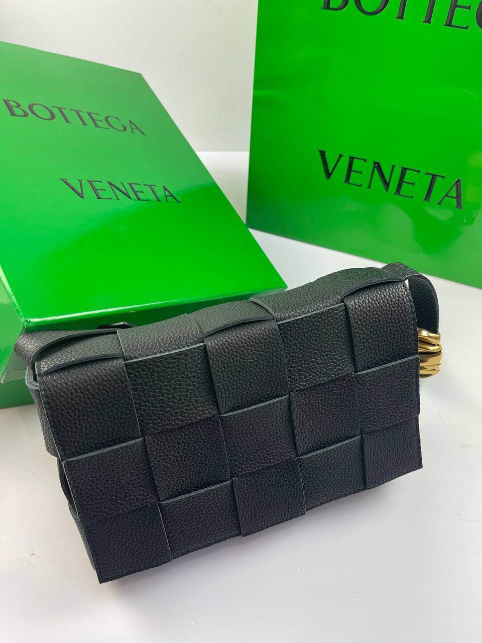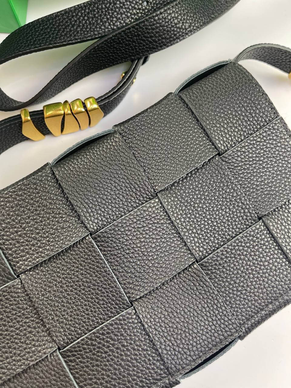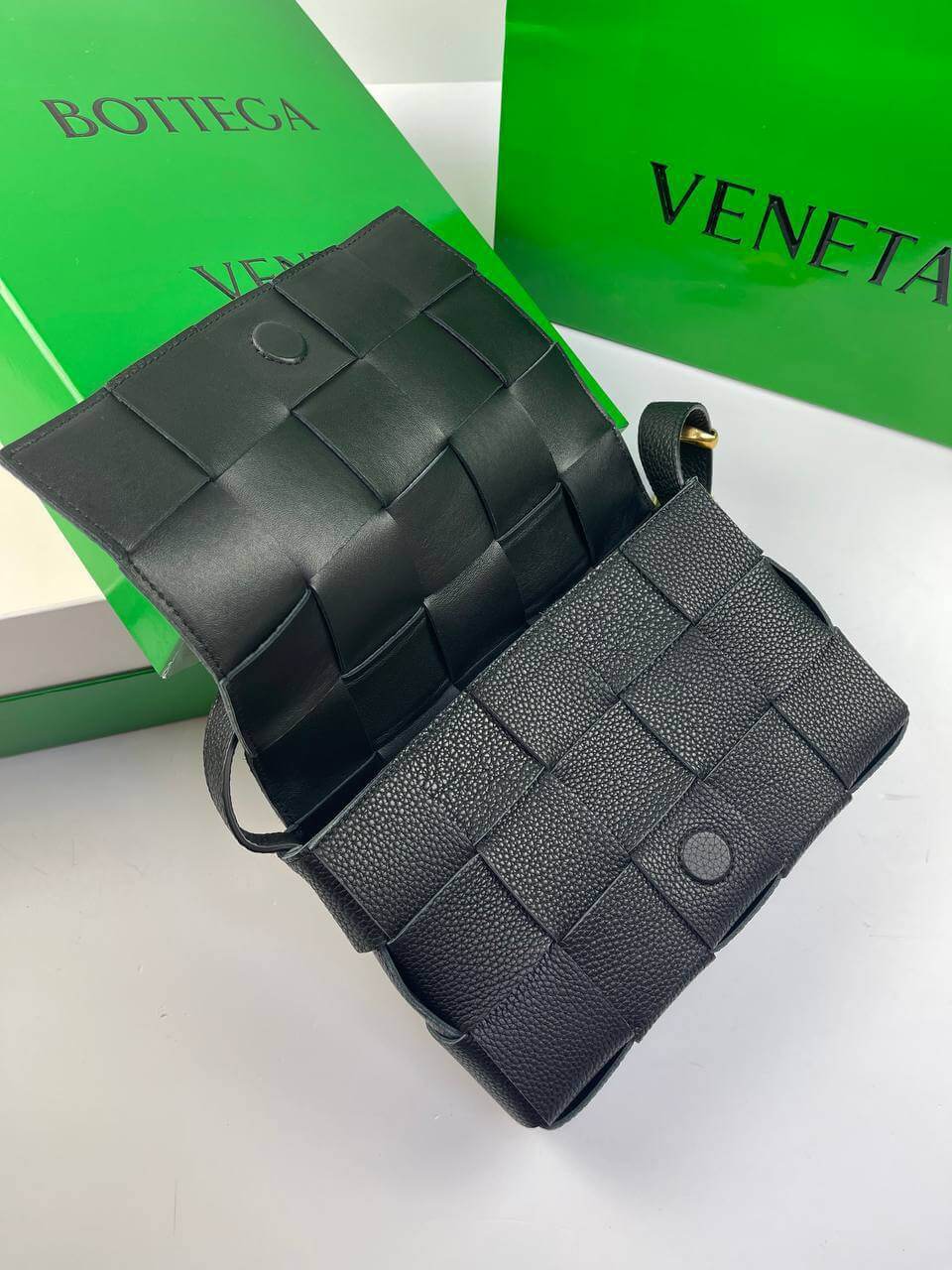 BOTTEGA VENETA Cassette Intrecciato grained leather shoulder bag black