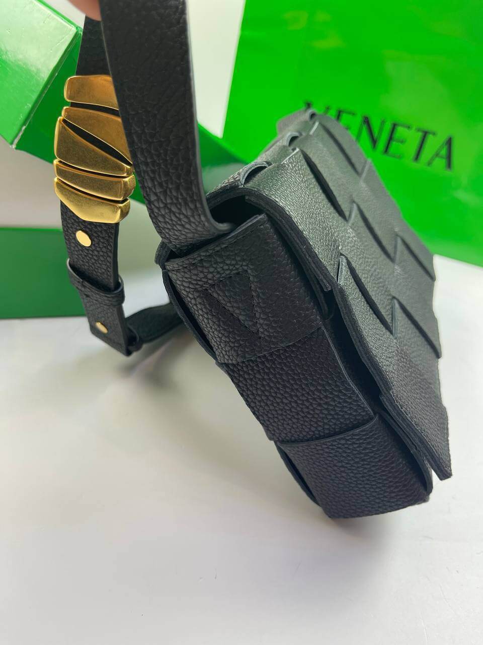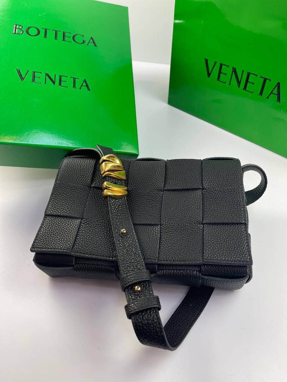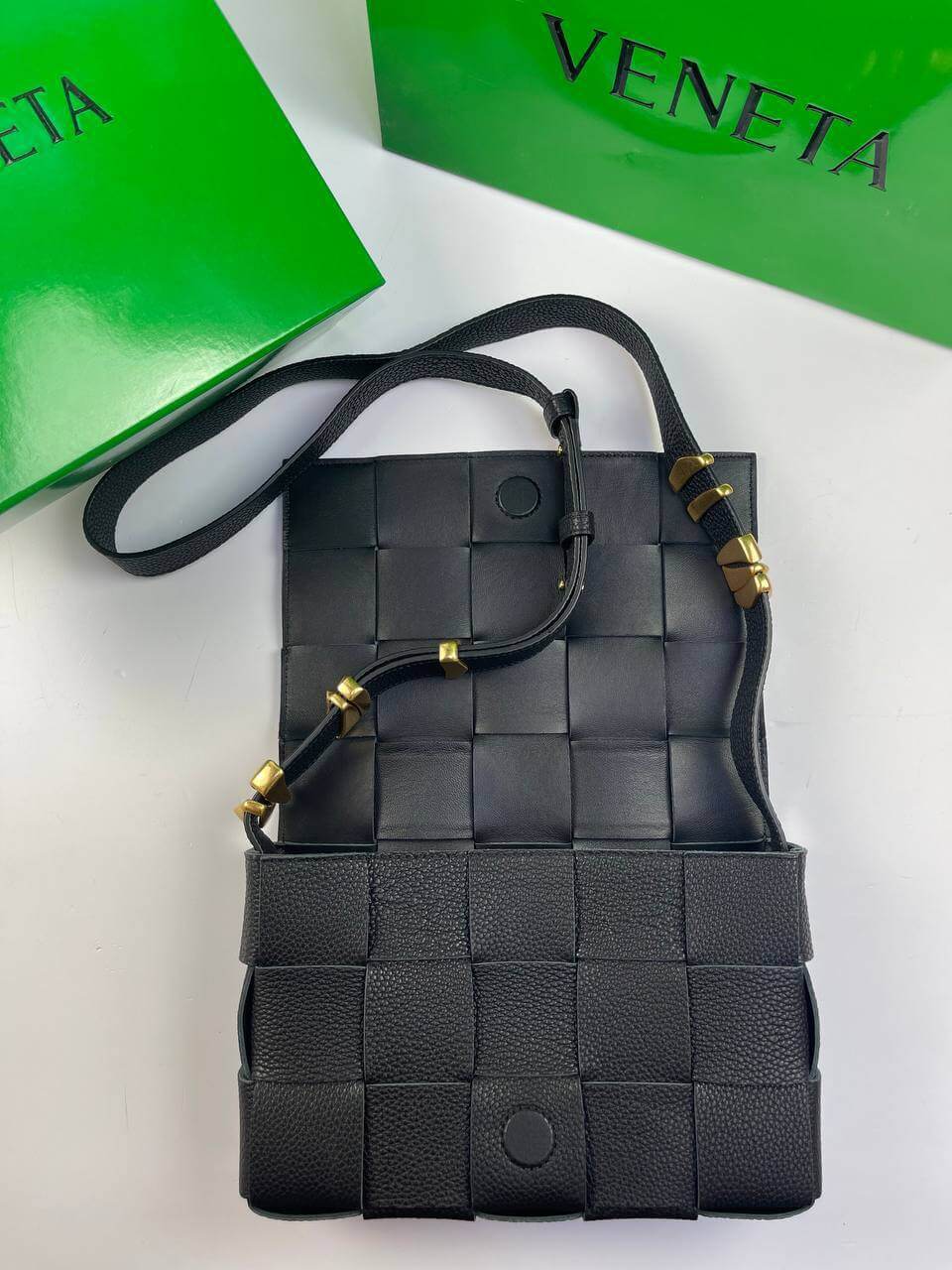 BOTTEGA VENETA Cassette Intrecciato grained leather shoulder bag black