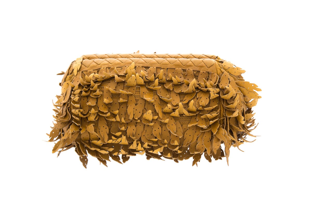Bottega Veneta Mustard Leaf Effect Leather Clutch