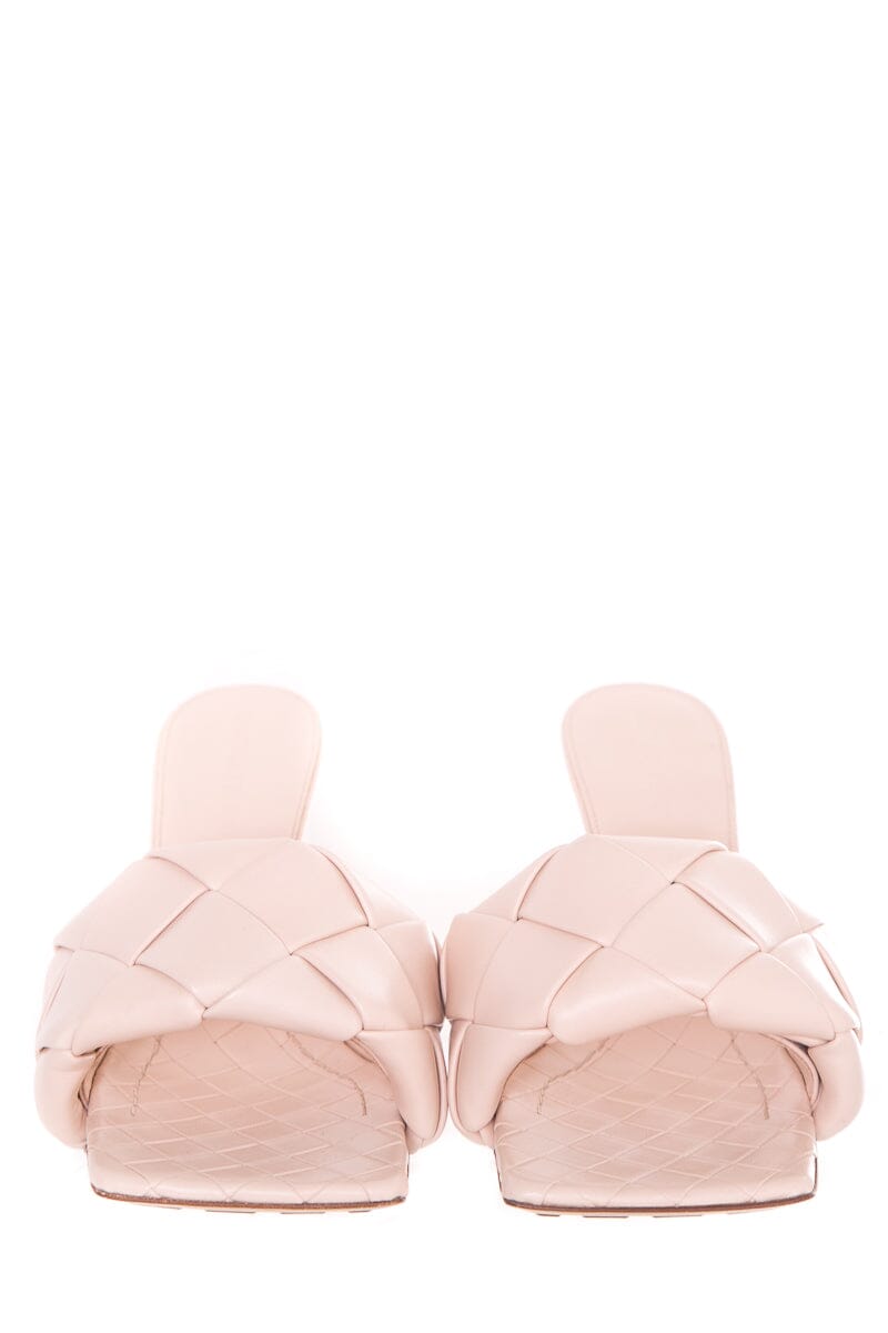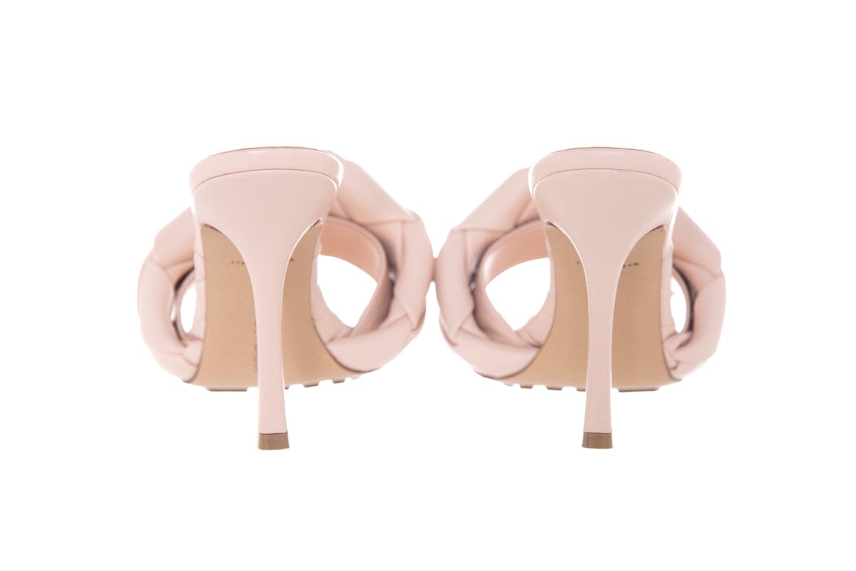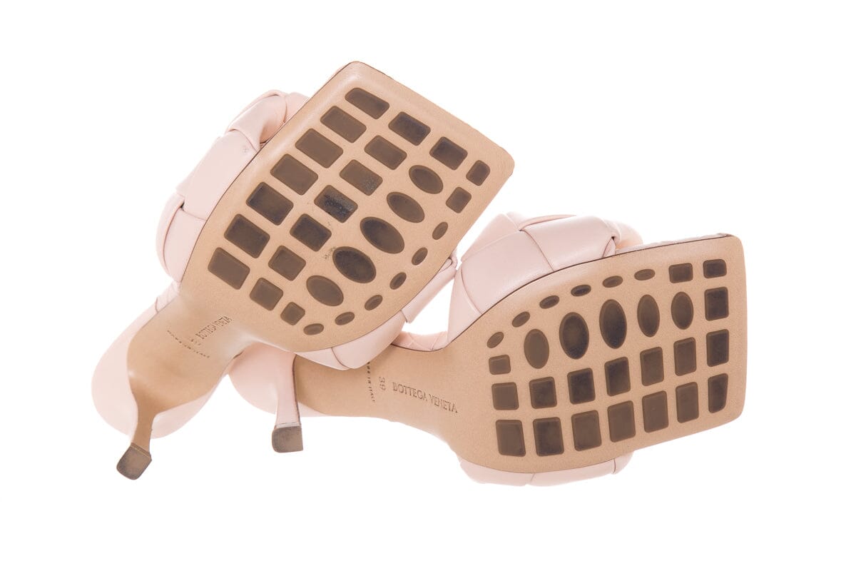 Bottega Veneta Sand Intrecciato Woven Heels. This item is in very good condition; small nick in heel shaft.