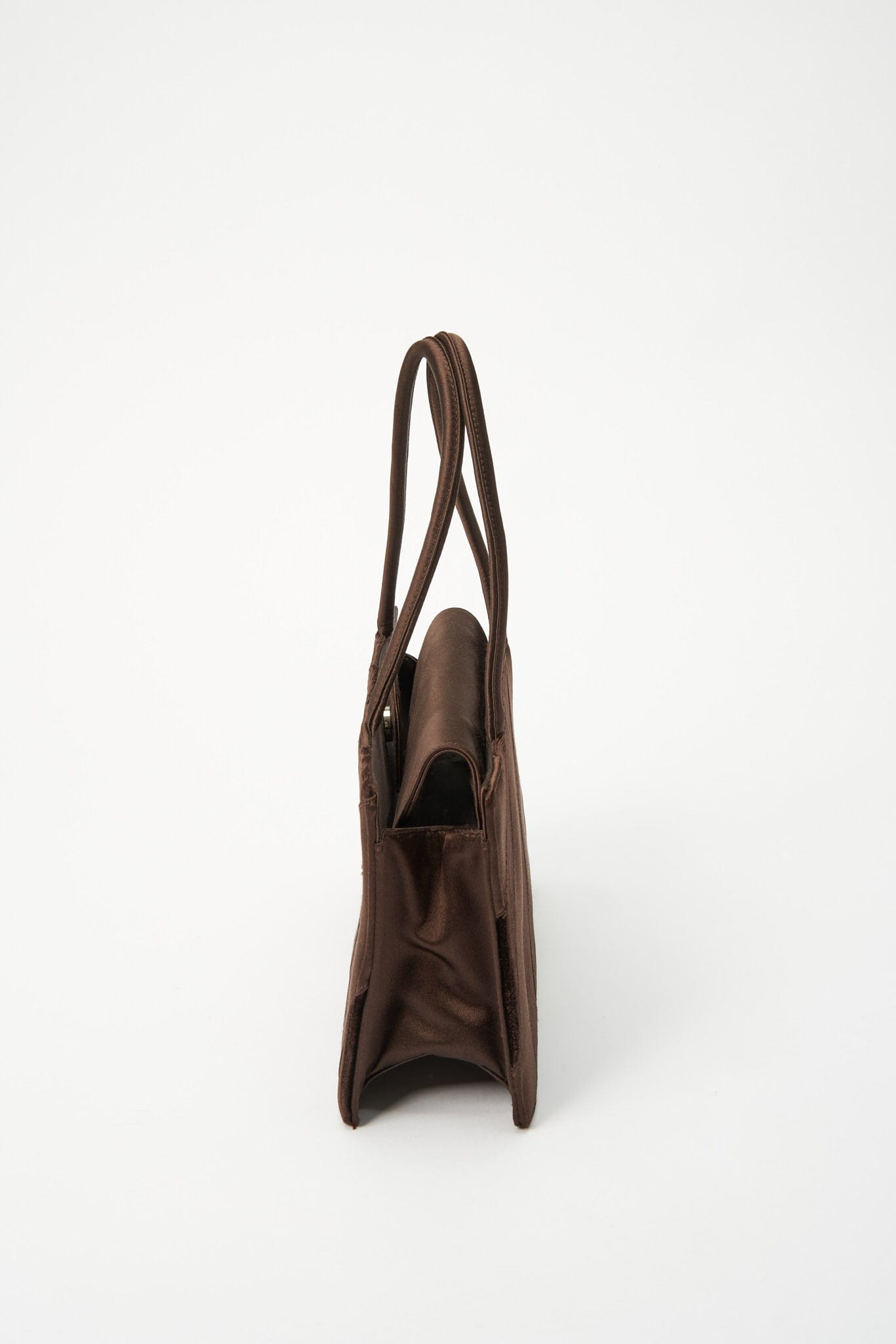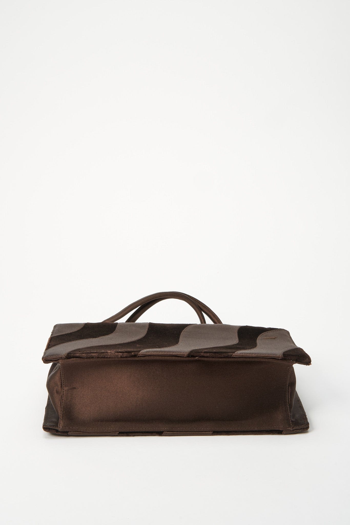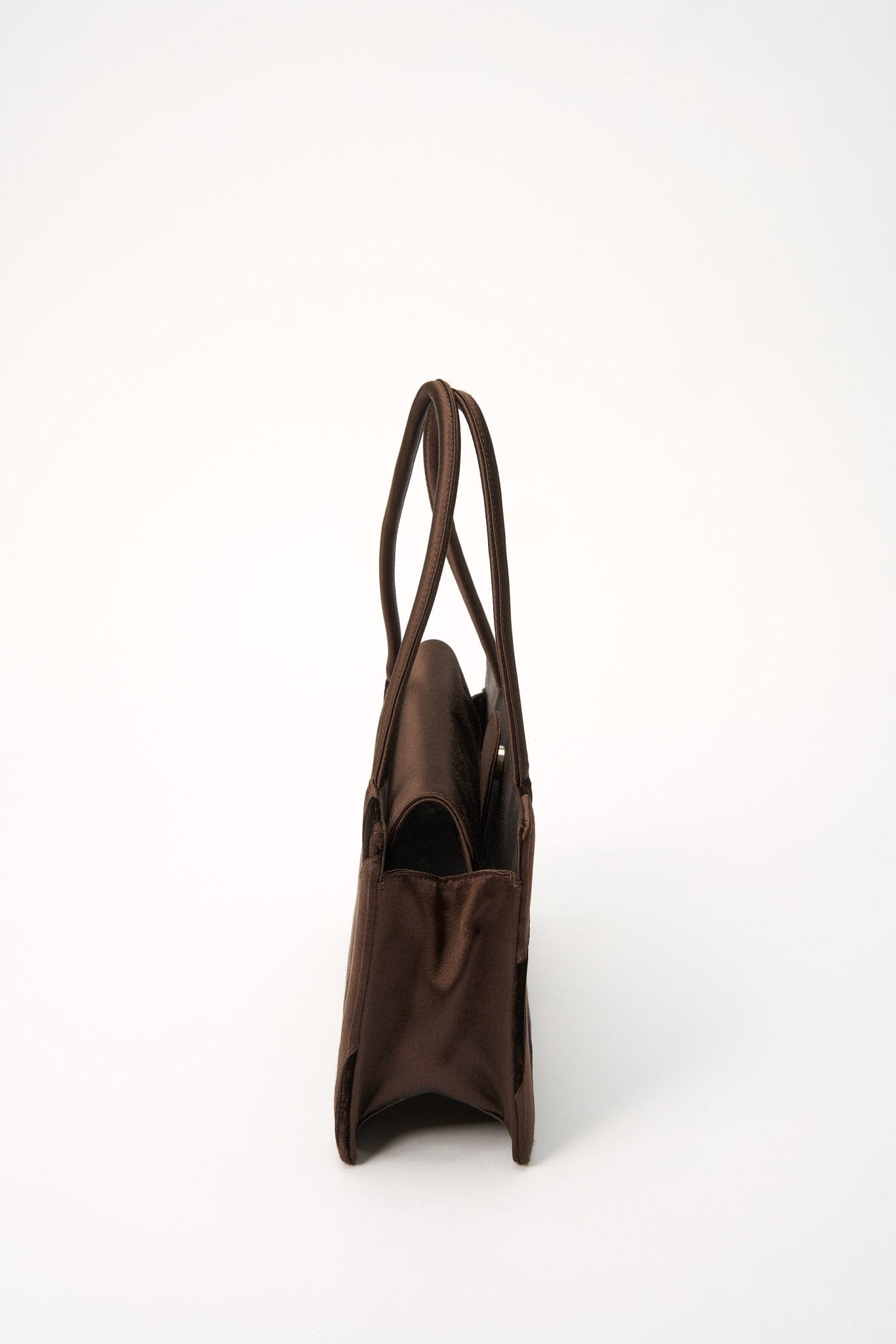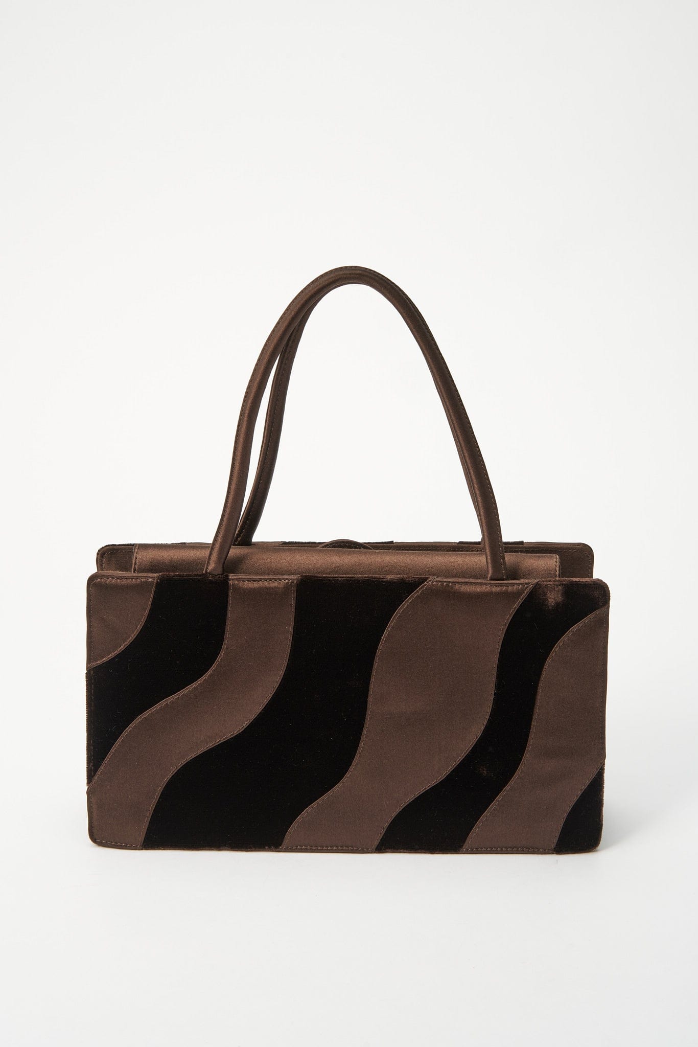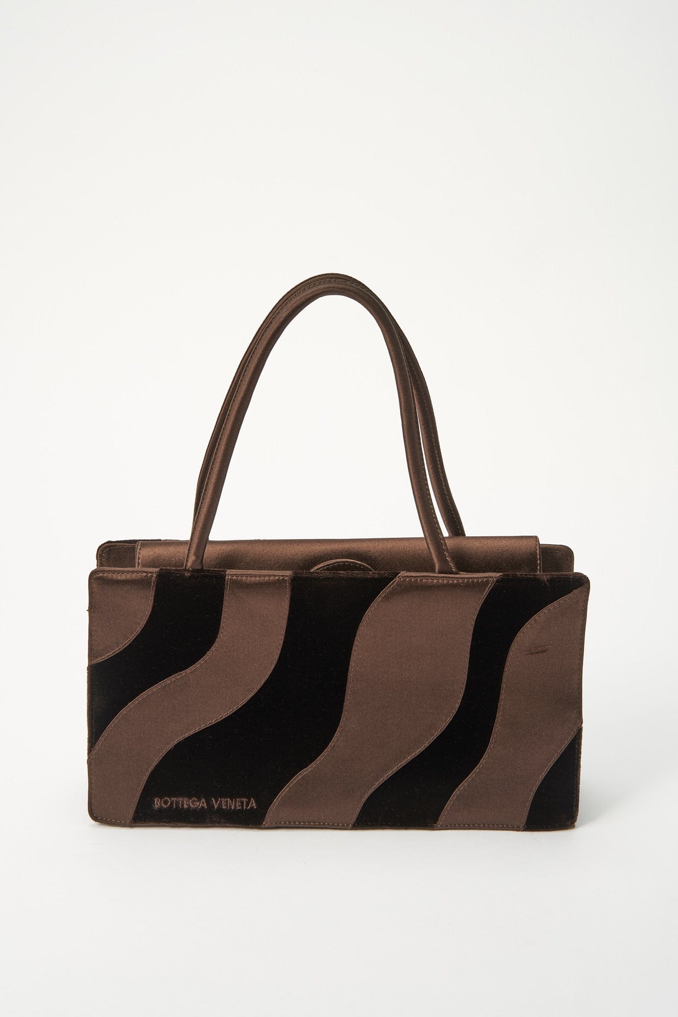 A beautiful vintage Bottega Veneta satin and velvet brown evening bag.