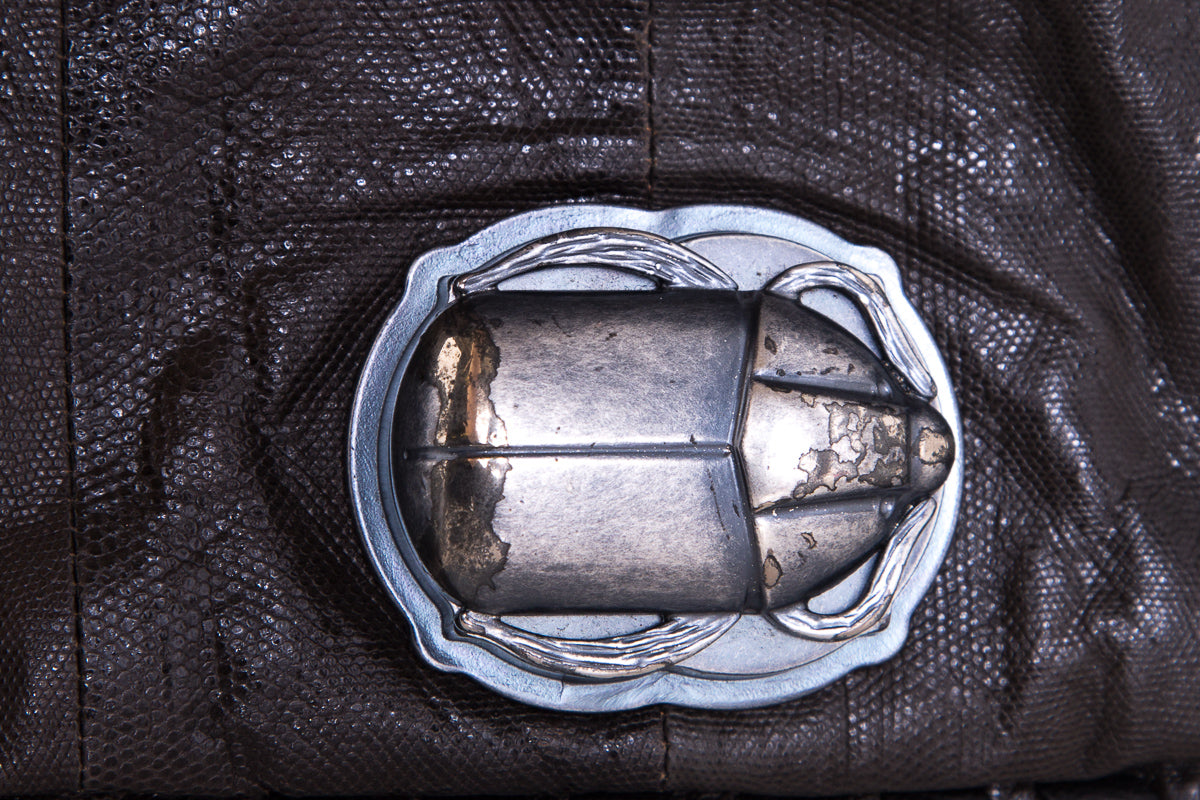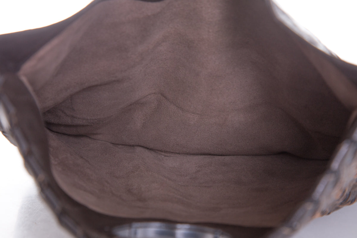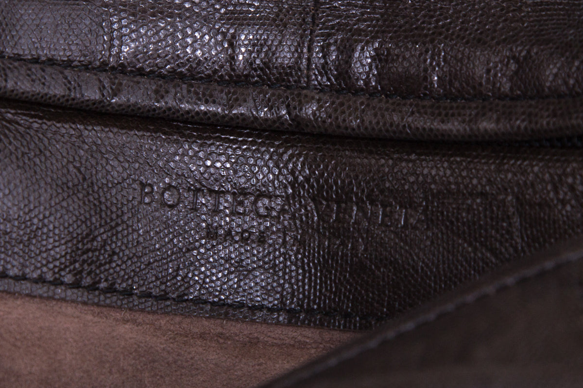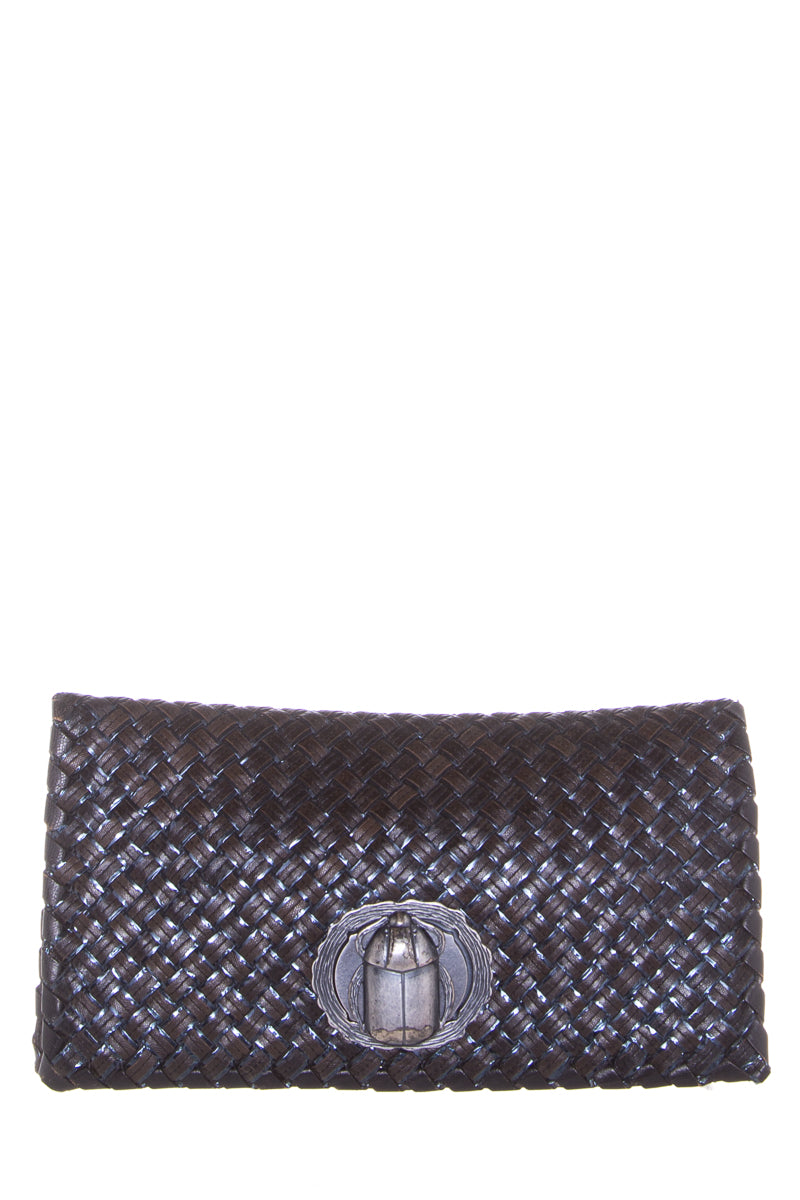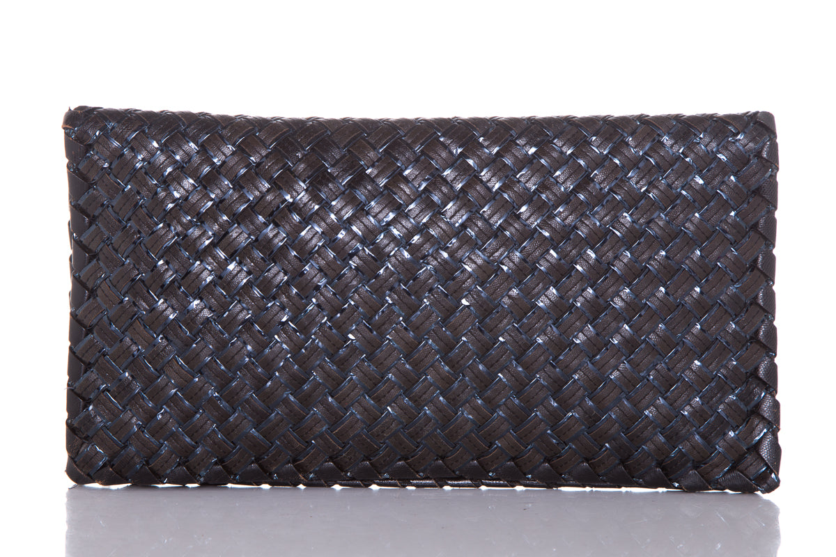 Bottega Veneta Vintage Black Scarab Beatle Intrecciato woven Clutch with turn lock closure. This item is in good condition but has mark to interior, wear to corner edges and hardware on exterior.