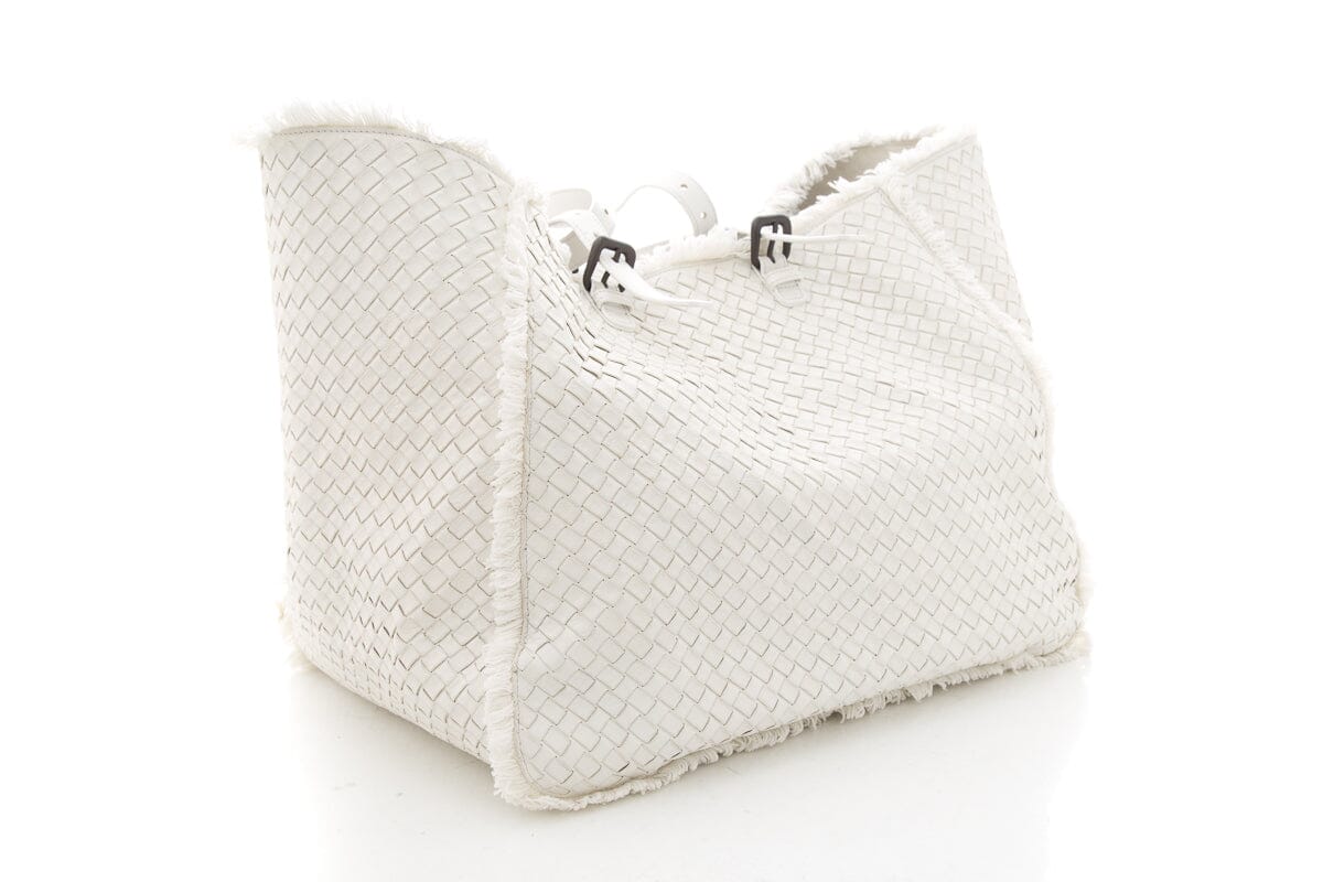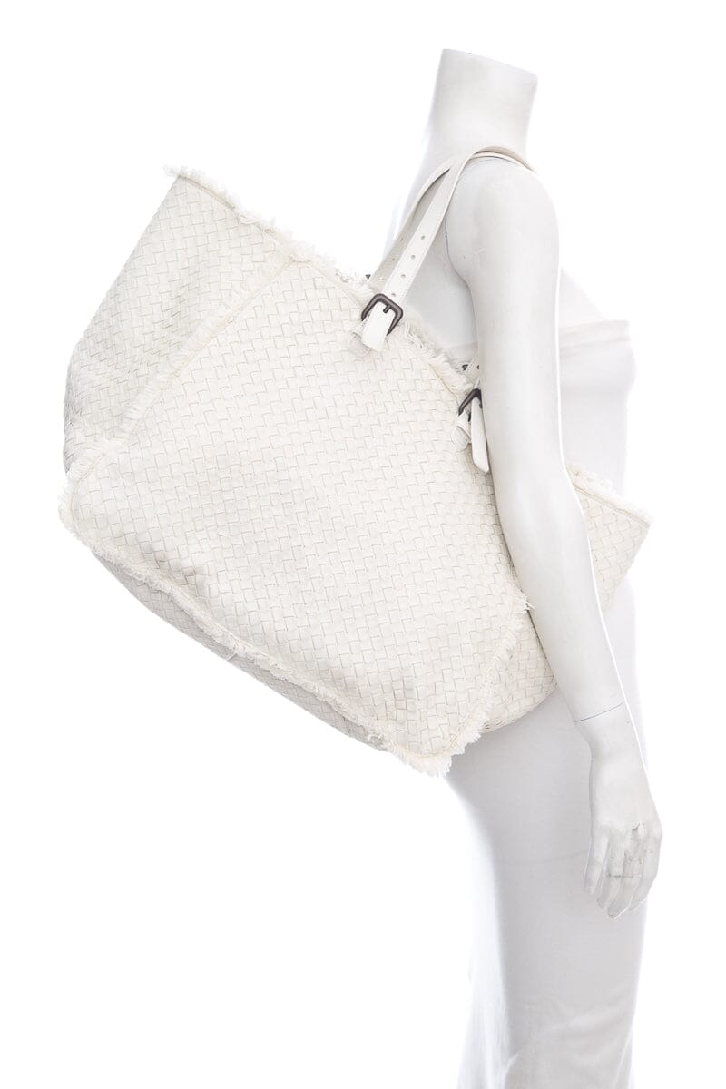 Bottega Veneta White Intrecciato Fringe Tote. This item is new with tags.