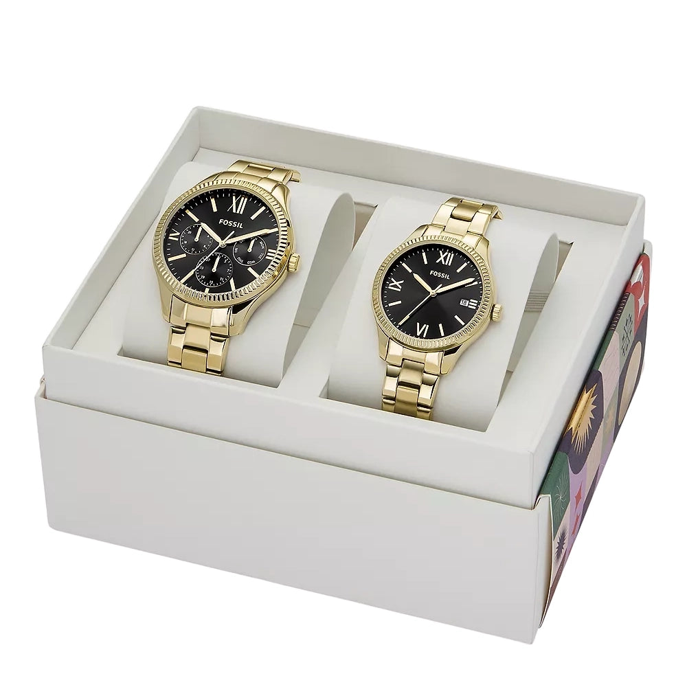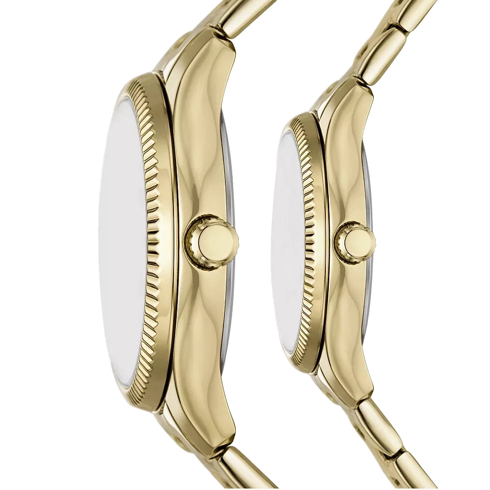 Fossil Rye Men’s Gold Stainless Steel Couple Set Watches