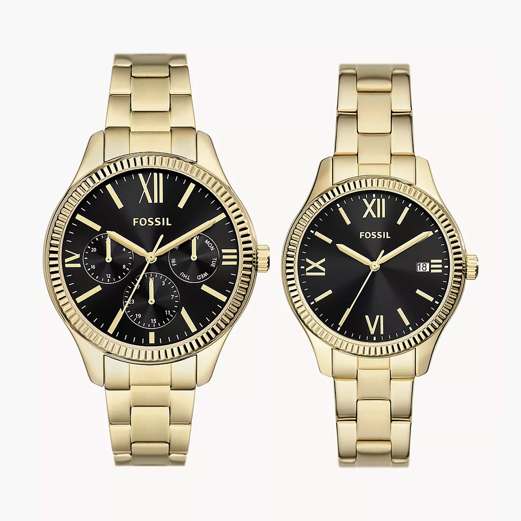 / Fossil Rye Men’s Gold Stainless Steel Couple Set Watches