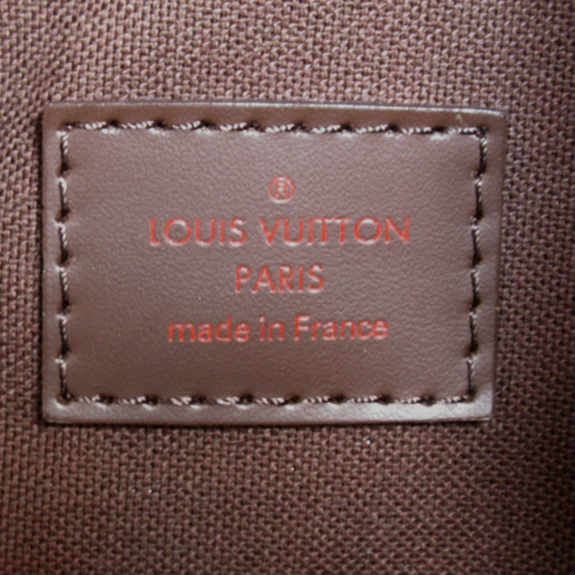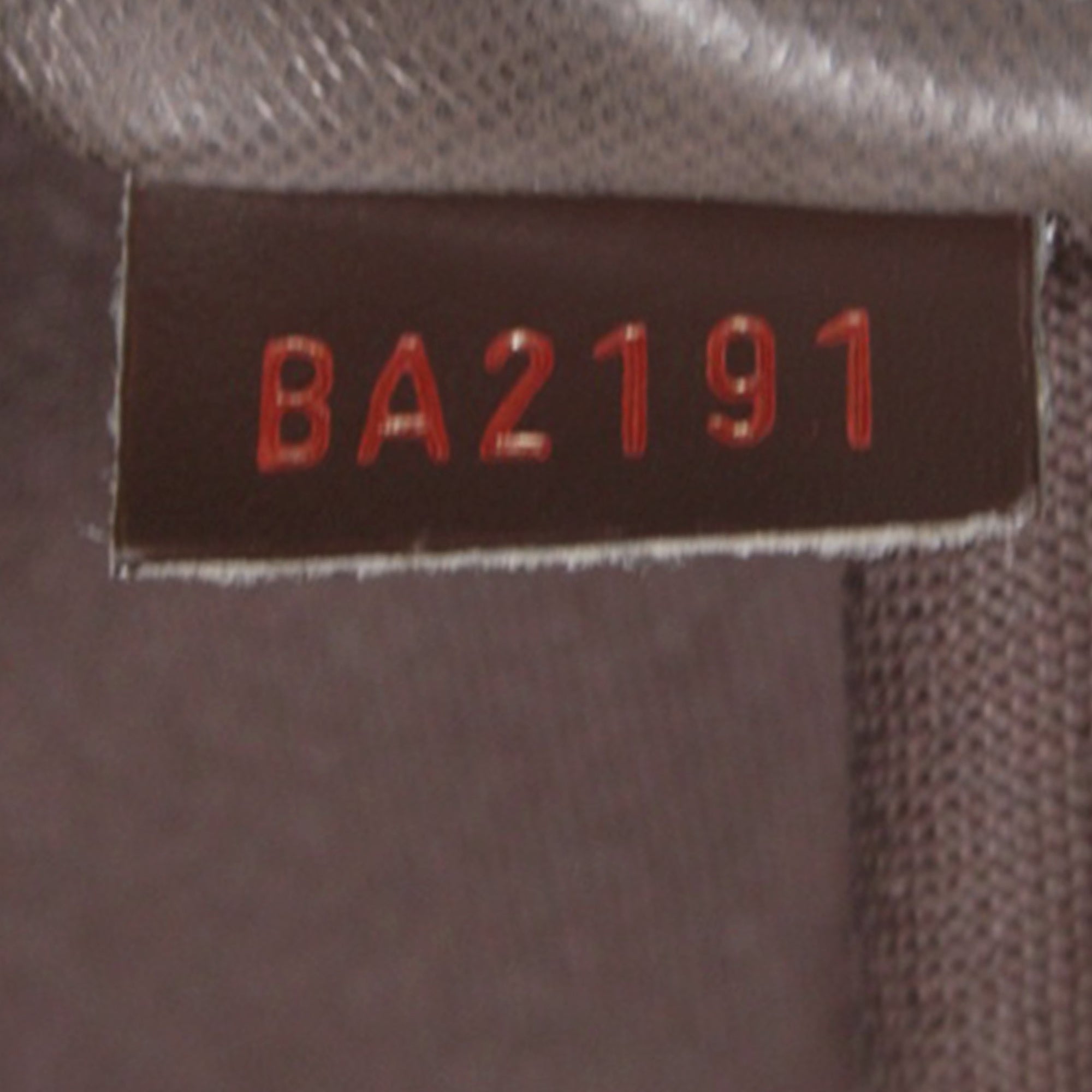 Product Details: Brown LV Damier Ebene Eole 60 Travel Bag. The Eole 60 features a damier canvas body with leather trim, rolled leather handles, an exterior zip pocket, an internal retractable handle mechanism, a frame, rear wheels, and two opposite flaps that close together with a belt and buckle. 11″ L x 22.8″ W x 12.2″ D, 5.9″ drop. Serial number BA2191.