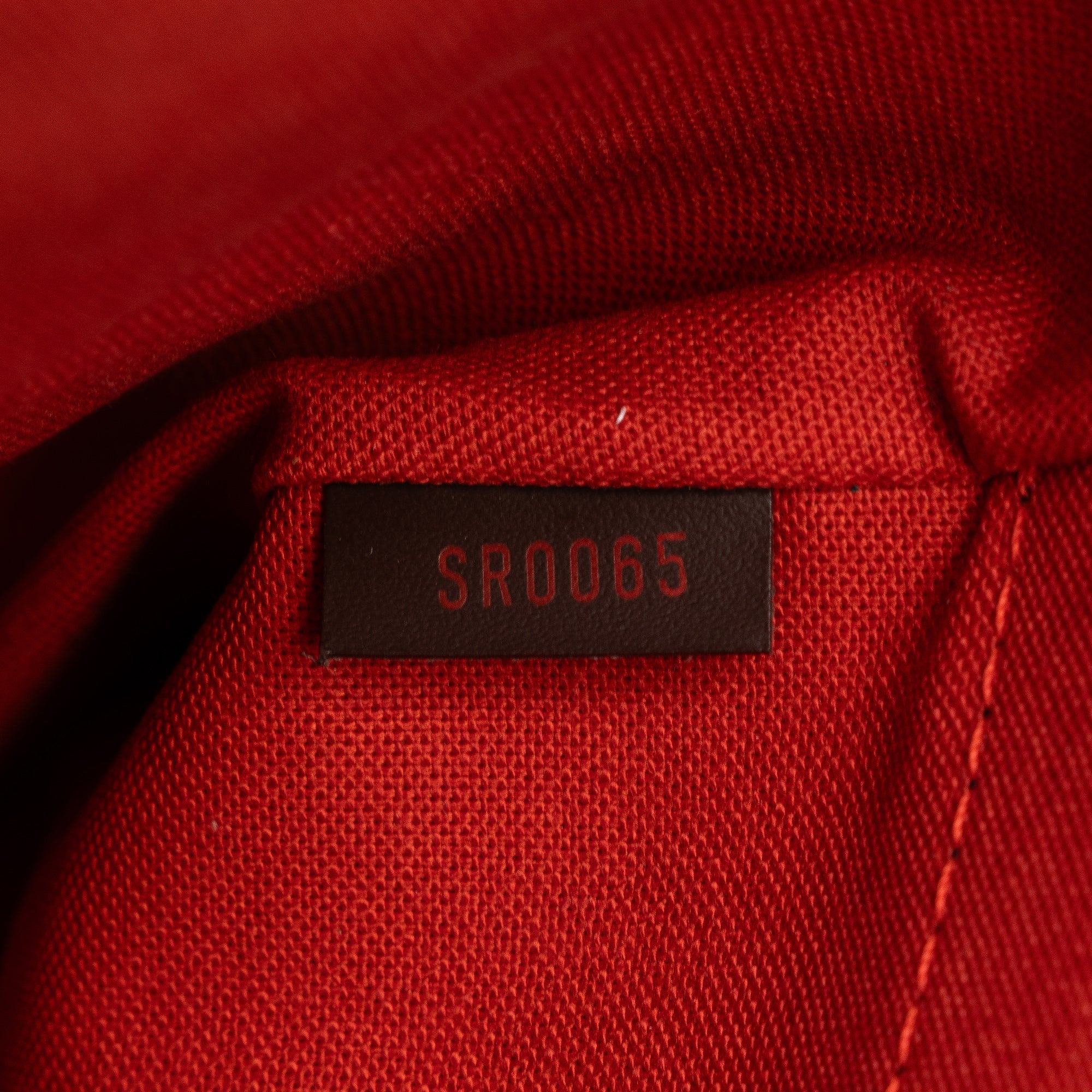 Product Details: Brown LV Damier Ebene Naviglio Crossbody Bag. The Naviglio features a damier ebene canvas body, an adjustable flat shoulder strap, a top flap with snap closure, a top zip closure, and an interior slip pocket. 9.4″ L x 11″ W x 5.5″ D. Serial number SR0065.