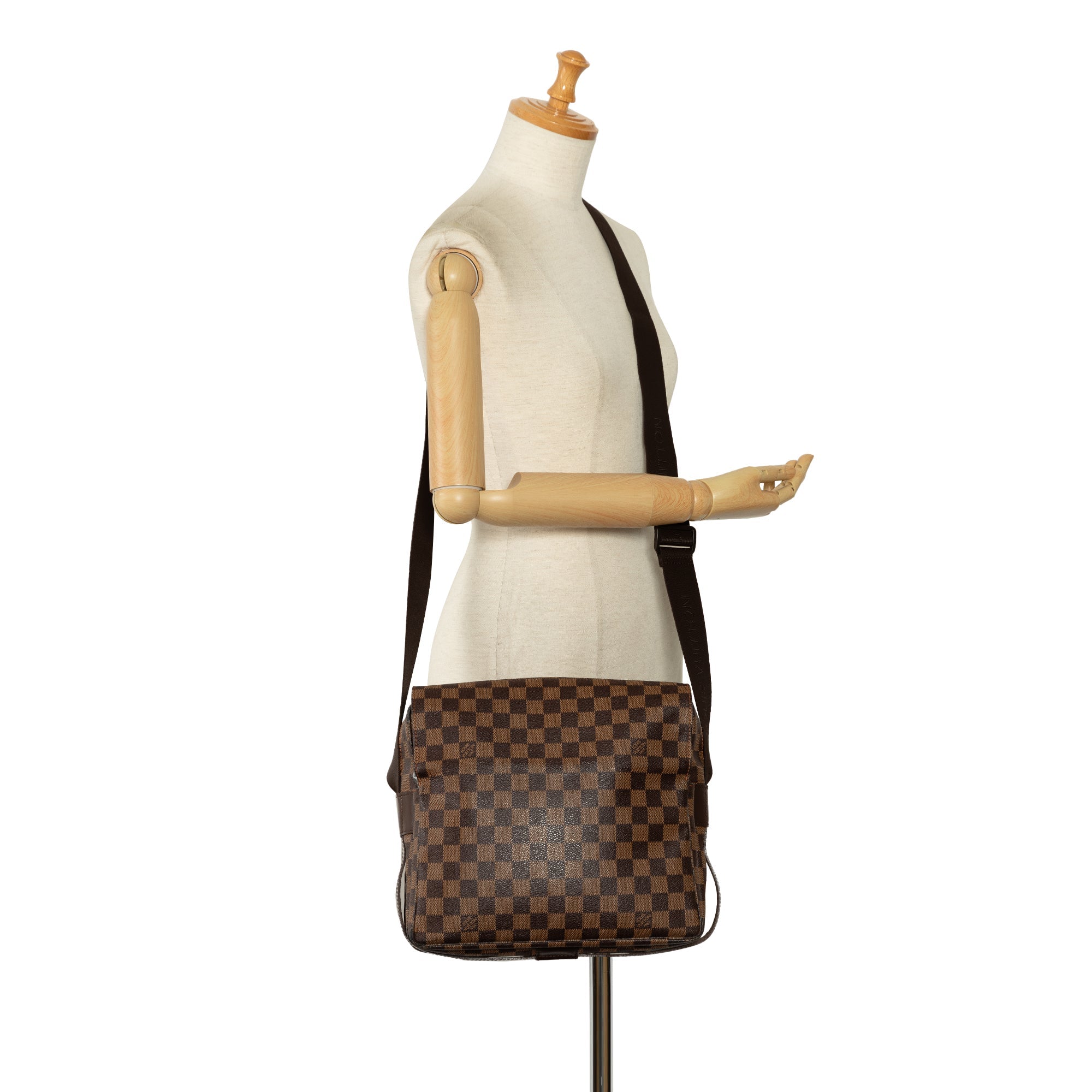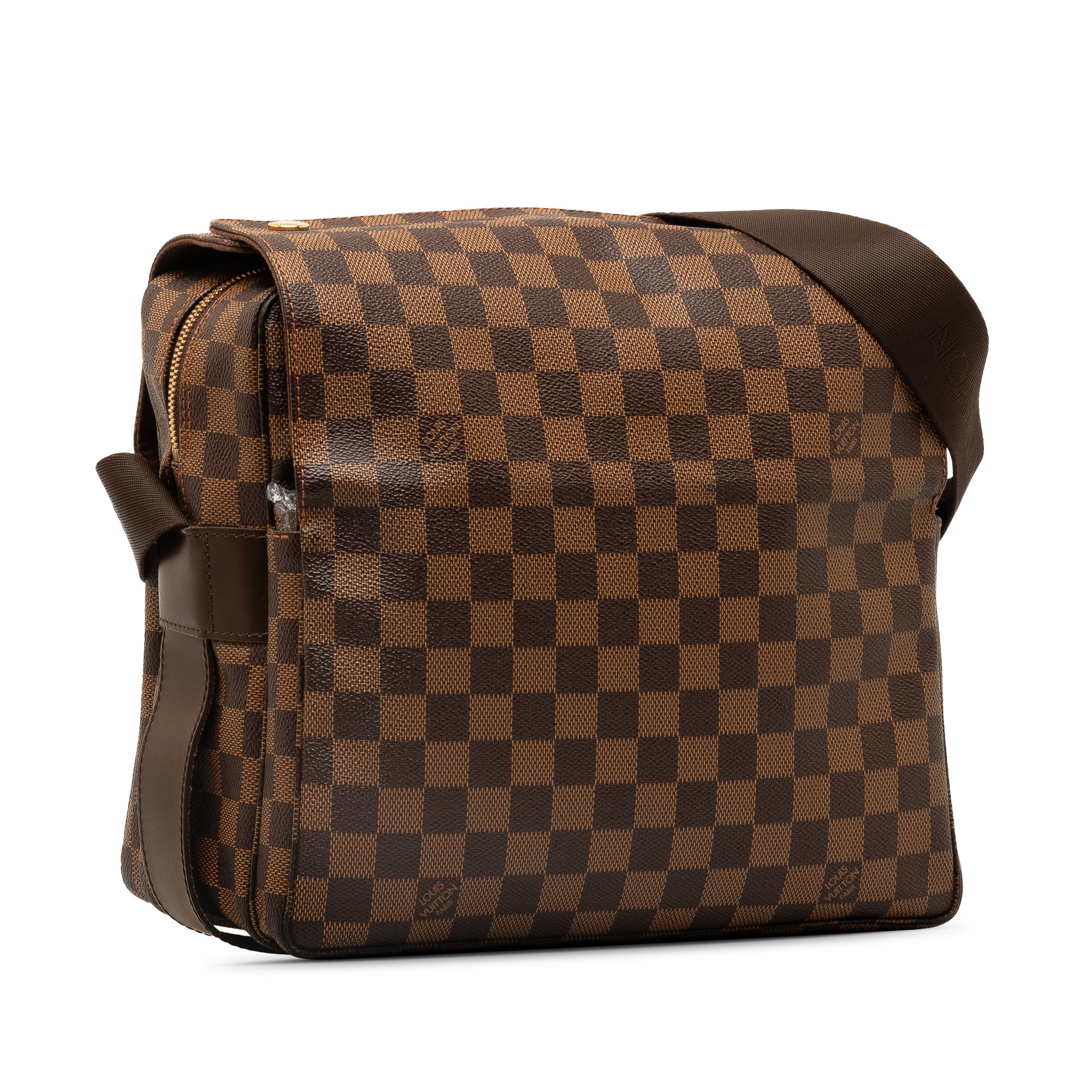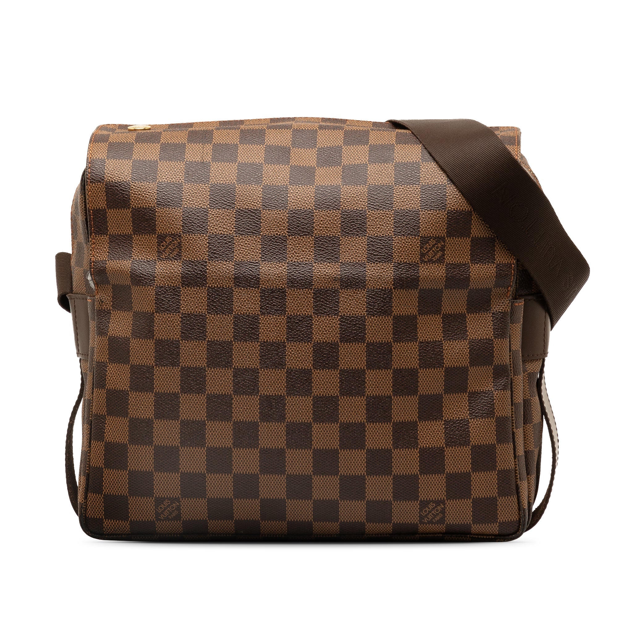 Product Details: Brown LV Damier Ebene Naviglio Crossbody Bag. The Naviglio features a damier ebene canvas body, flat strap, top flap with snap closure, top zip closure, and an interior slip pocket. 9.4″ L x 11″ W x 5.5″ D. Serial number TH0026.