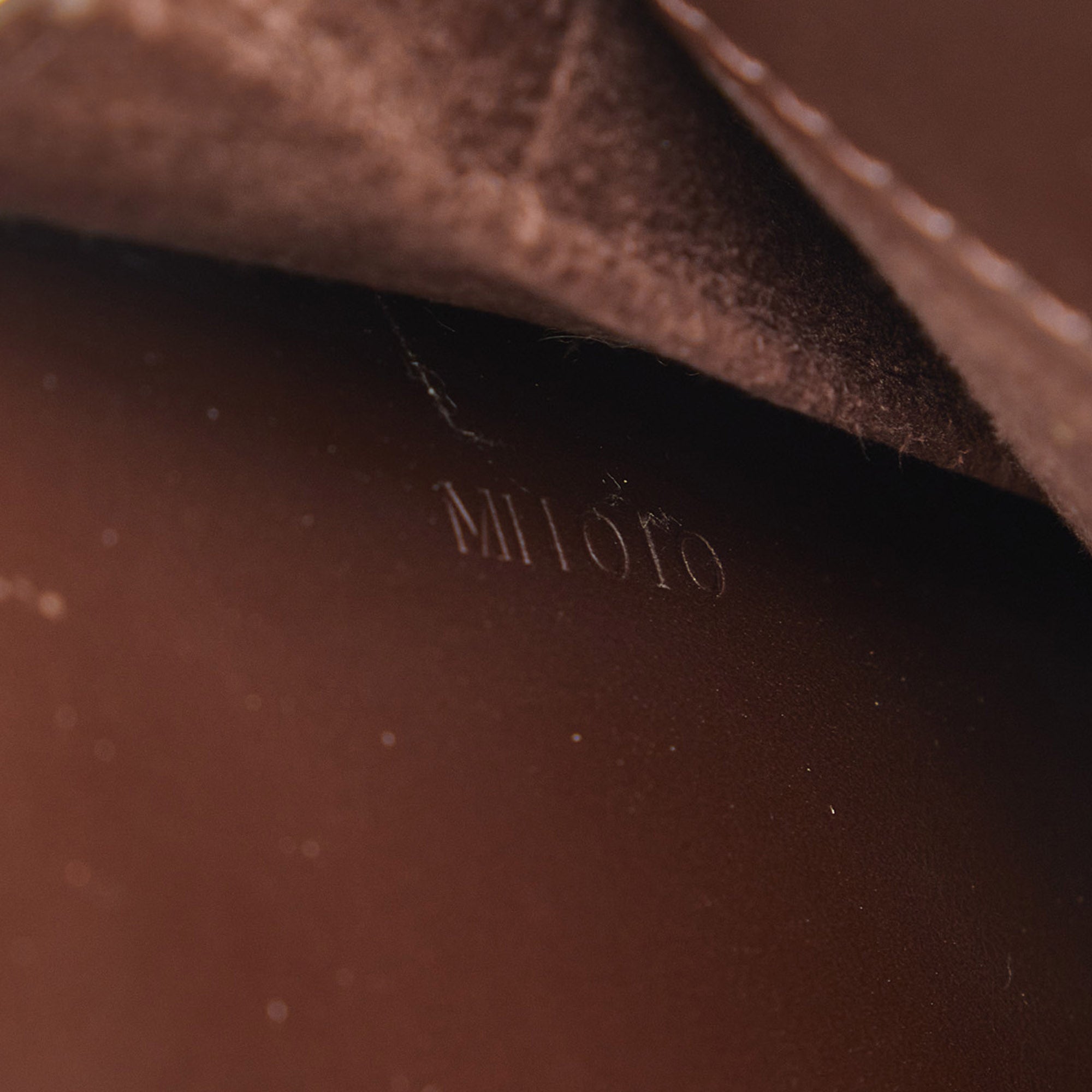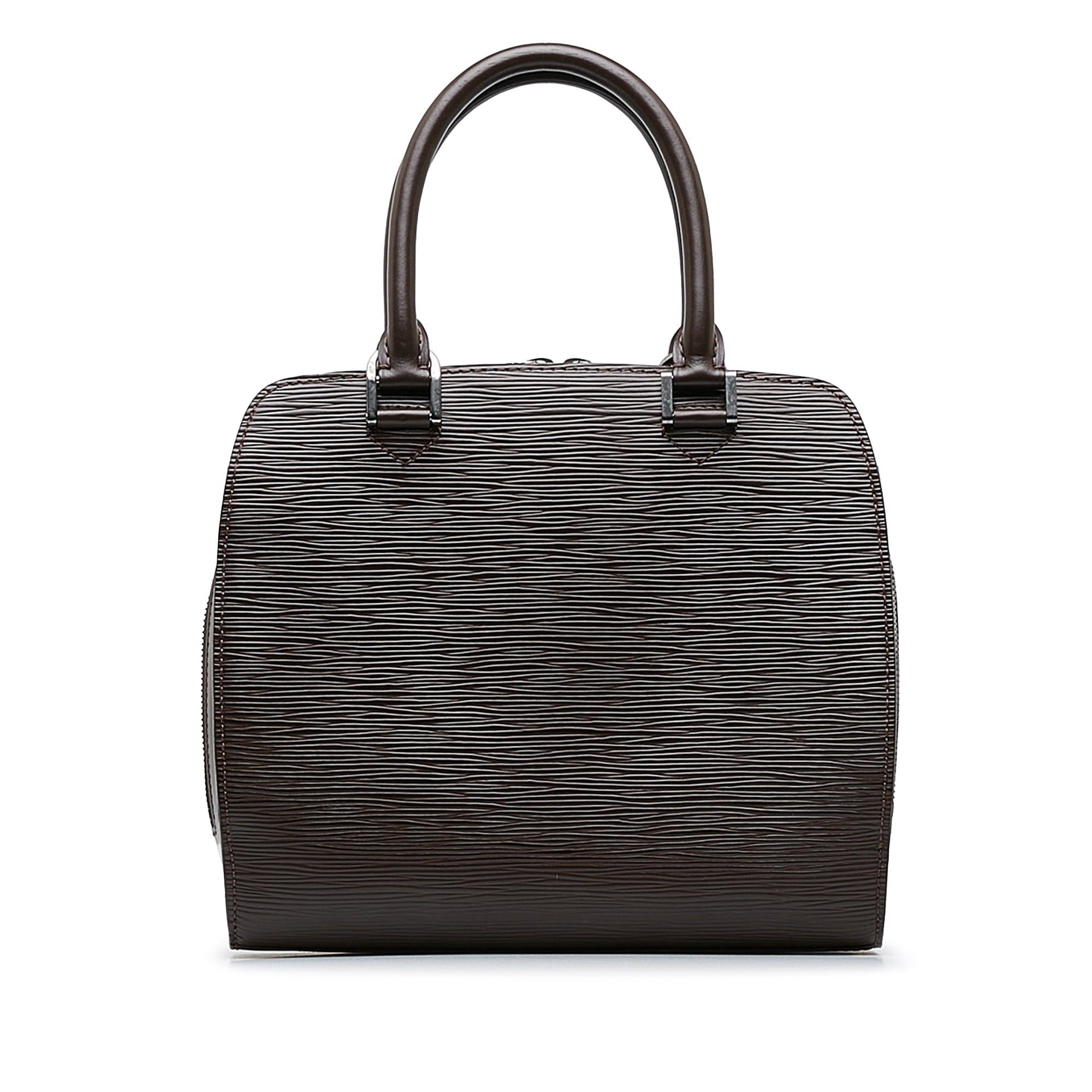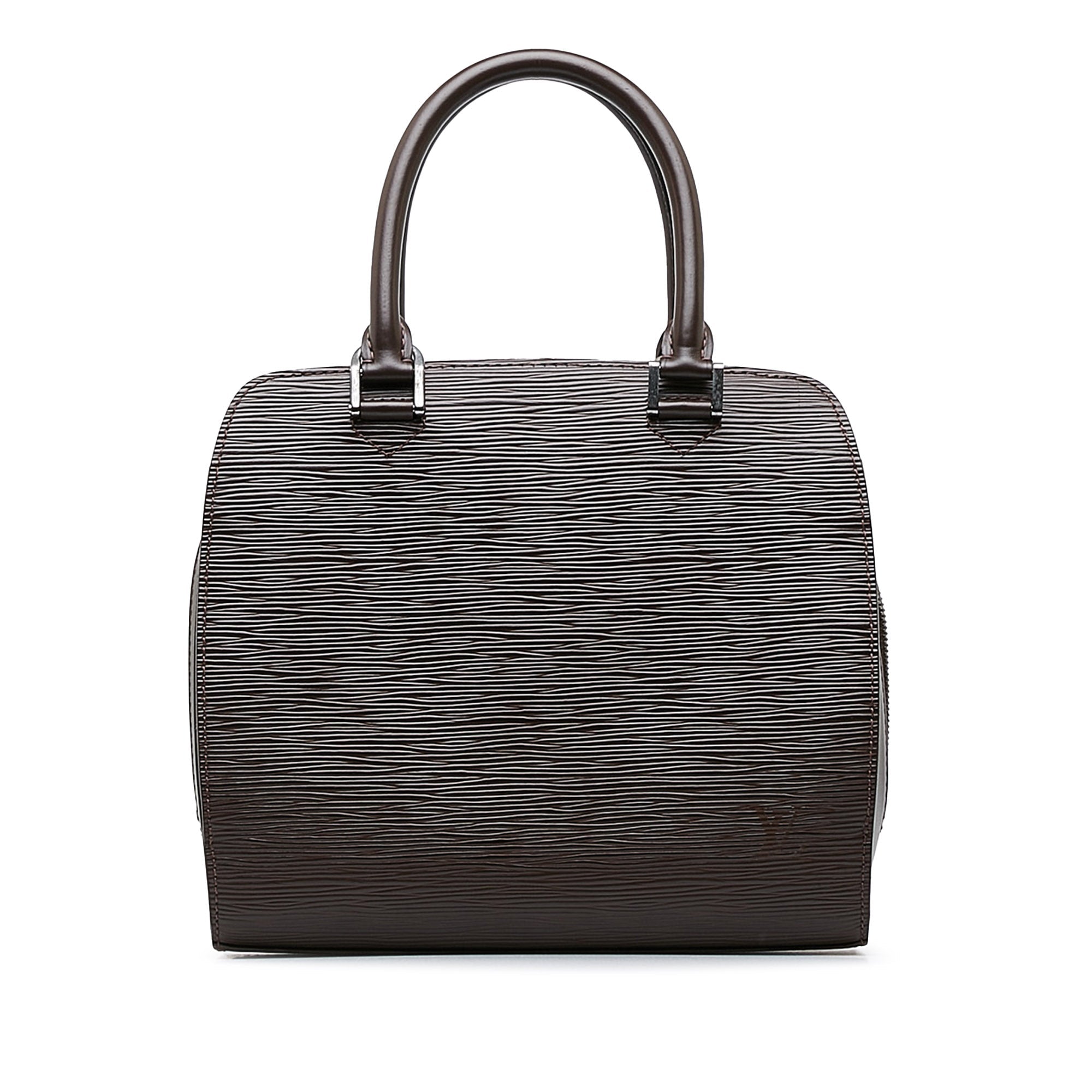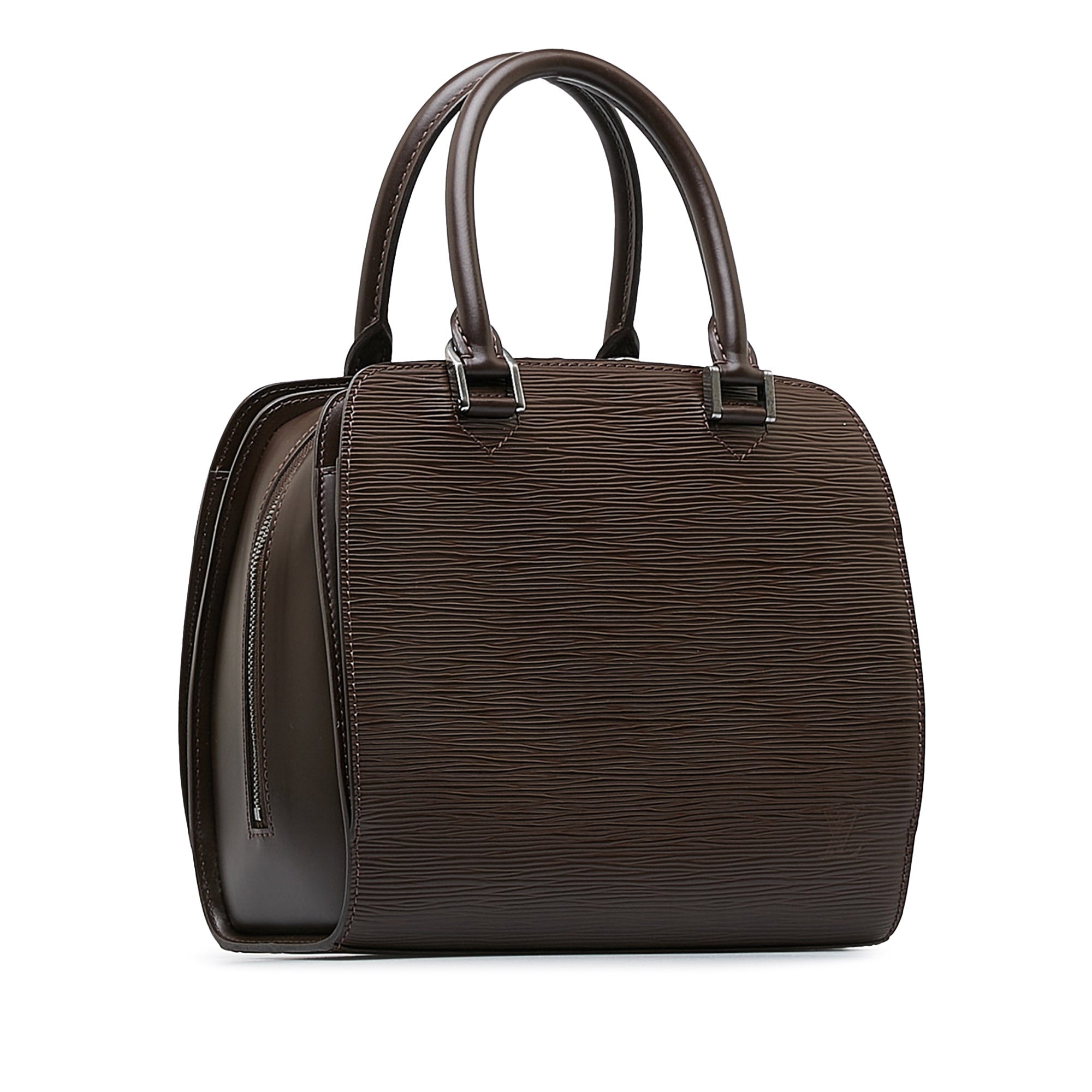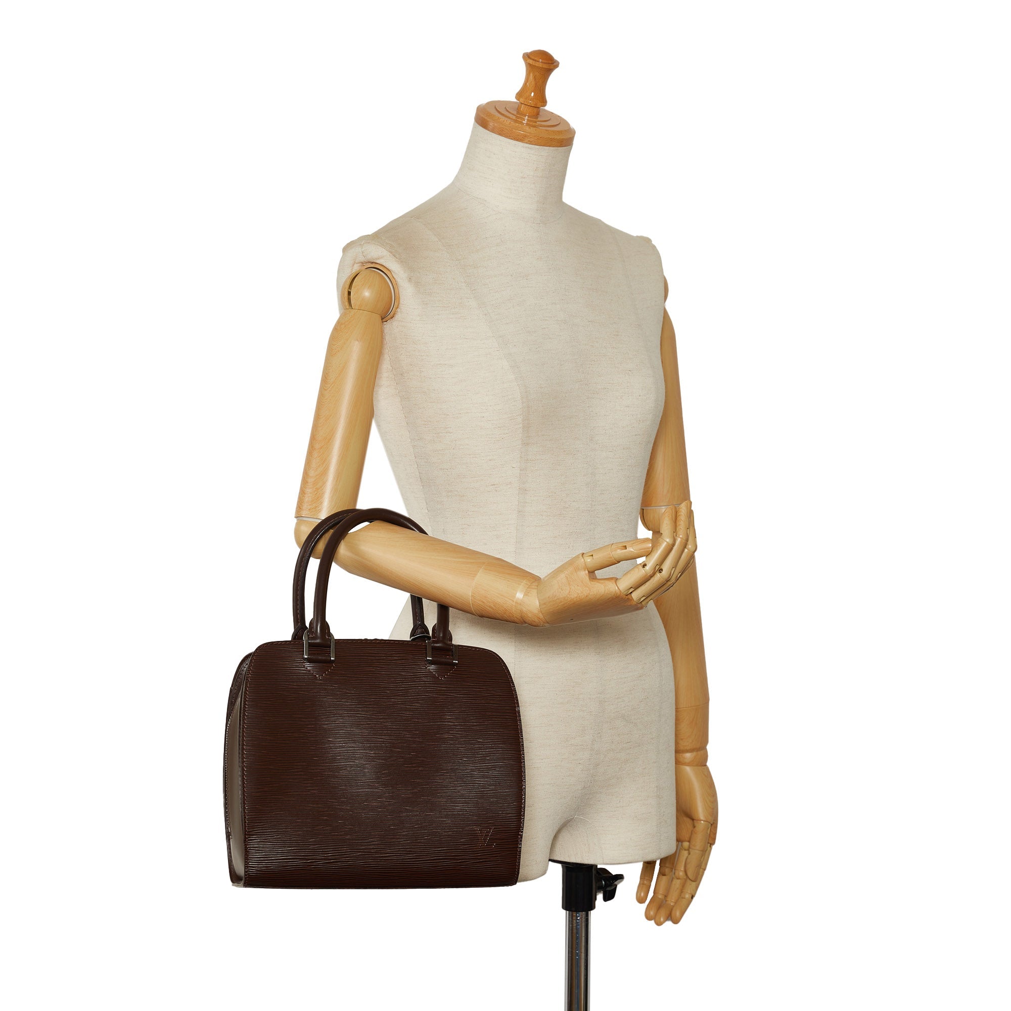 Product Details: Brown LV Epi Pont Neuf Handbag. The Pont Neuf features an epi leather body, rolled leather handles, a 2-way top zip closure, and an interior slip pocket. 8.3″ L x 9.6″ W x 3.3″ D, 4.3″ drop. Serial number MI1010.