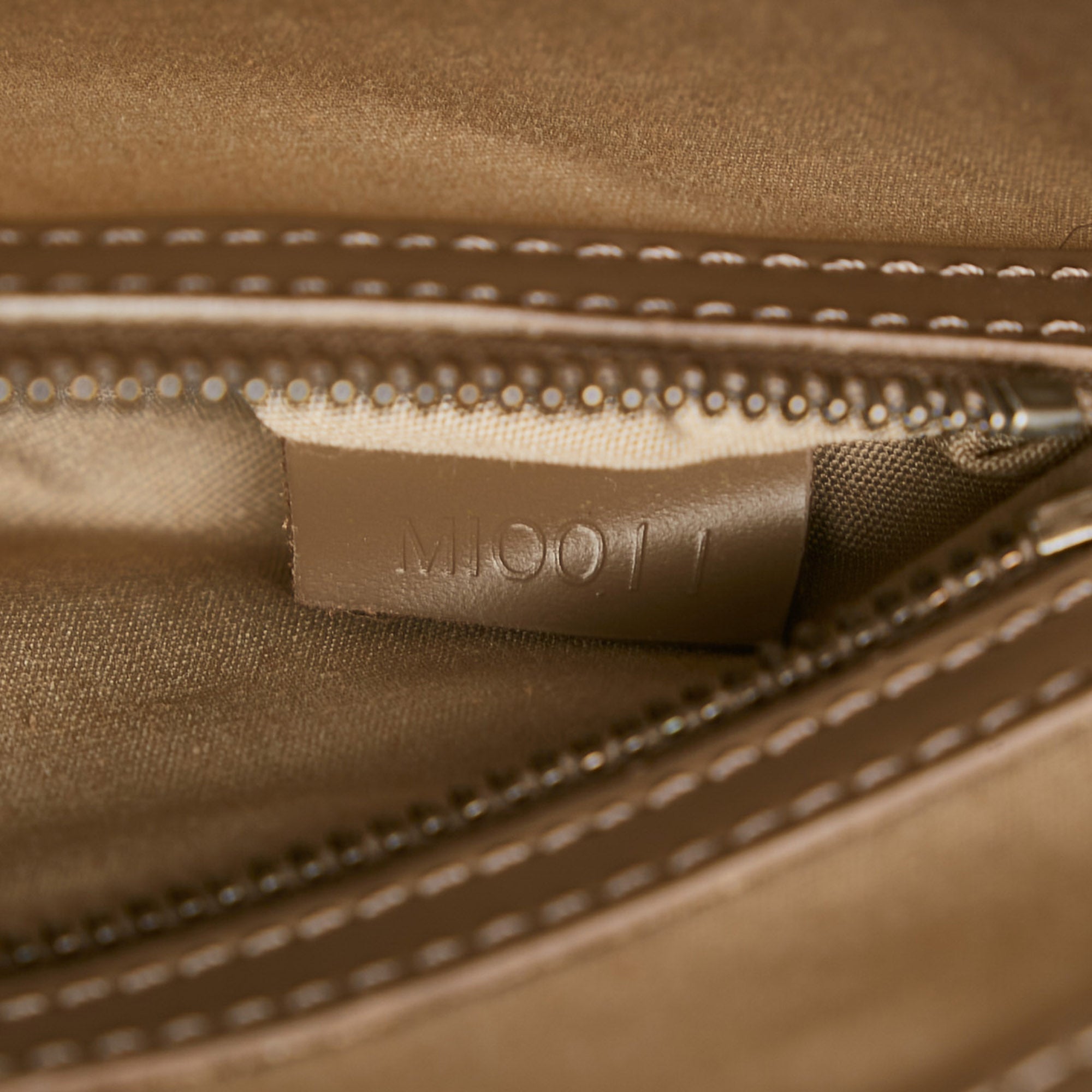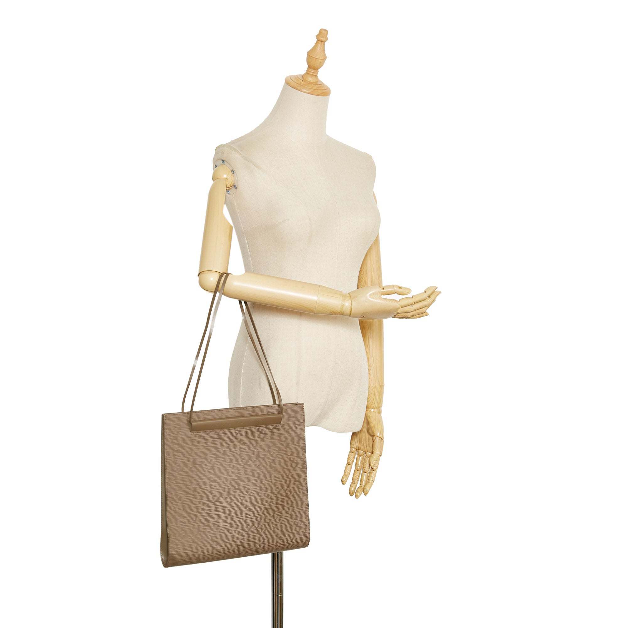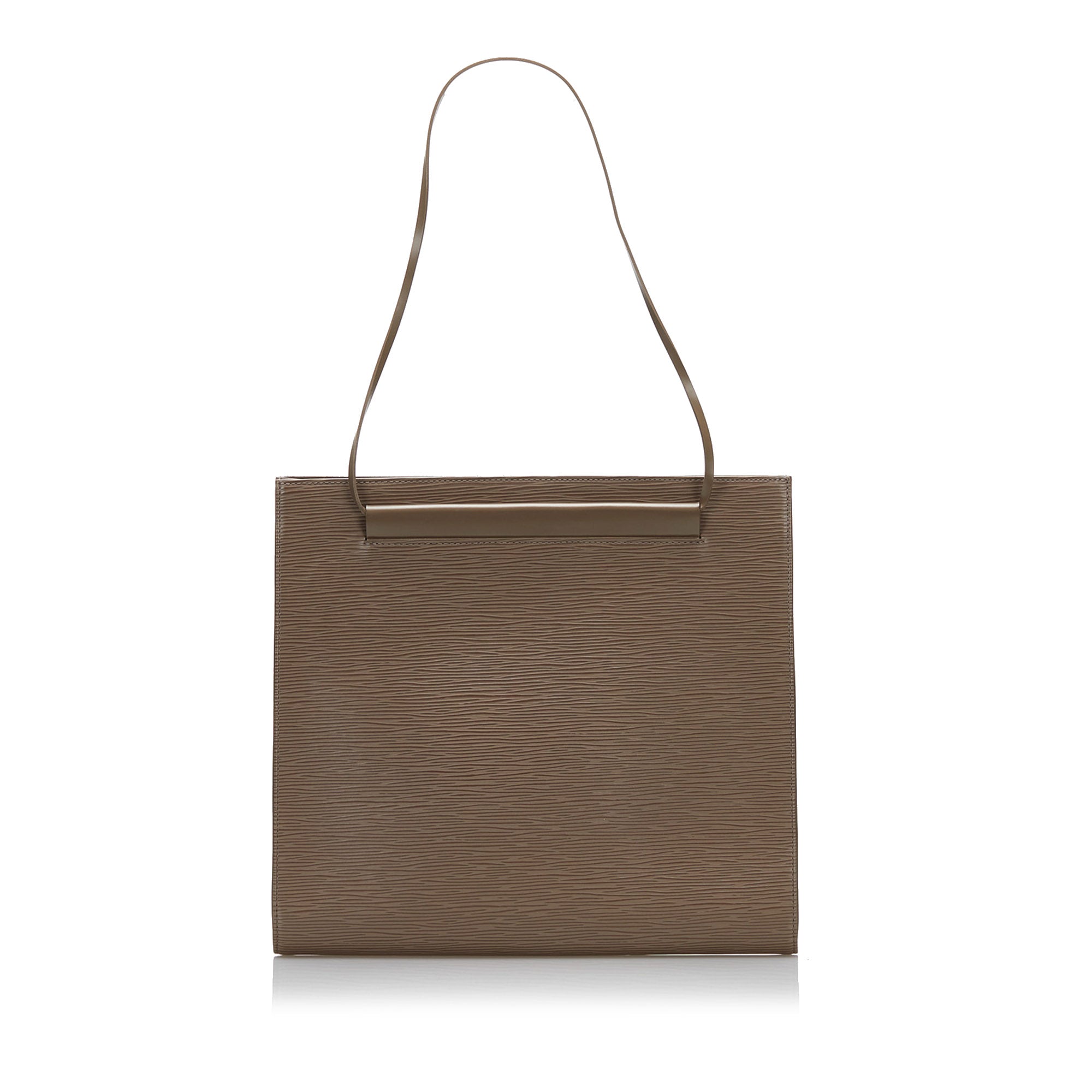 Product Details: Brown LV Epi Saint Tropez Tote Bag. The Saint Tropez features an epi leather body, flat leather straps, an open top with magnetic snap closure, and an interior zip pocket. 10.6″ L x 11.6″ W x 0.4″ D, 9.4″ drop. Serial number MI0011.