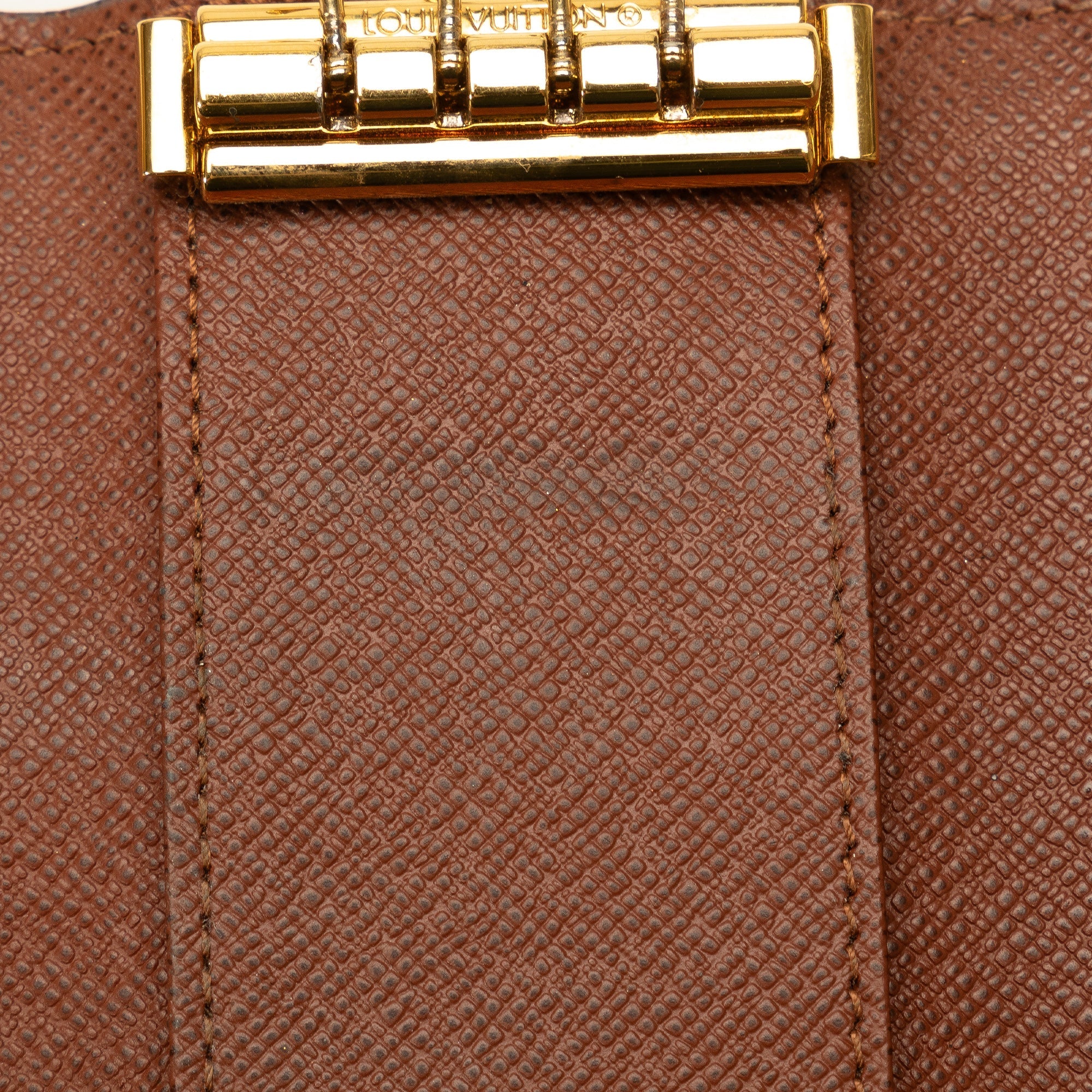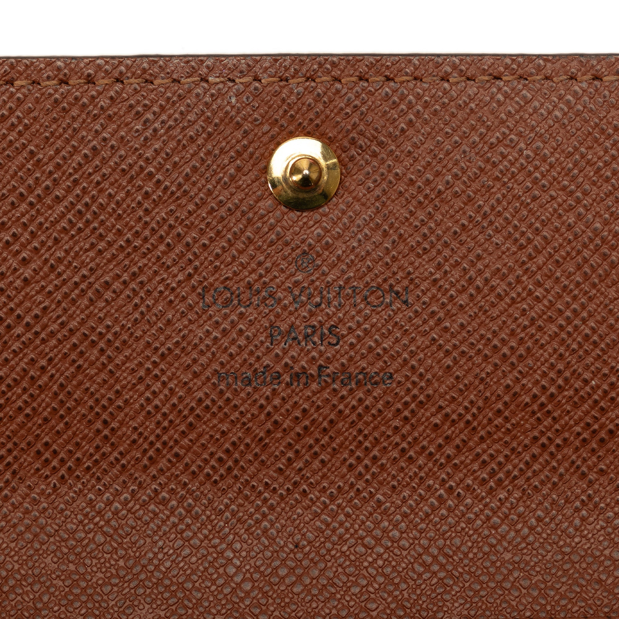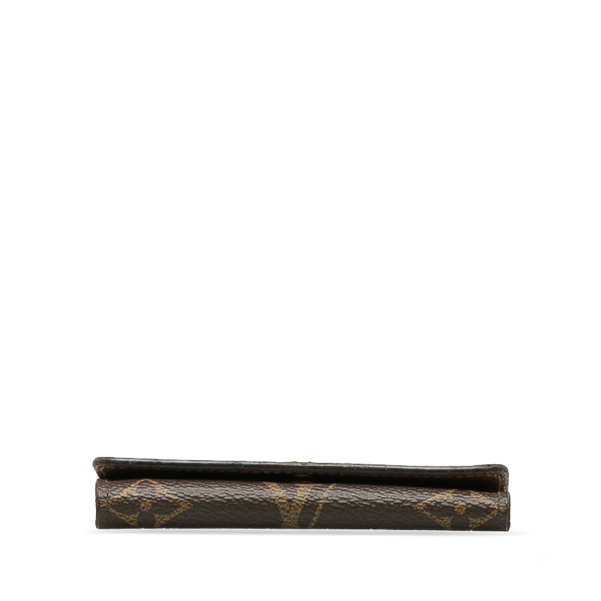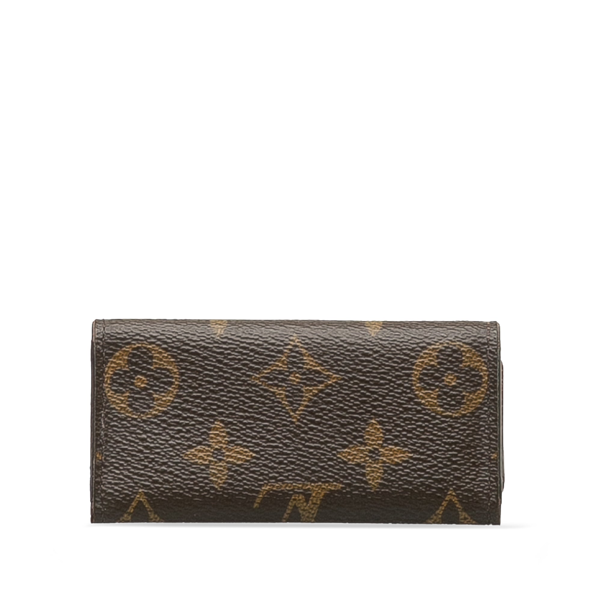 Product Details: Brown LV Monogram 4 Key Holder. This key holder features a monogram canvas body, a snap button closure, and 4 key rings. 2.1″ L x 4.1″ W x 0.6″ D. Serial number CT2290.