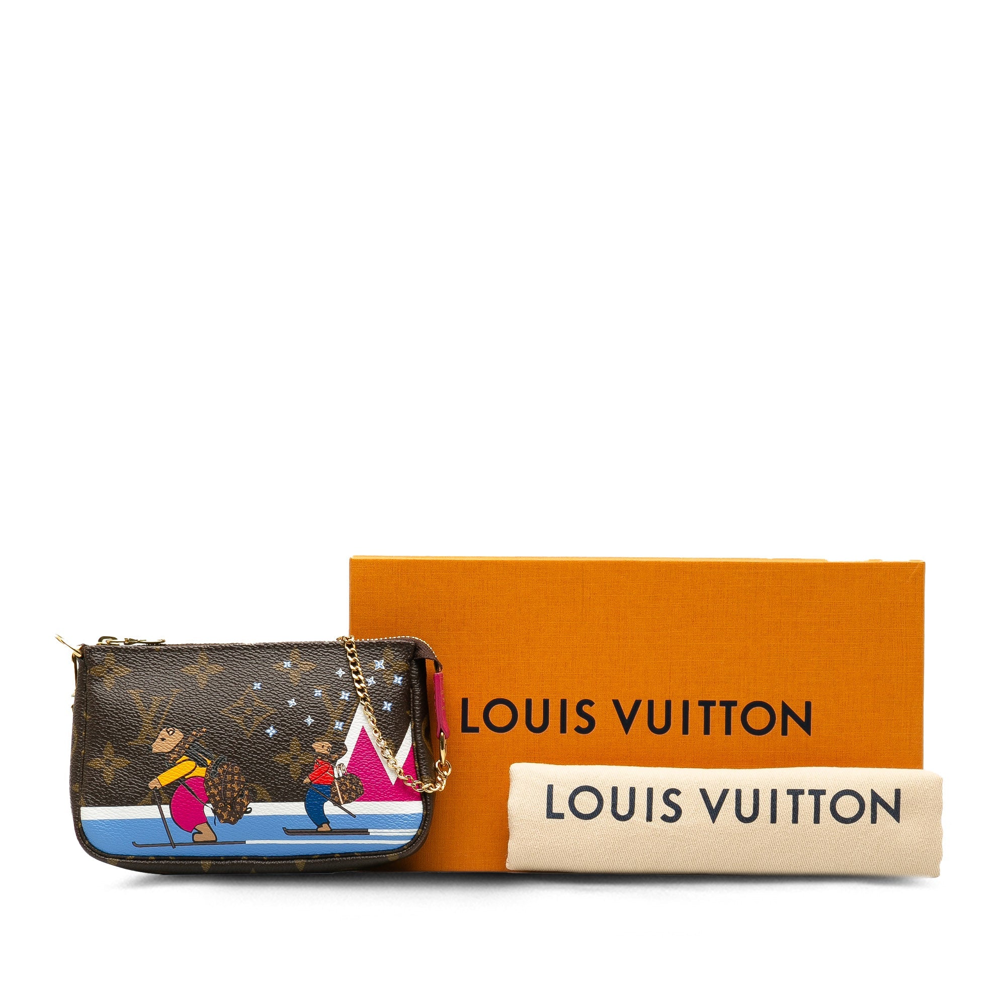 Please note this is a item that may display NEWconsistent with the listed above and shown in photos. Designer Revival s this is an Brown LV Monogram Bears on Skis Christmas Animation Mini Pochette Accessories Shoulder Bag .