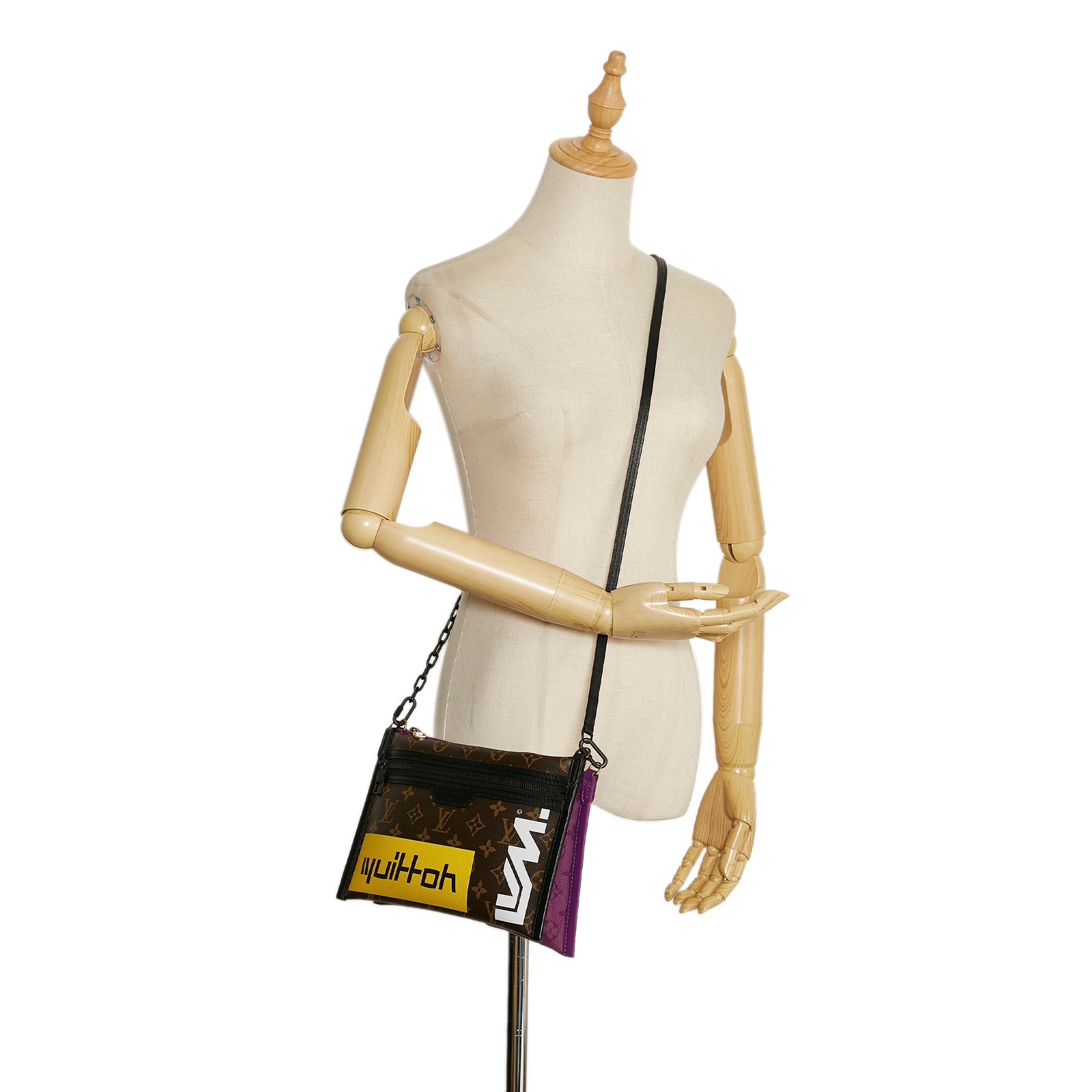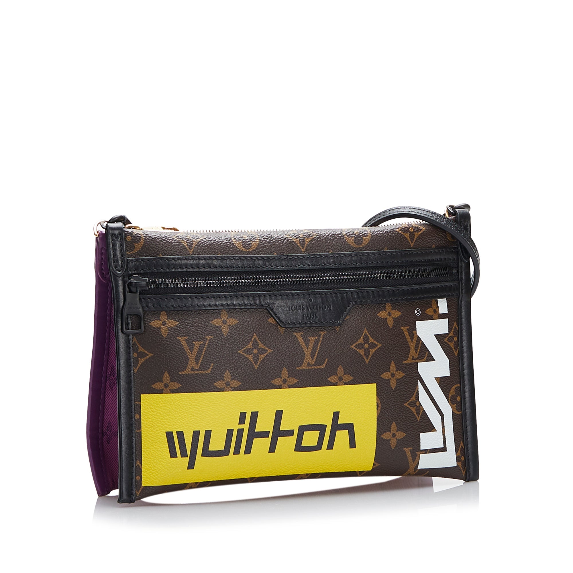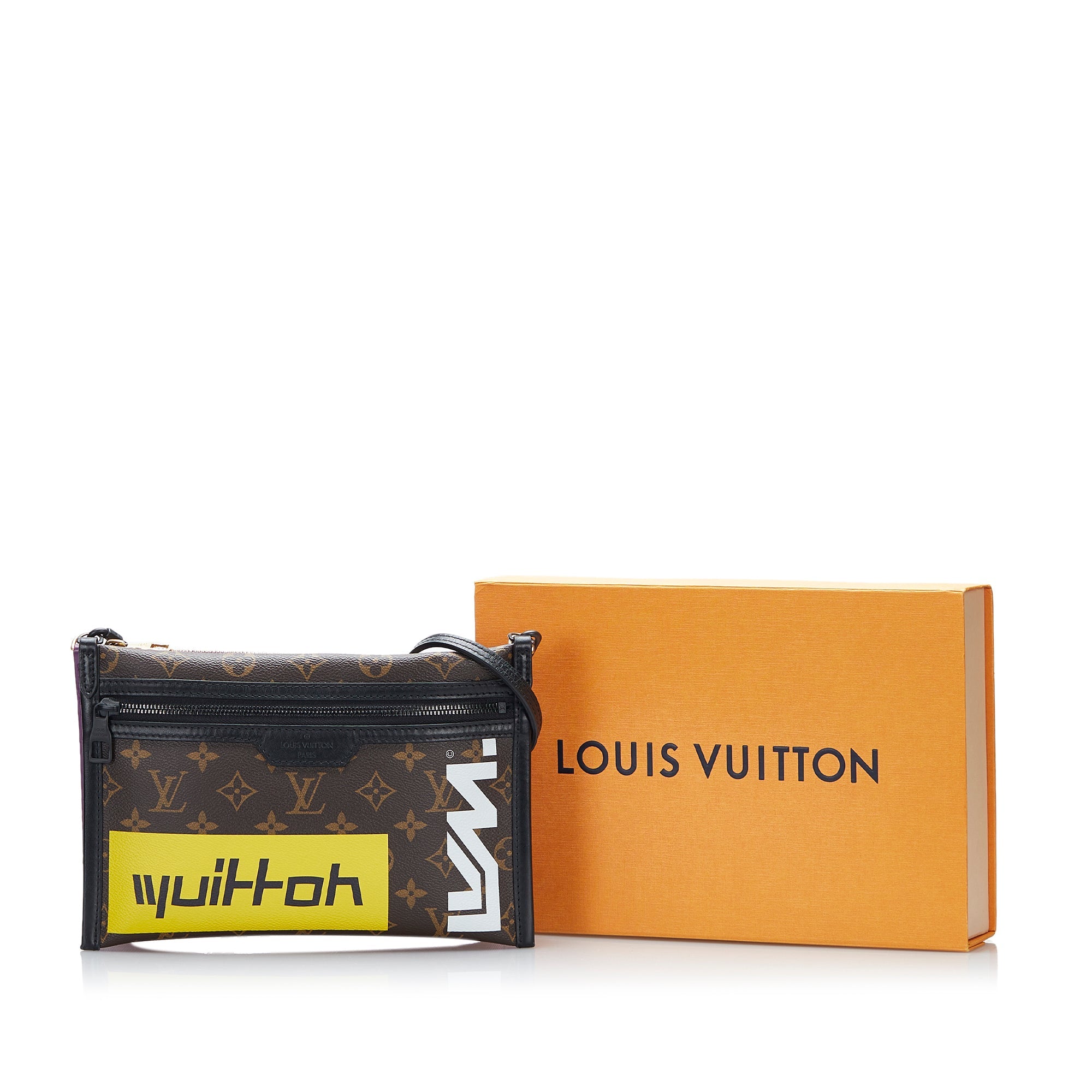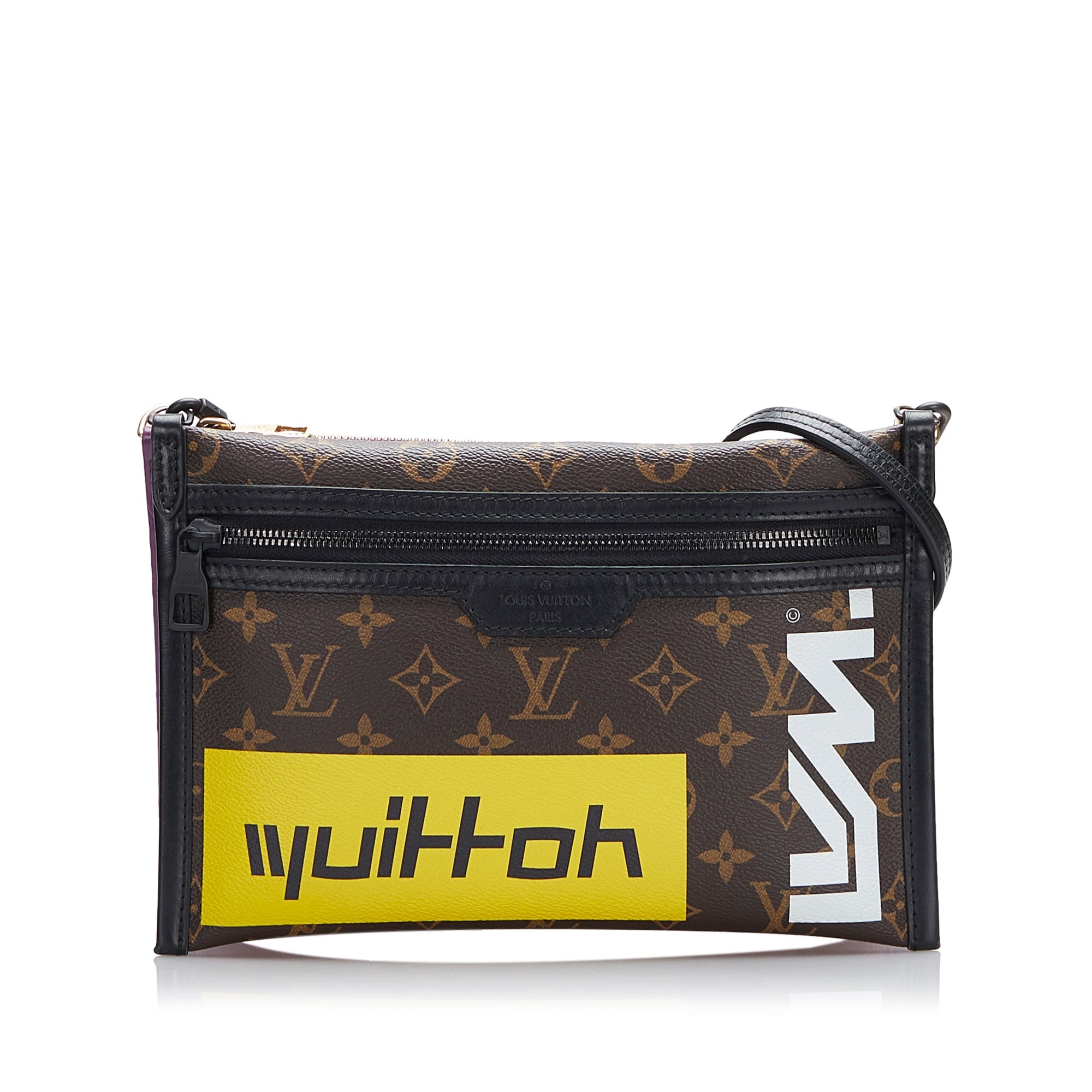 Product Details: Brown LV Monogram Double Flat Messenger . The Double Flat Messenger features a monogram canvas and leather body, an exterior front zip pocket, a flat leather strap, and double top zip closures. 7.1″ L x 10.2″ W x 0.8″ D. Serial number CA2109.