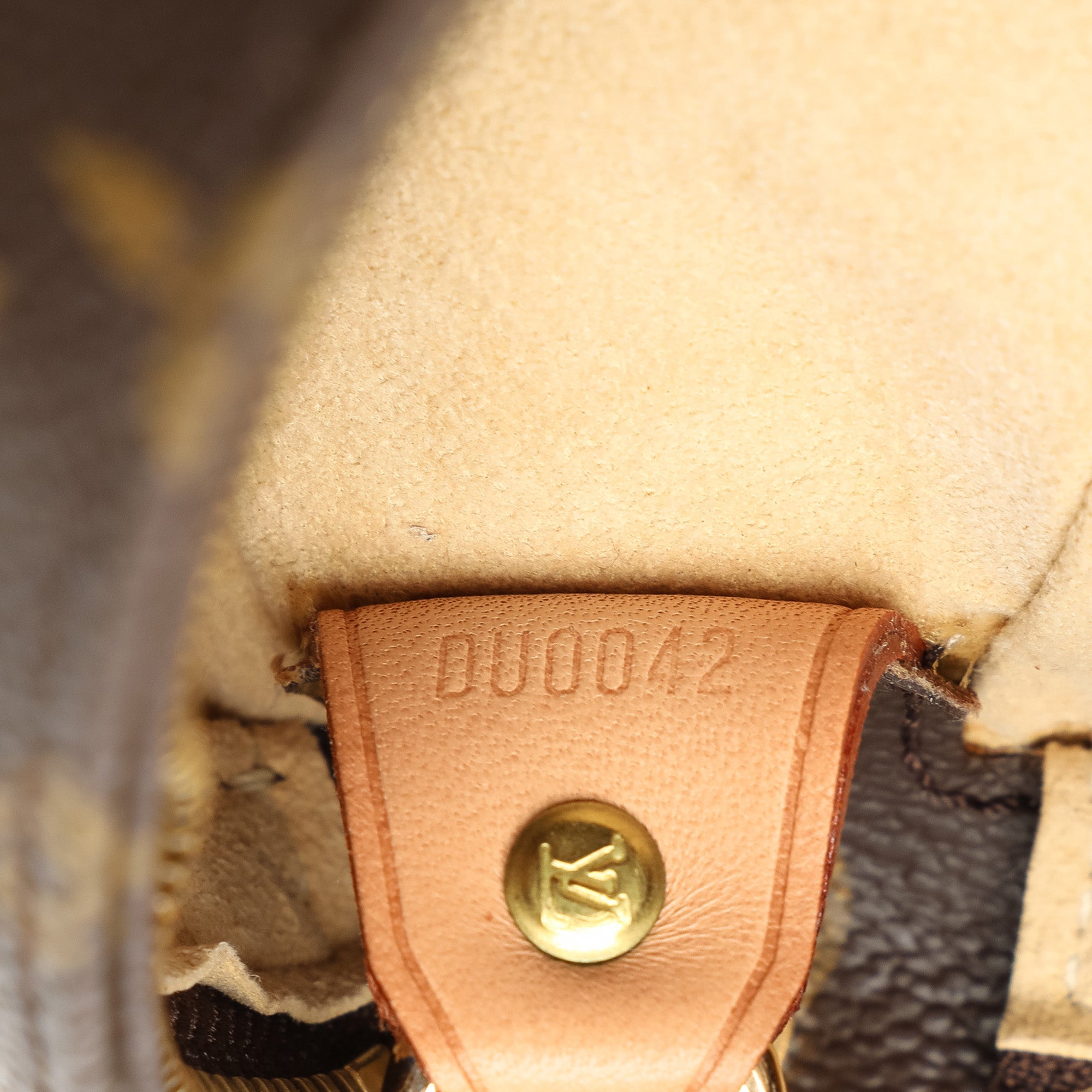 Product Details: Brown LV Monogram Looping GM Shoulder Bag. The Looping GM features a monogram canvas body, a rolled vachetta leather shoulder strap, a top zip closure, and interior zip and slip pockets. 12″ L x 11.2″ W x 3″ D. Serial number DU0042.