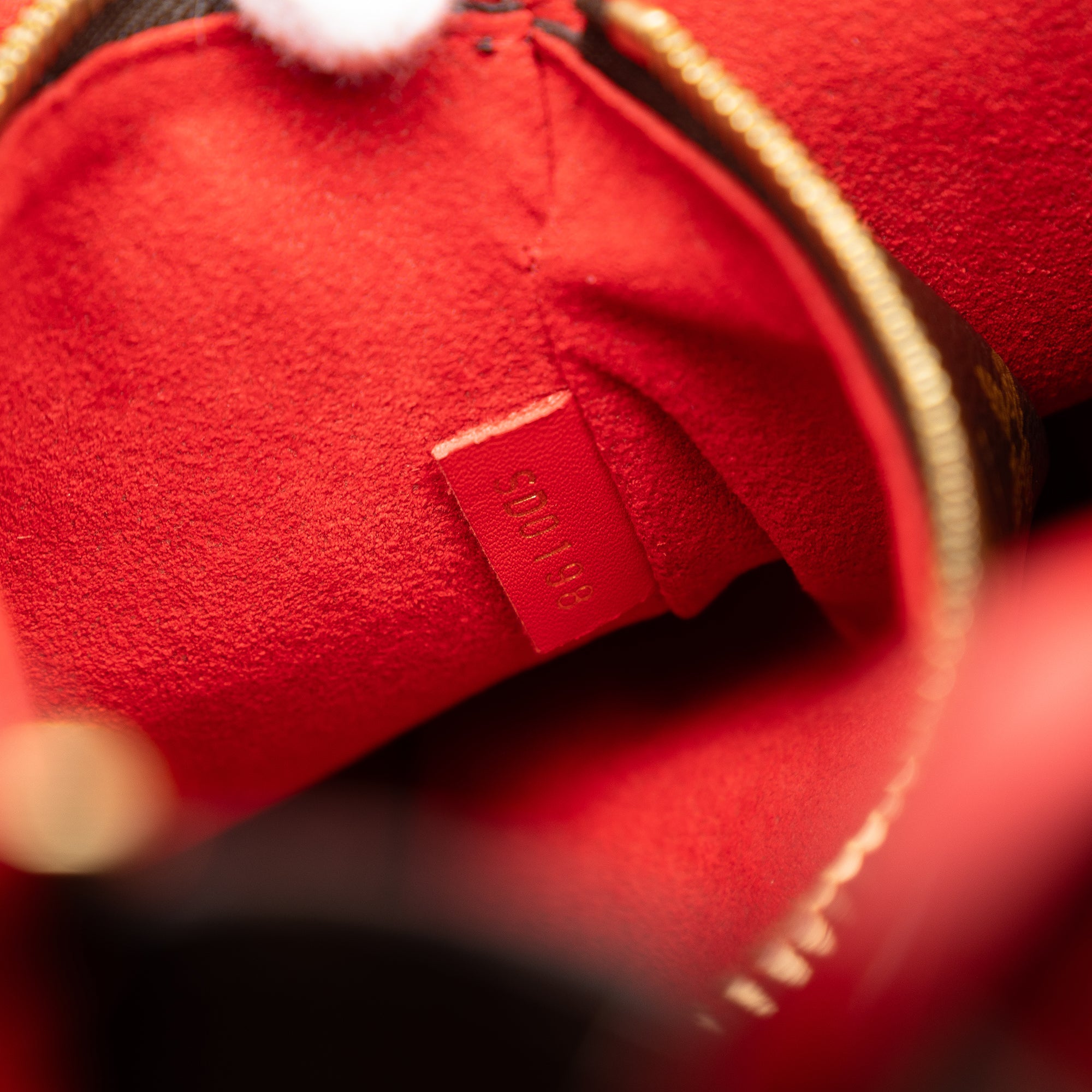 Product Details: Brown LV Monogram Neonoe MM Bucket Bag. The Neonoe features a monogram canvas body, a detachable flat leather strap, a drawstring closure, and an interior zip pocket. 10.2″ L x 10.2″ W x 6.7″ D. Serial number SD0198.