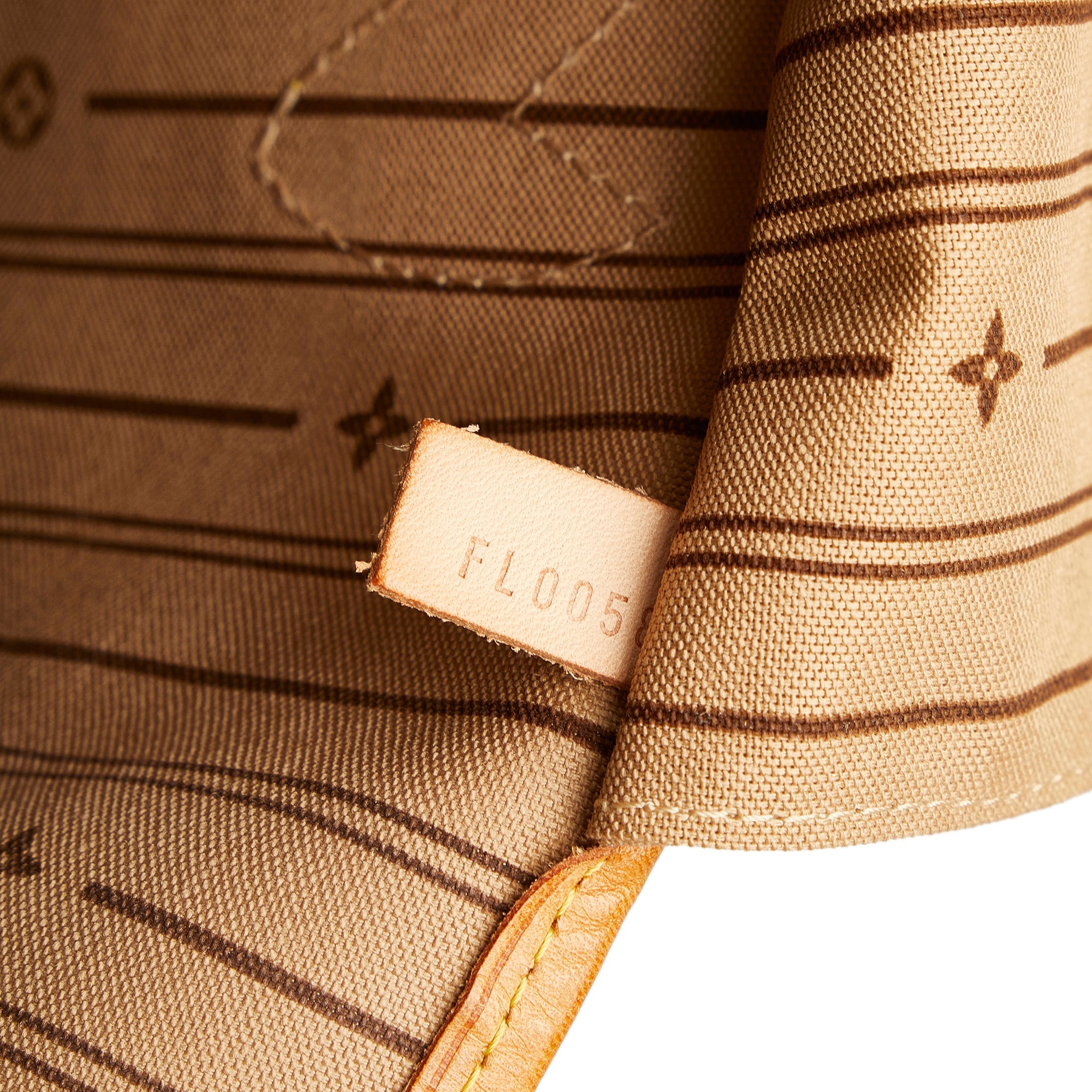 Product Details: Brown LV Monogram Neverfull GM Tote Bag. The Neverfull GM features a monogram canvas body, flat leather handles, a top lobster claw clasp closure, and an interior zip pocket. 11.8″ L x 17.7″ W x 7.9″ D, 8.7″ drop. Serial number FL0058.