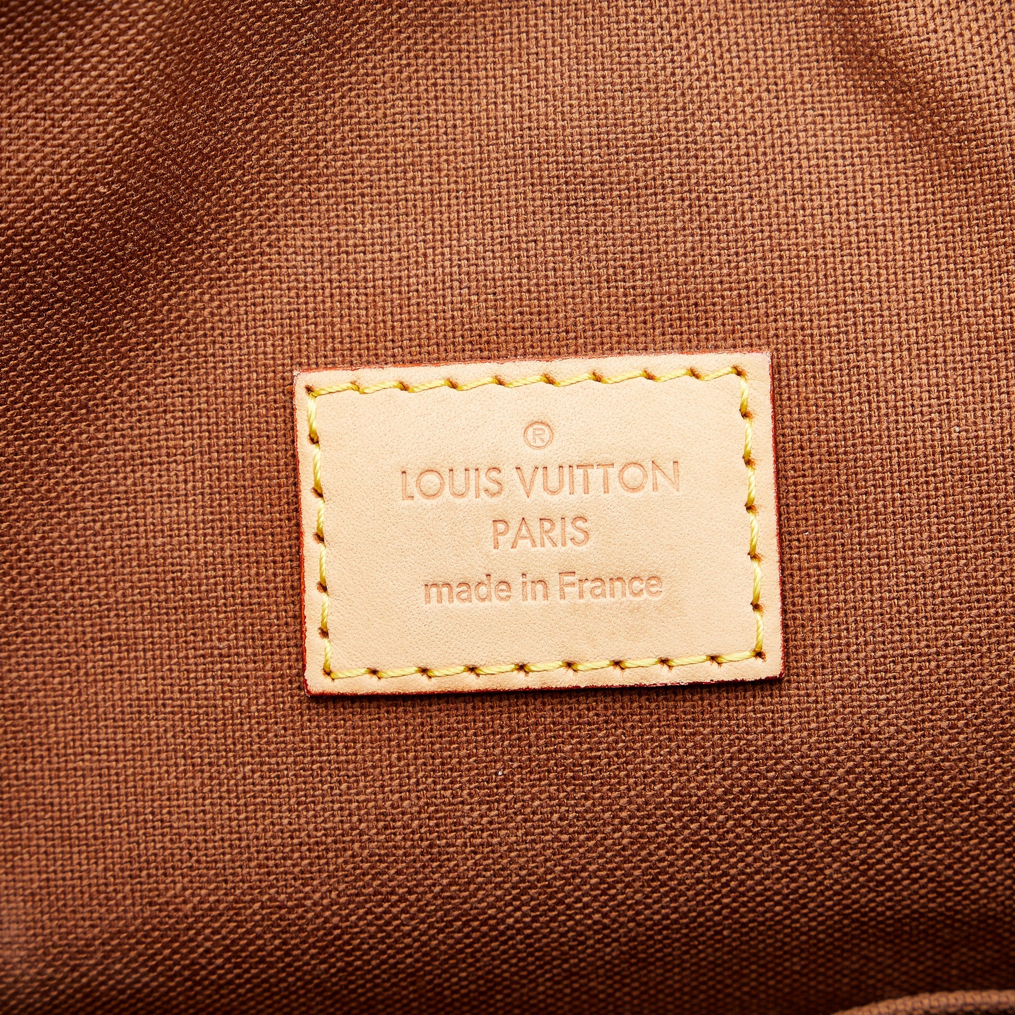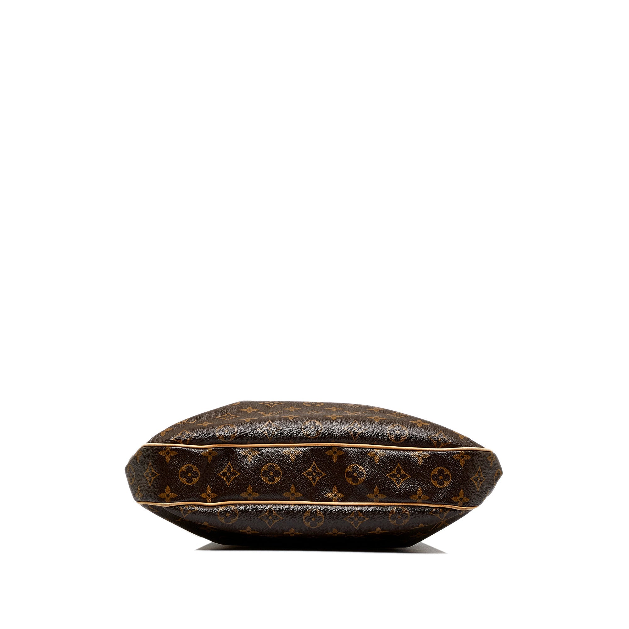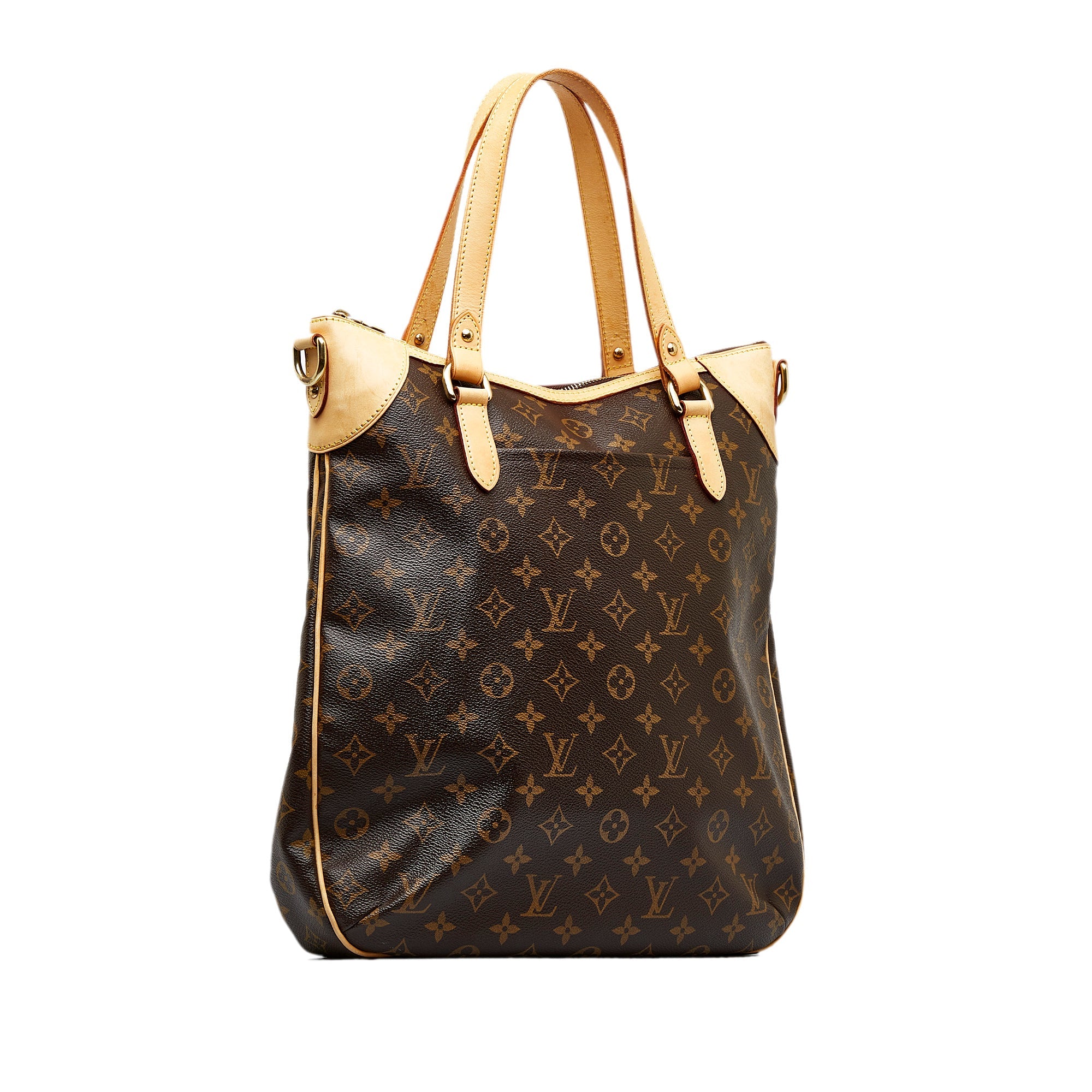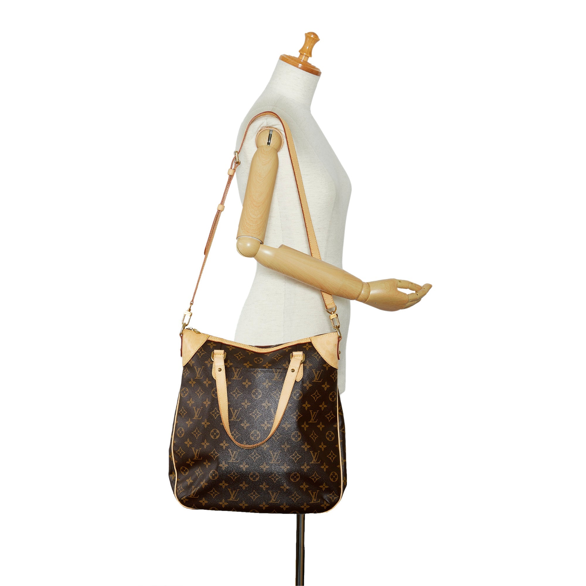 Product Details: Brown LV Monogram Odeon GM Satchel. The Odeon GM features a monogram canvas body with vachetta leather trim, flat leather straps, a detachable flat leather strap, a top zip closure, an exterior slip pocket, and interior slip pockets. 14.6″ L x 11″ W x 2″ D, 6.3″ drop. Serial number DU4098.
