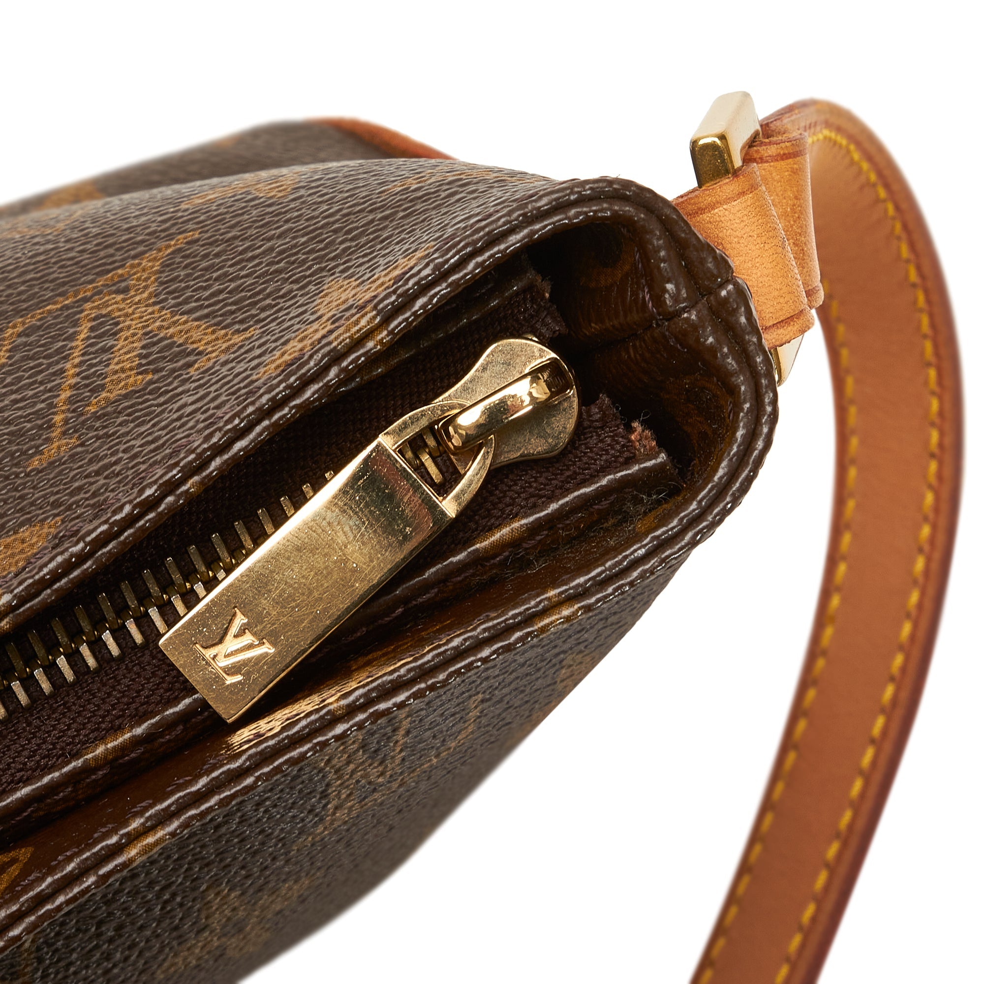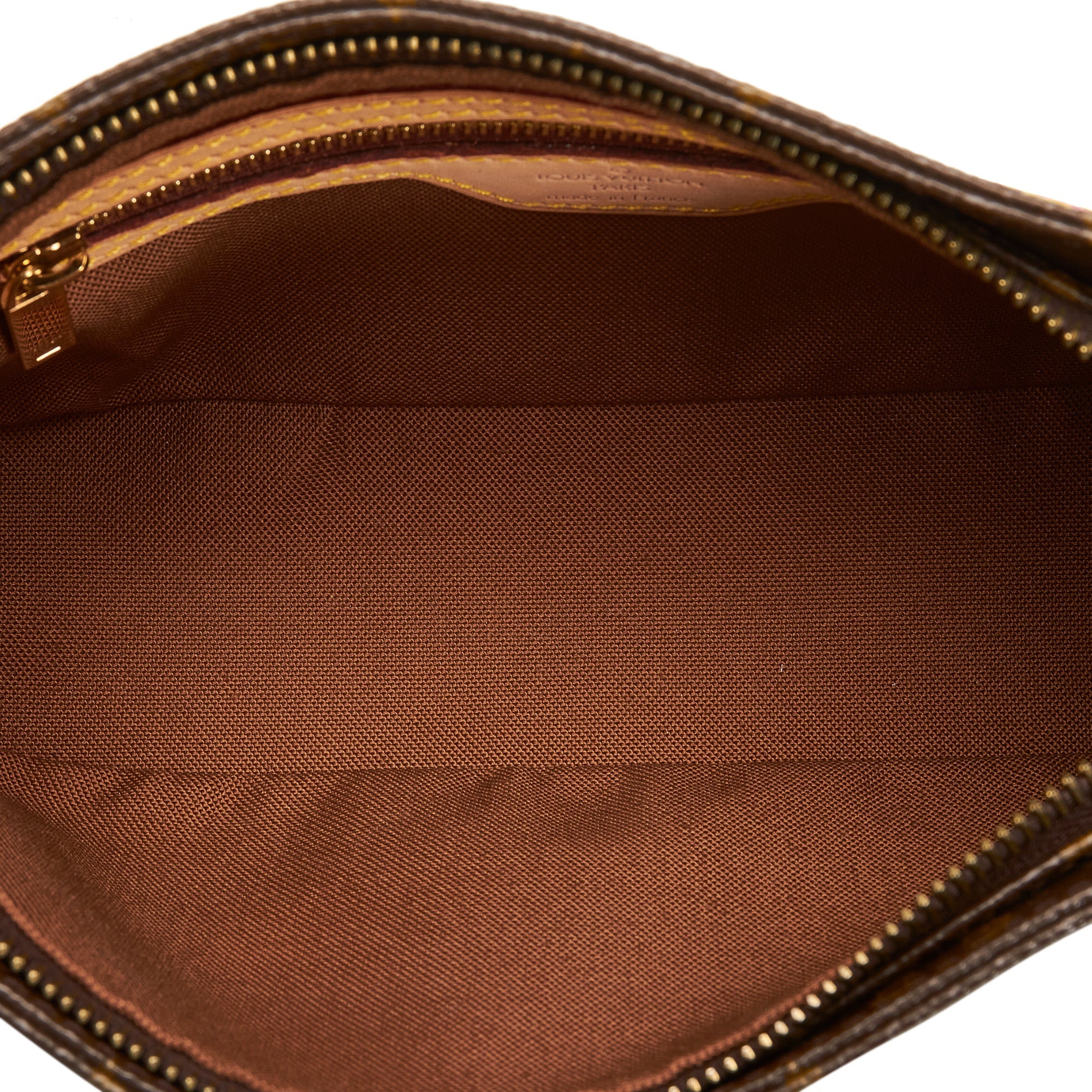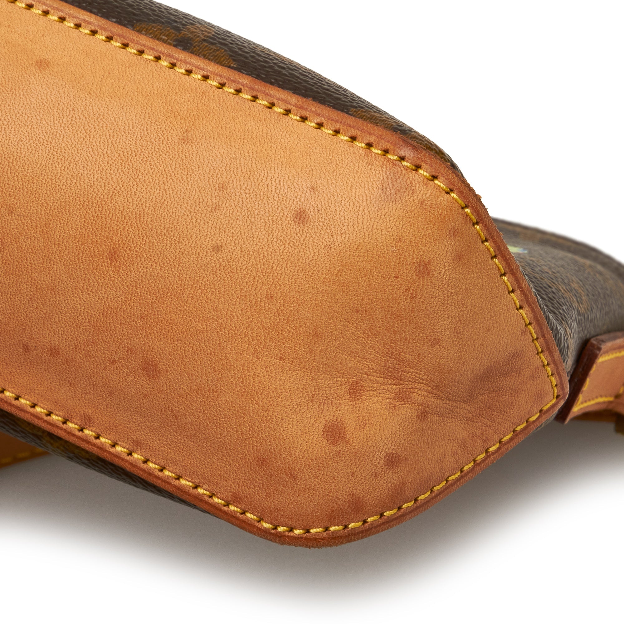 Product Details: Brown LV Monogram Panda Trotteur Takashi Murakami Crossbody Bag. The Trotteur features a monogram canvas body, a flat vachetta strap, a top zip closure, and an interior zip pocket. 5.9″ L x 2.6″ W x 9.8″ D. Serial number AR0094.