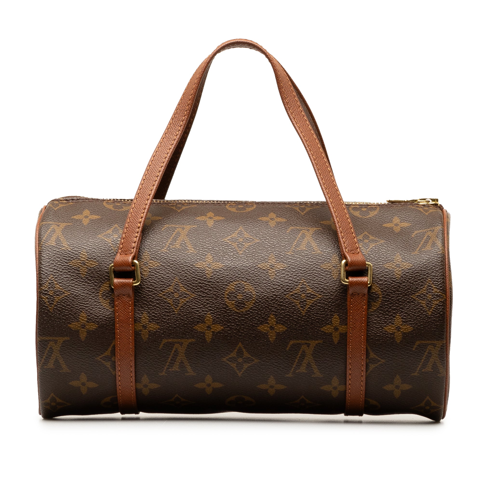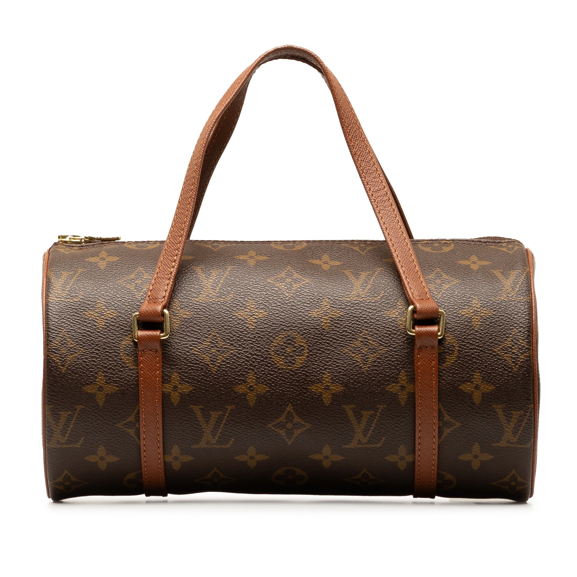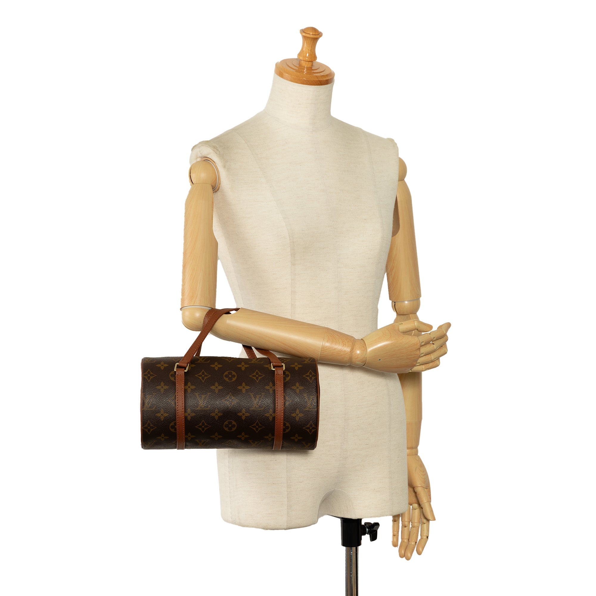 Product Details: Brown LV Monogram Papillon 26 Handbag. The Papillon 26 features a monogram canvas body, leather handles, and a top zip closure. 5.1″ L x 10.2″ W x 5.1″ D, 6.7″ drop. Serial number NO1909.