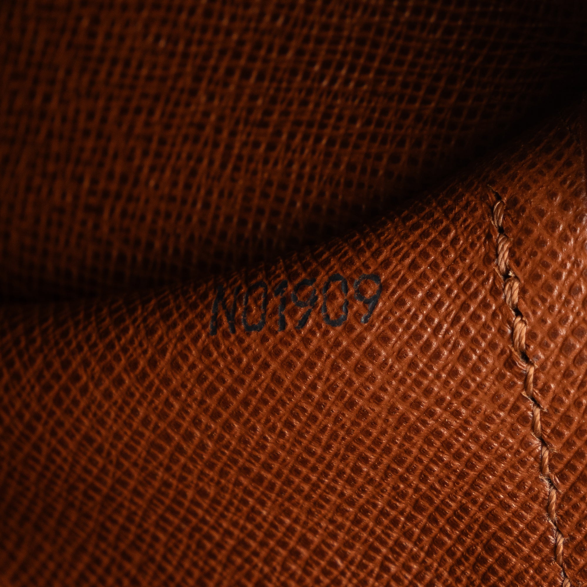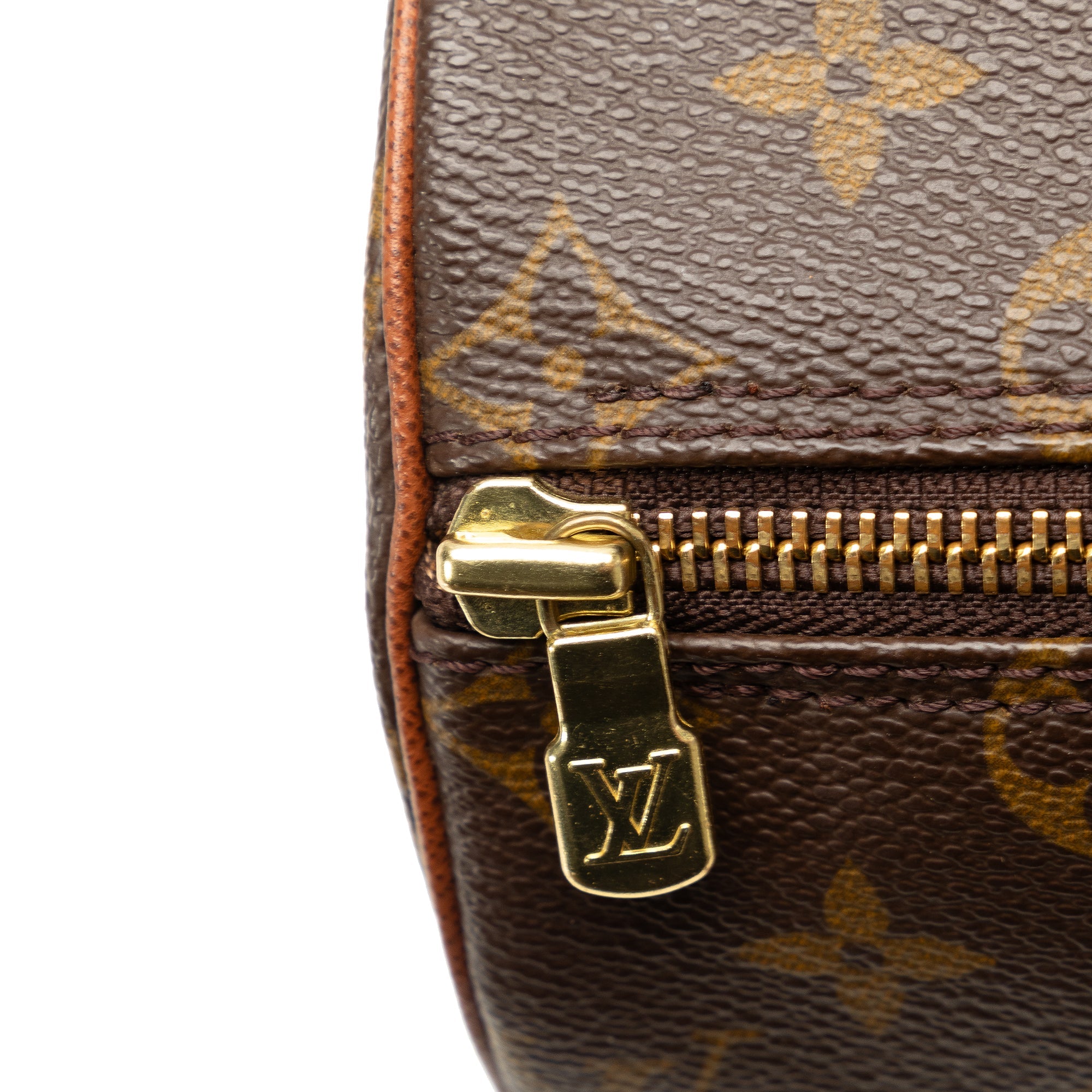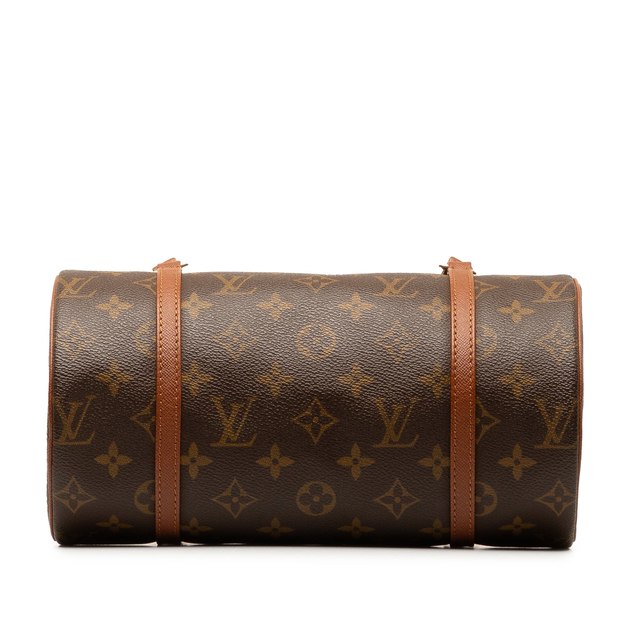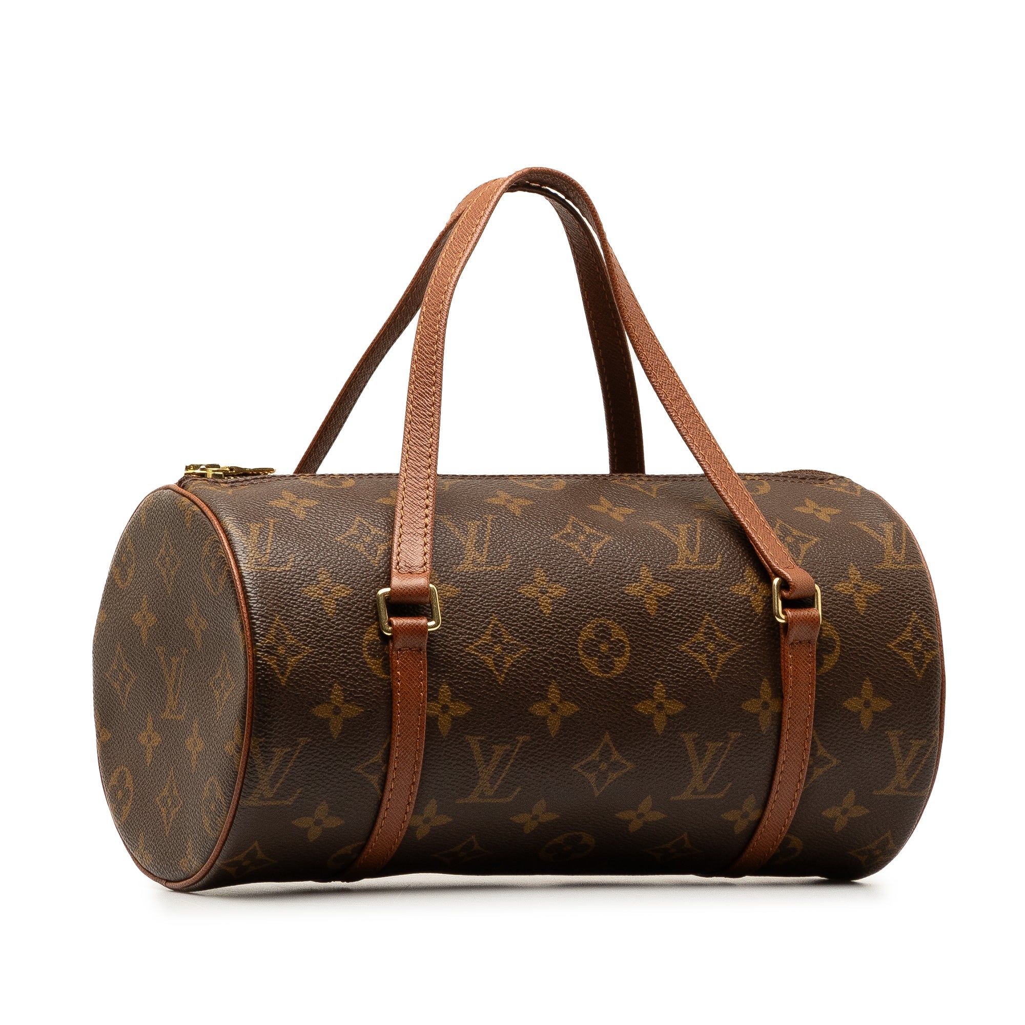 Product Details: Brown LV Monogram Papillon 26 Handbag. The Papillon 26 features a monogram canvas body, leather handles, and a top zip closure. 5.1″ L x 10.2″ W x 5.1″ D, 6.7″ drop. Serial number NO1909.