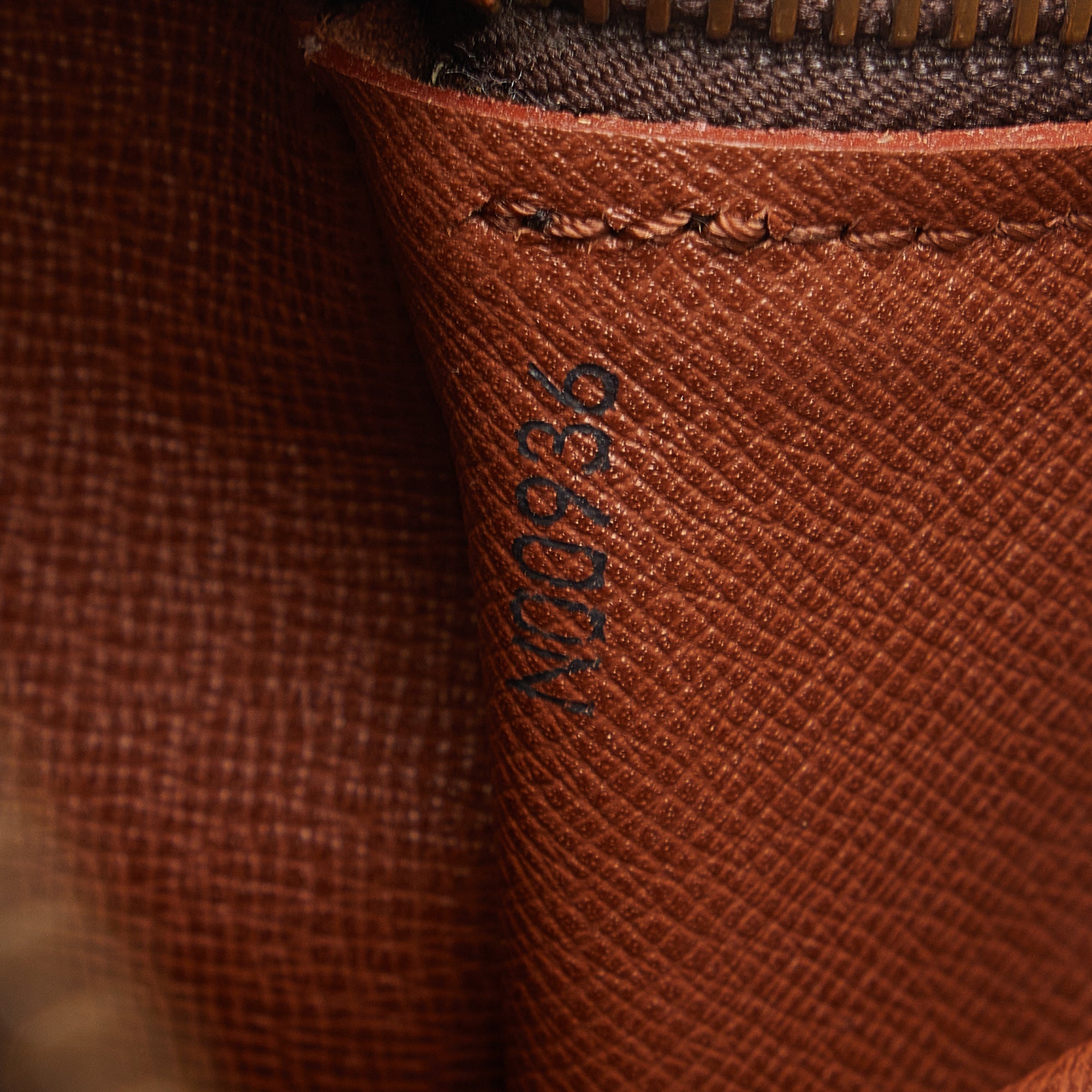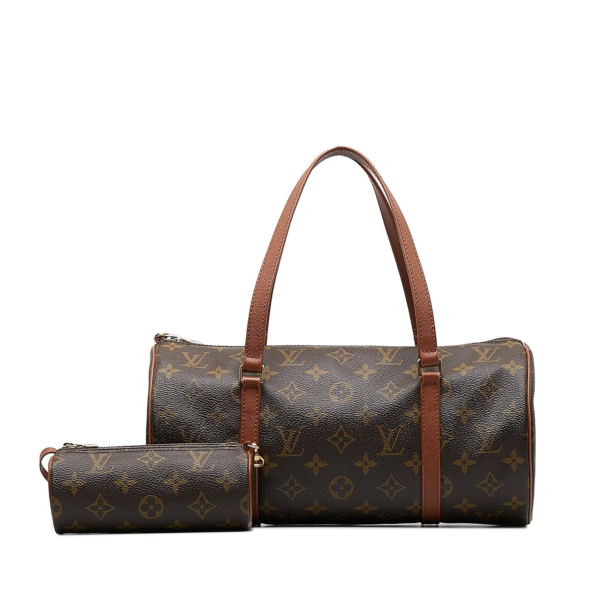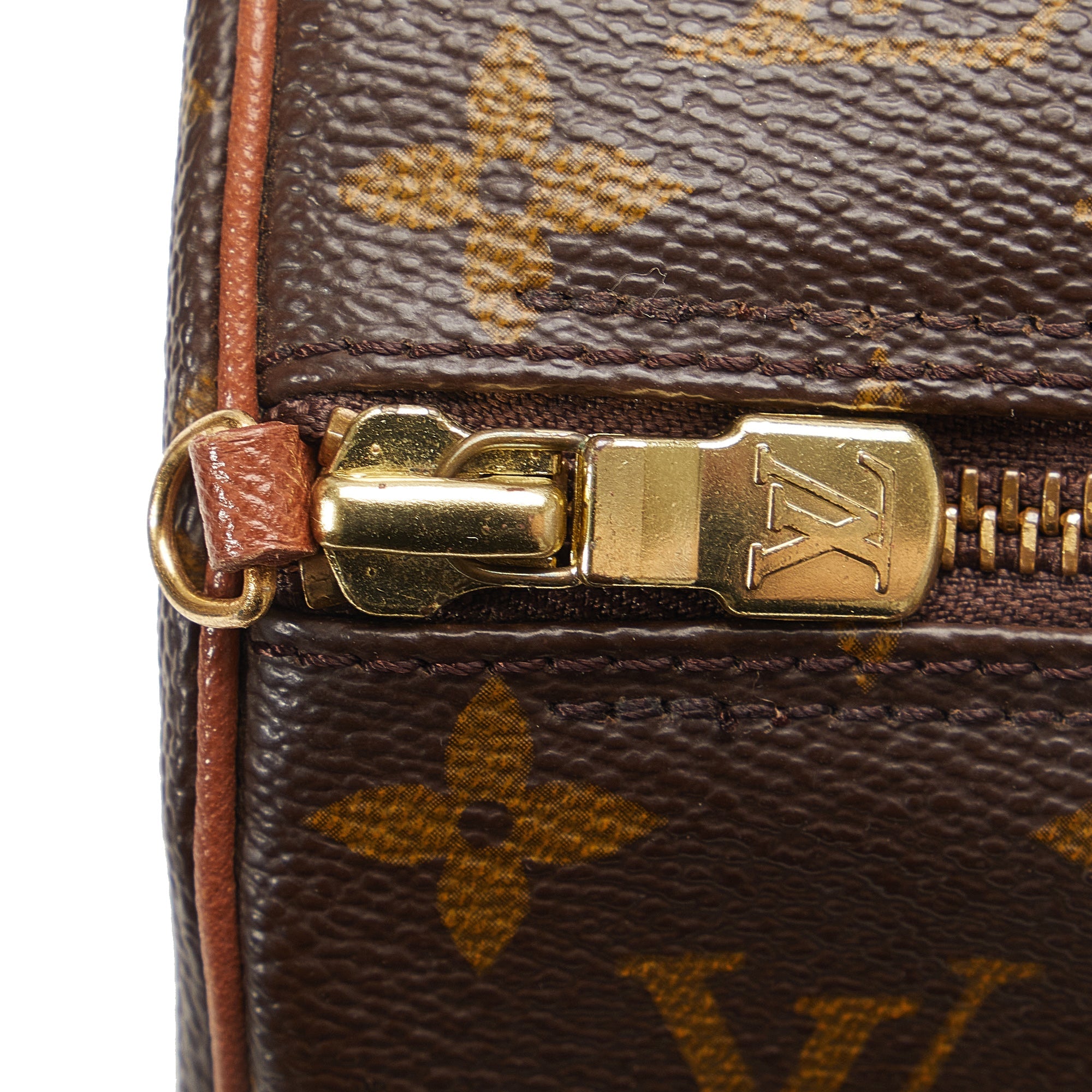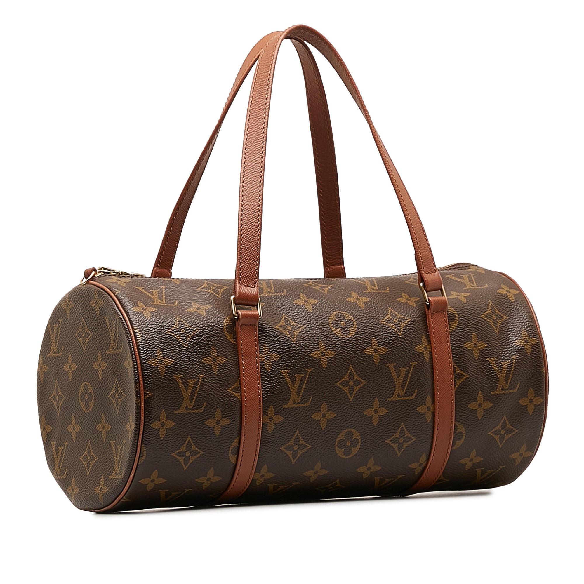 Product Details: Brown LV Monogram Papillon 30 Handbag. The Papillon 30 features a monogram canvas body with vachetta leather trim, flat vachetta leather handles, and a top zip closure. 5.9″ L x 11.8″ W x 5.9″ D, 6.7″ drop. Serial number N00936.