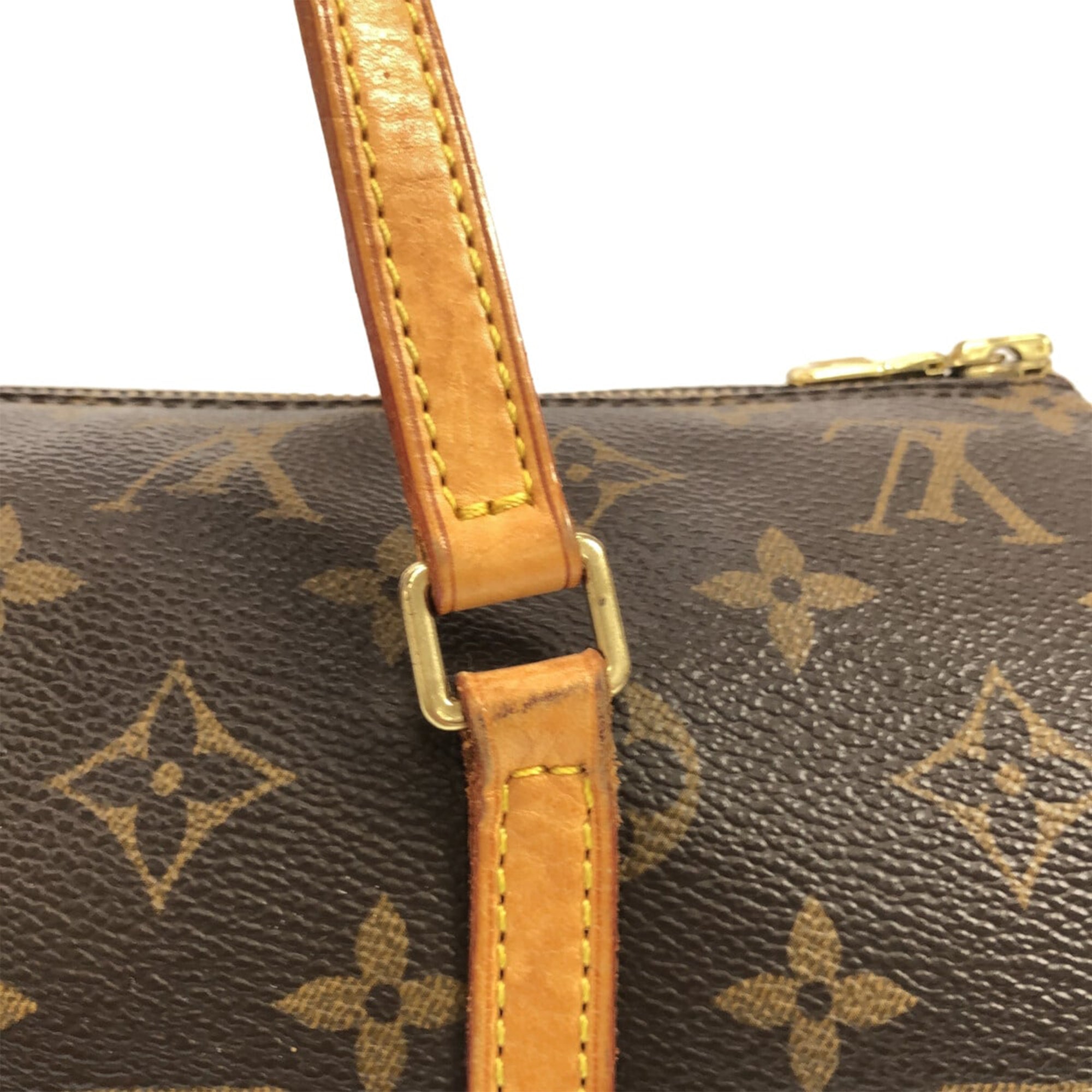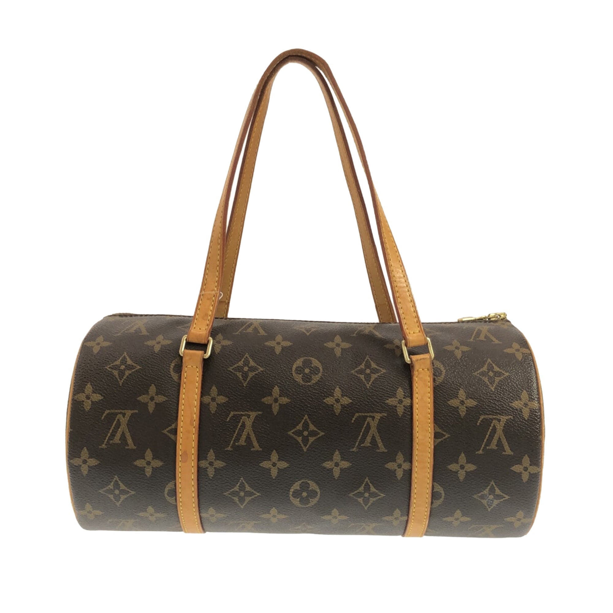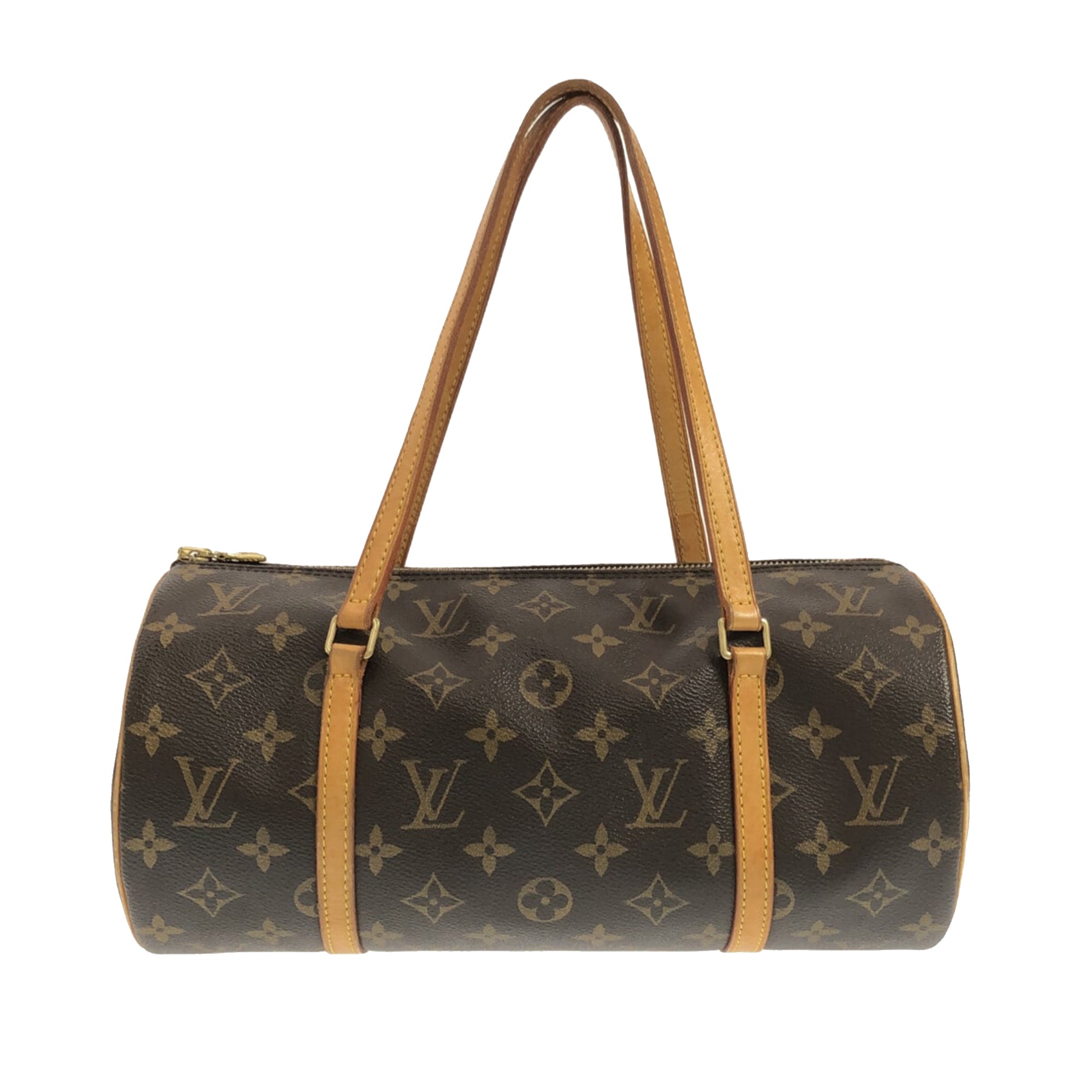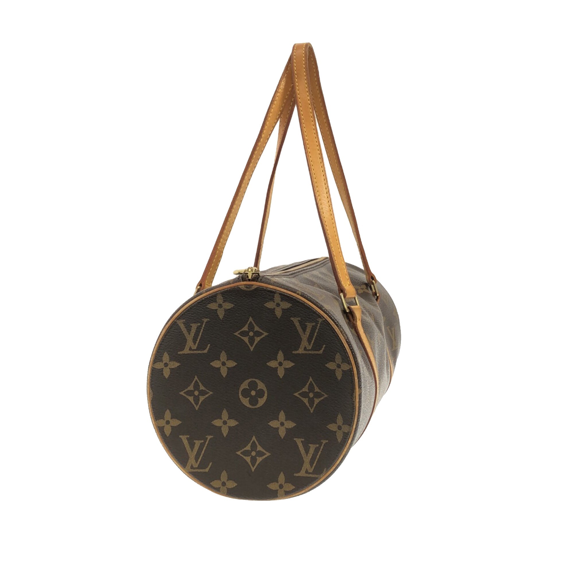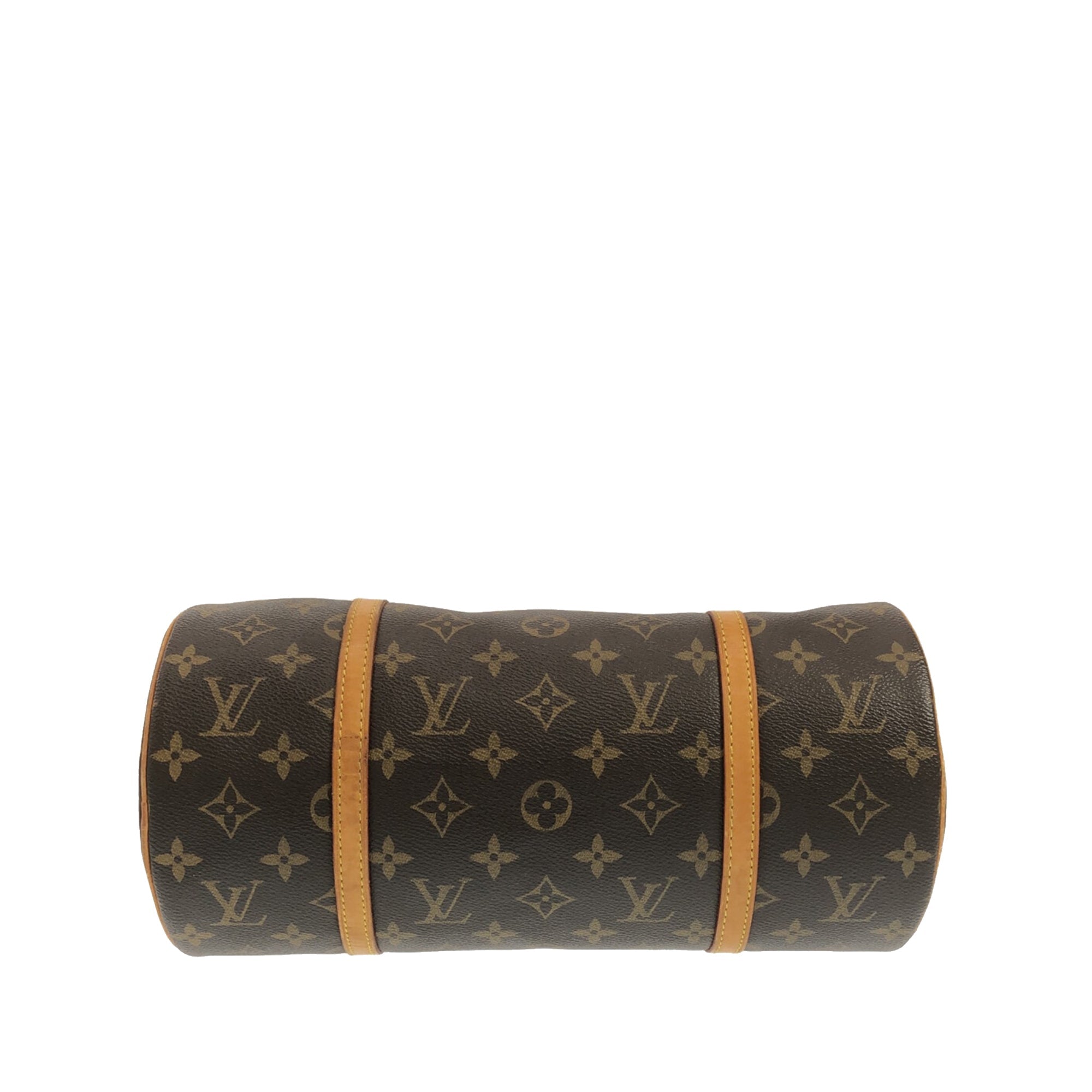 Product Details: Brown LV Monogram Papillon 30 Handbag. The Papillon 30 features a monogram canvas body with vachetta leather trim, vachetta leather handles, and a top zip closure. 5.9″ L x 11.8″ W x 5.9″ D, 6.3″ drop. Serial number DU1026.