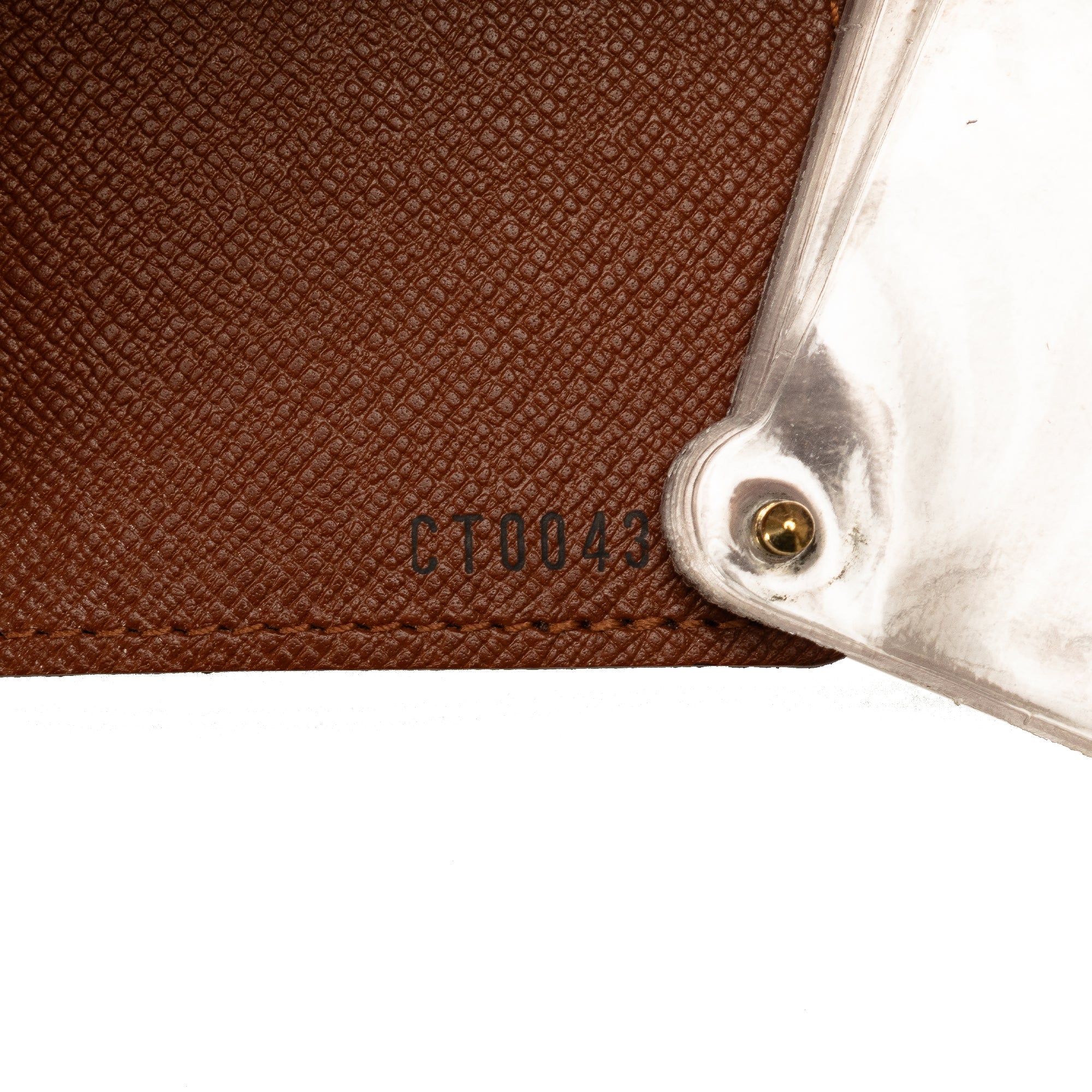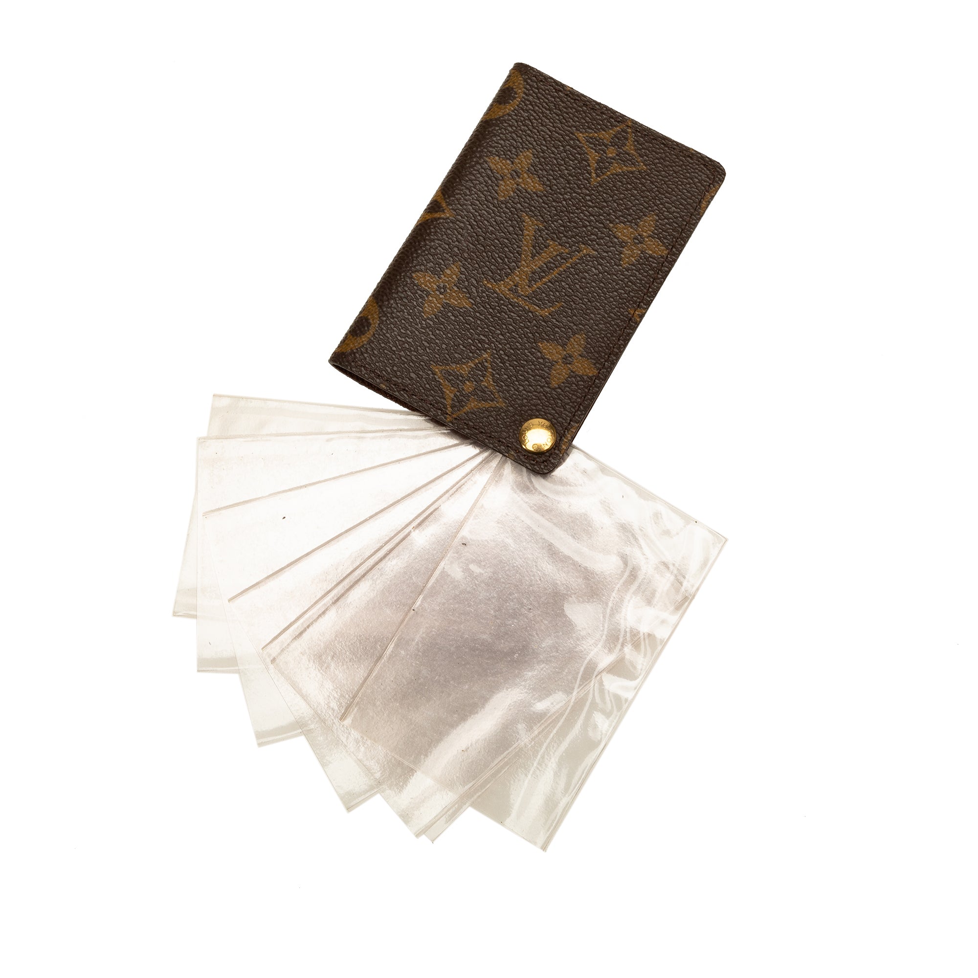 Product Details: Brown LV Monogram Porte-Cartes Credit Pression Card Holder. This card holder features a monogram canvas body and interior slip compartments. 4.1″ L x 2.8″ W x 0.4″ D. Serial number CT0043.