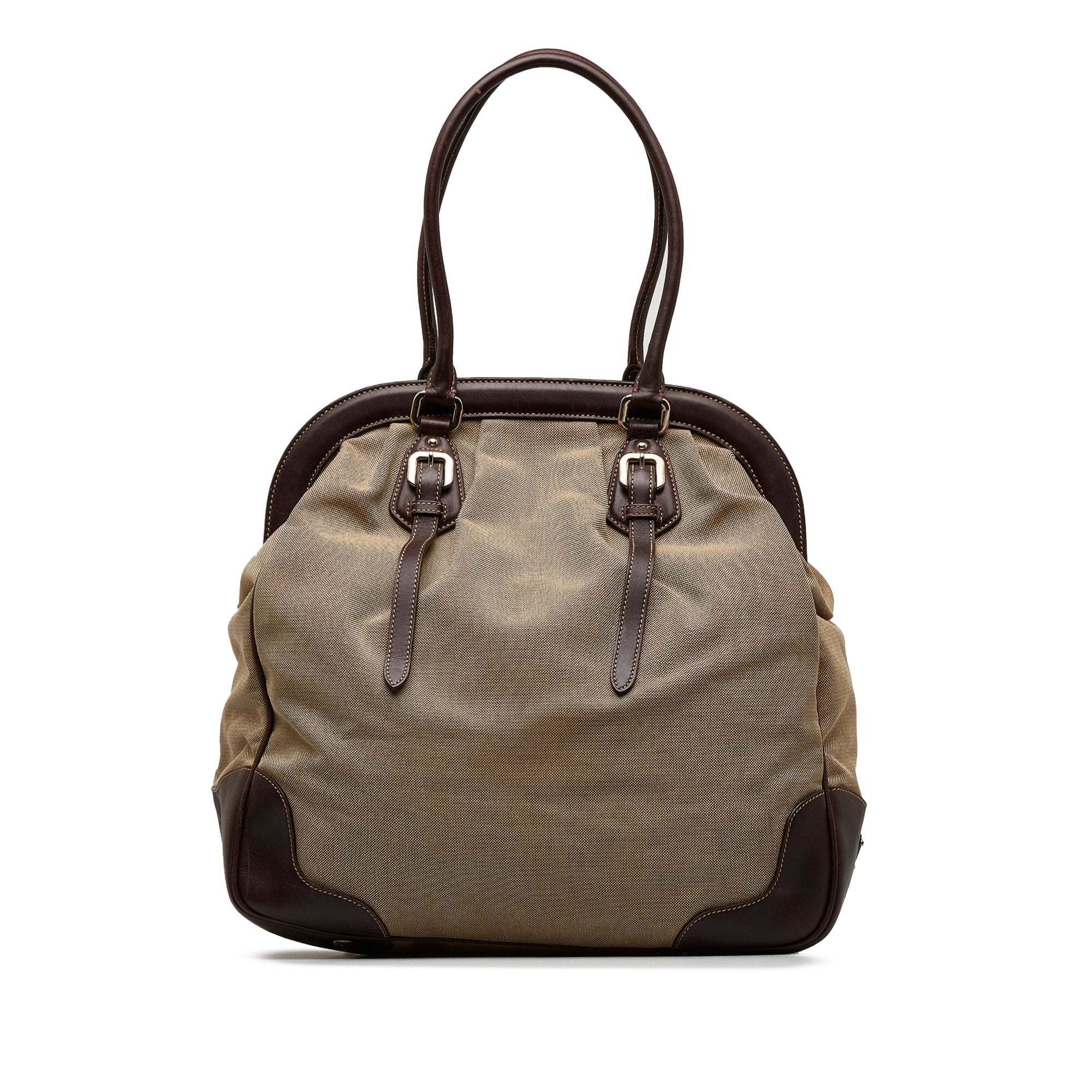 Please note this is a item that may display signs of wear consistent with the condition listed above and shown in photos. Designer Revival this is an Brown Prada Canapa Logo Frame Tote Bag or . Learn more about our ation process.